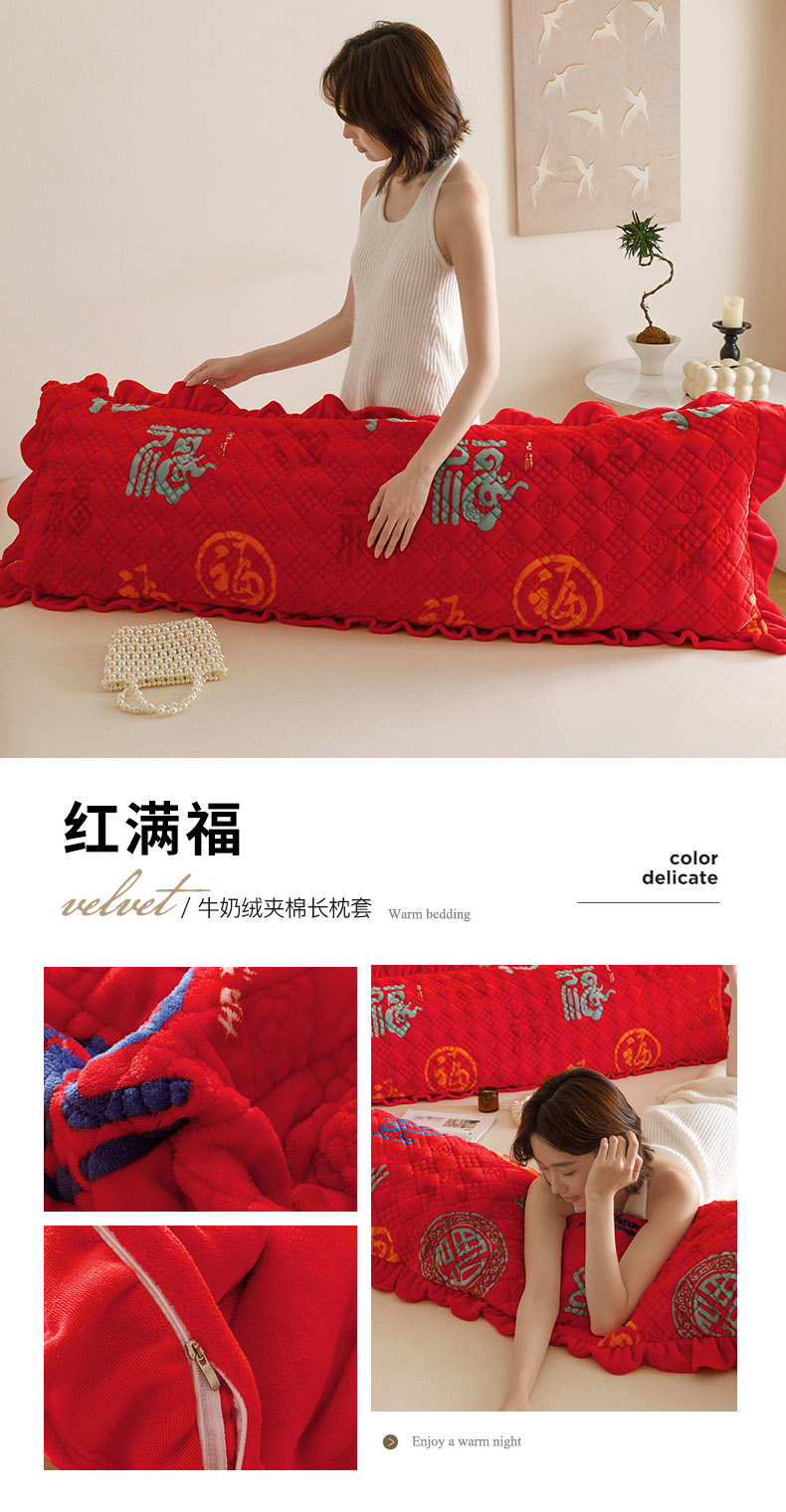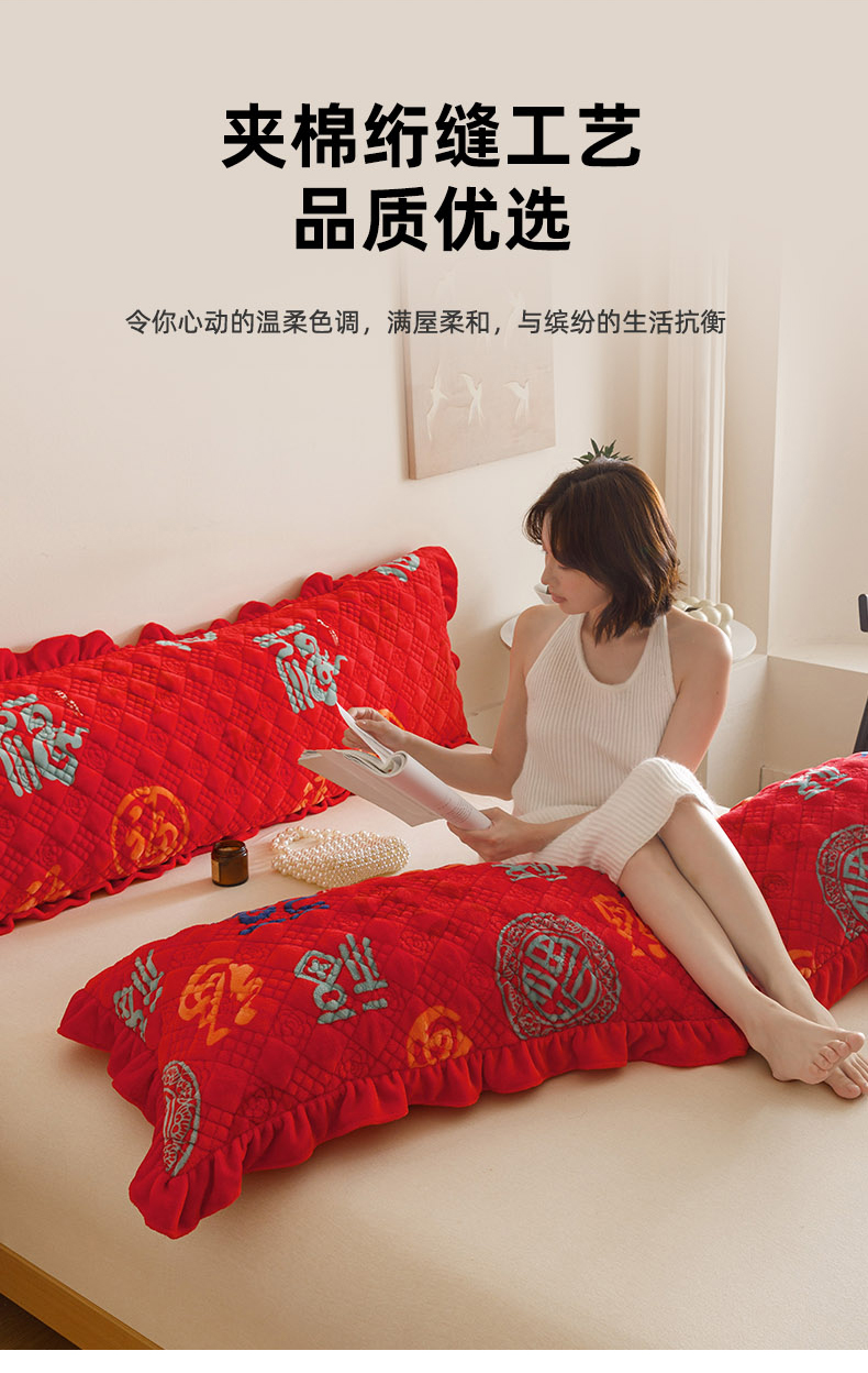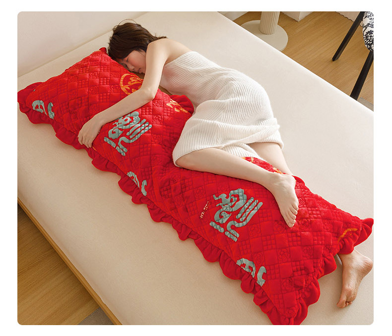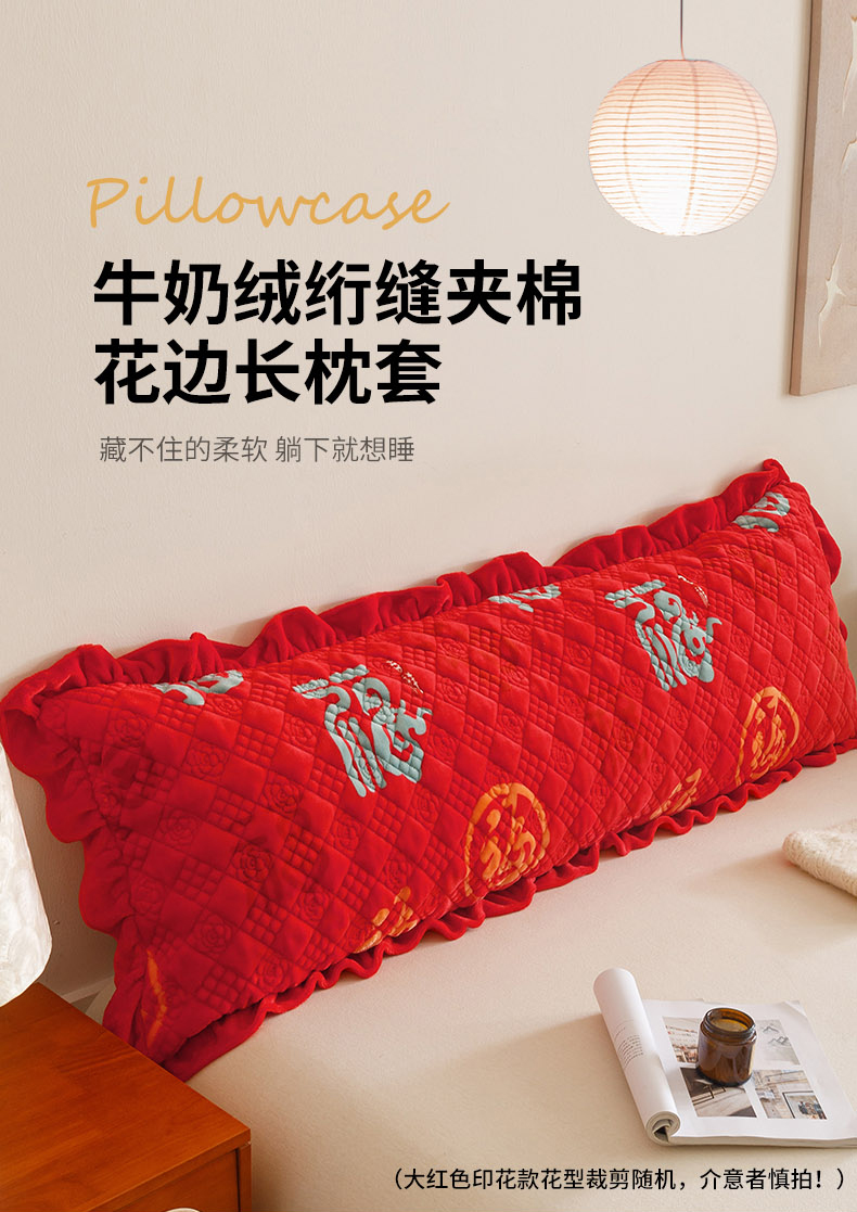 商品名称:爱港家纺 2025新款牛奶绒夹棉衍缝长枕套 红满福