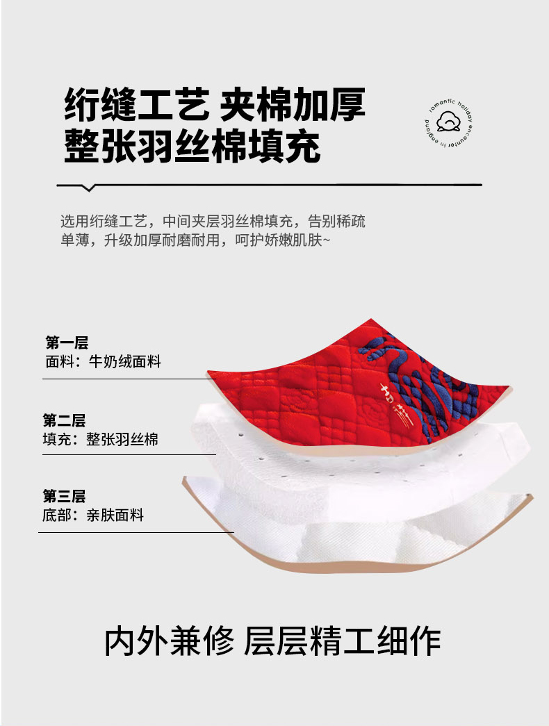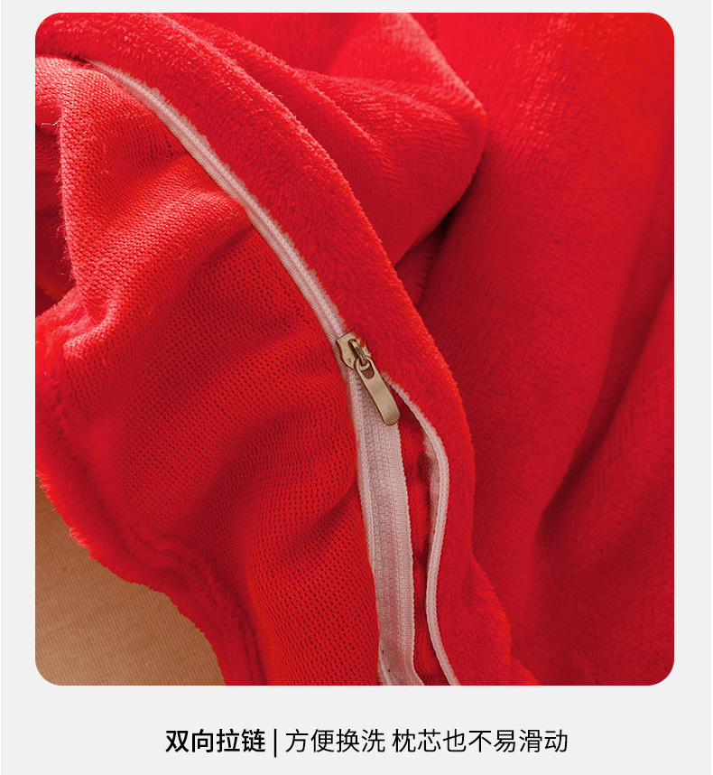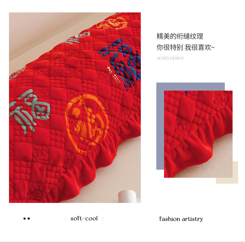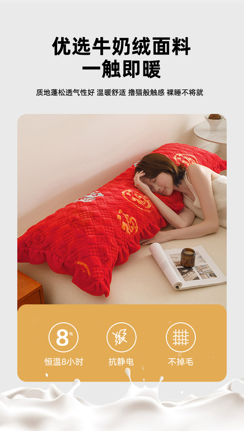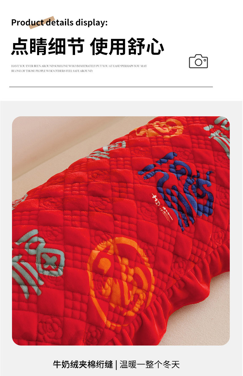 商品名称:爱港家纺 2025新款牛奶绒夹棉衍缝长枕套 红满福