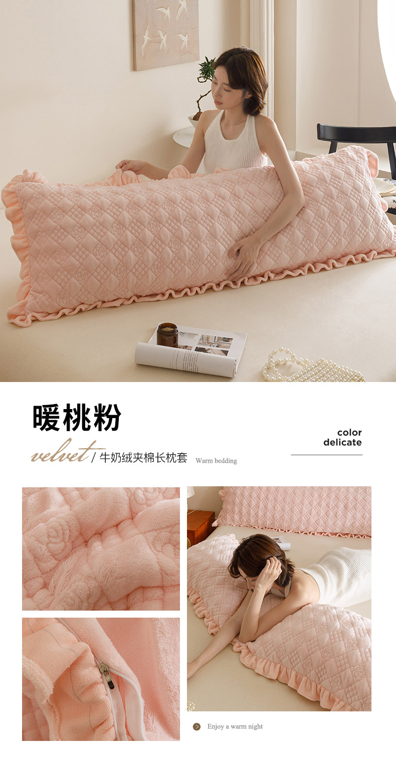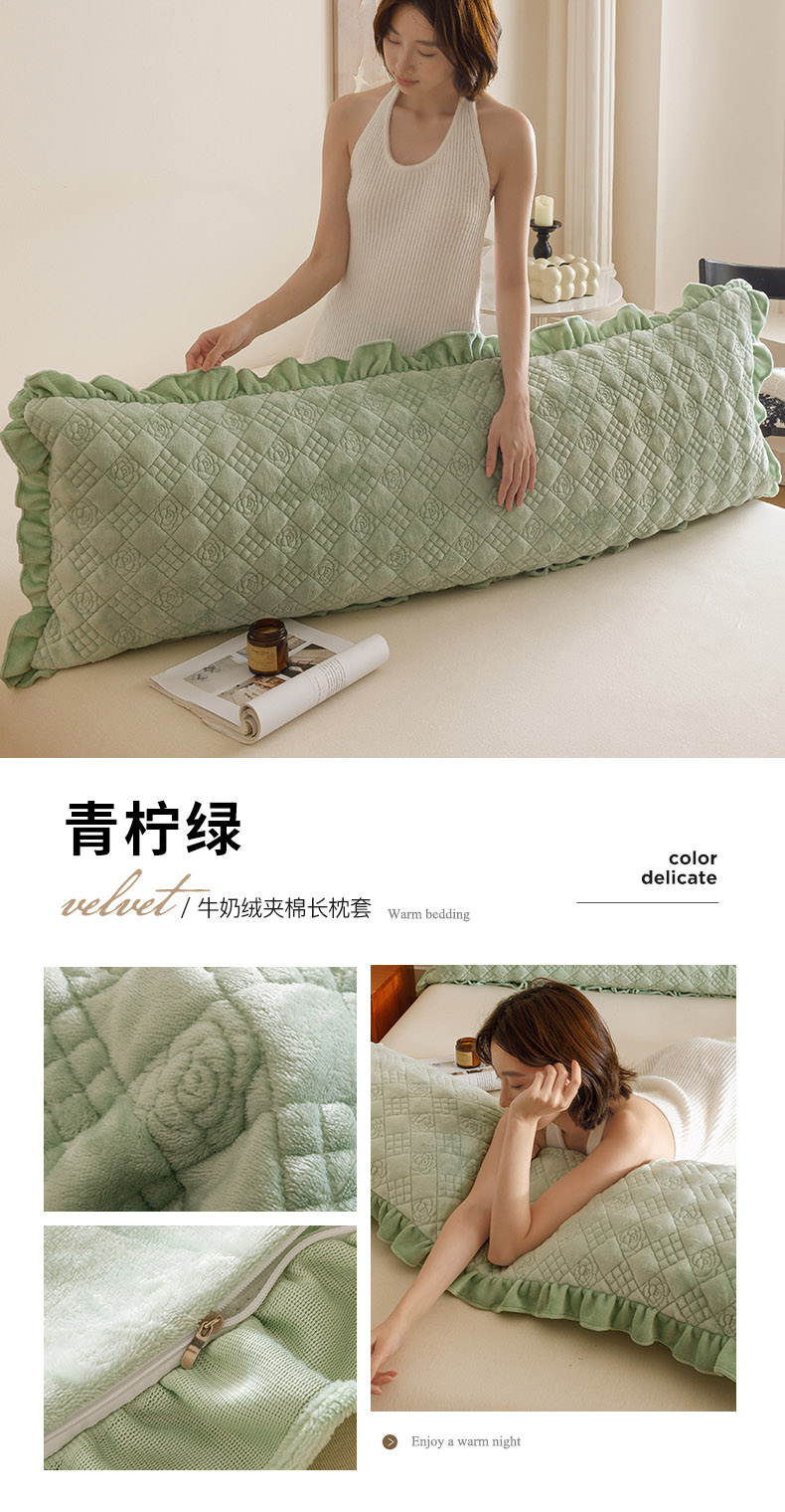 (总)爱港家纺 2025新款牛奶绒夹棉衍缝长枕套,红满福,暖桃粉,青柠绿,青雾蓝,云际灰