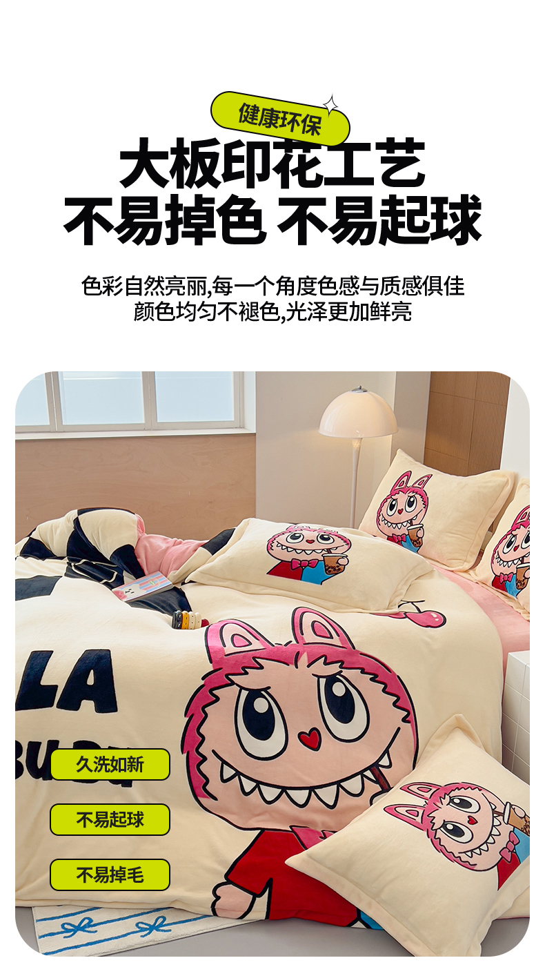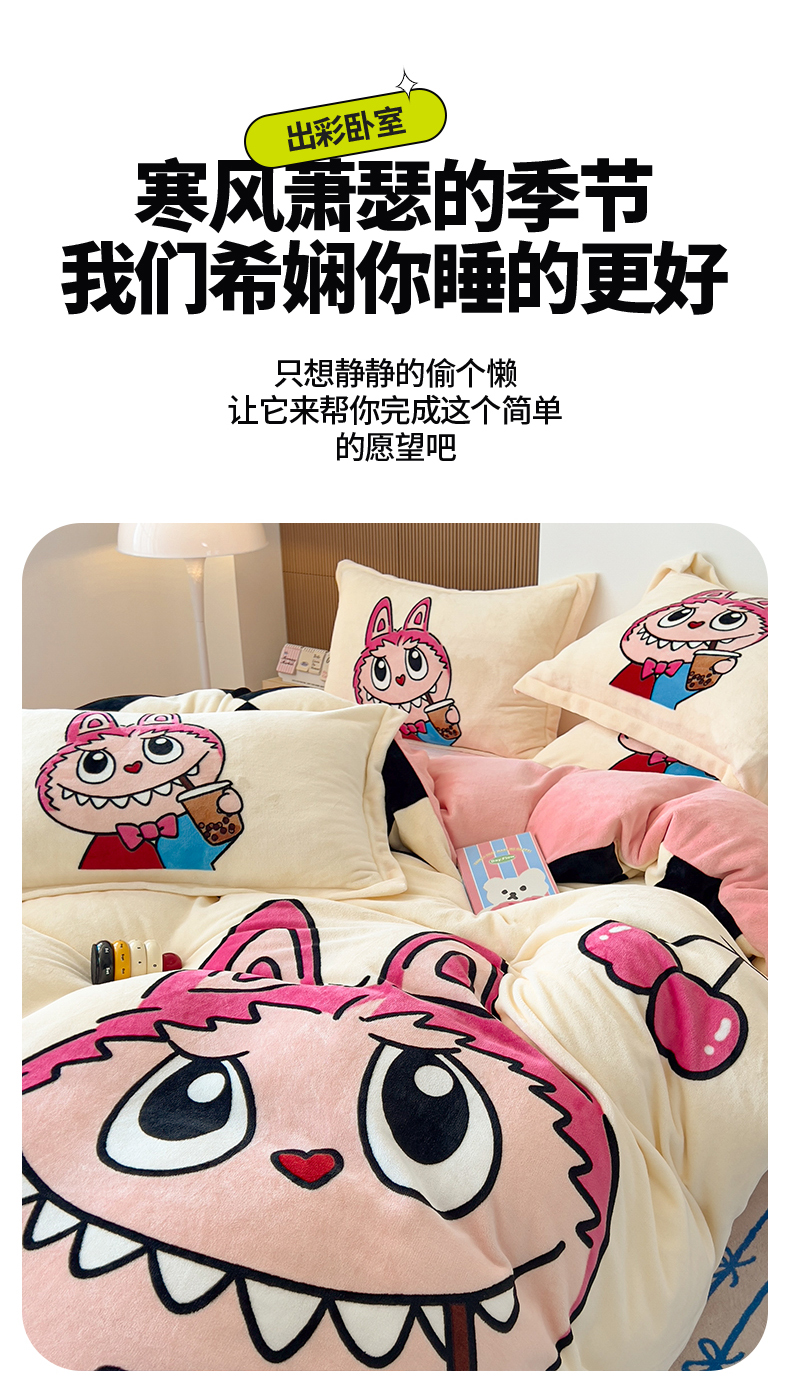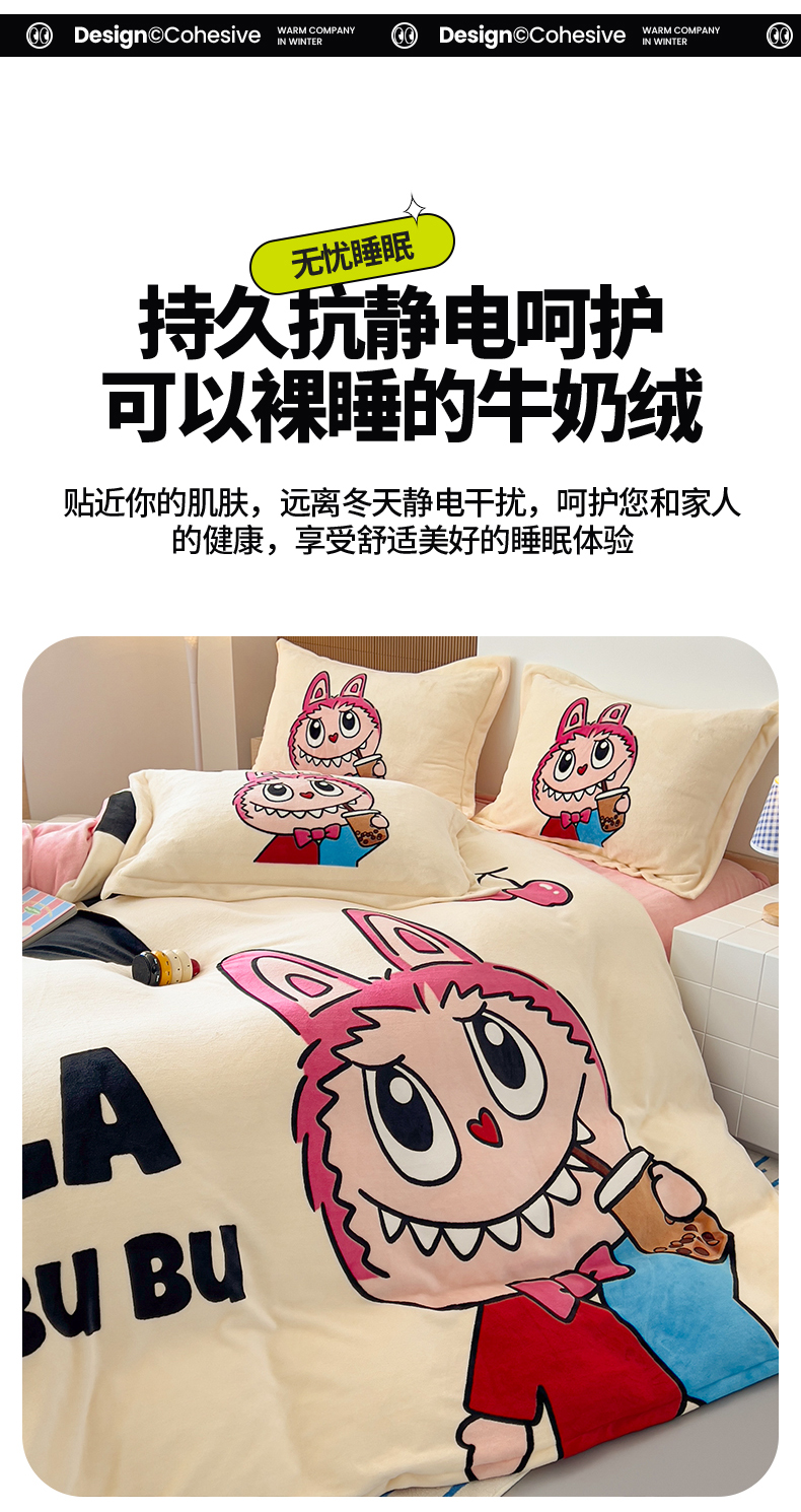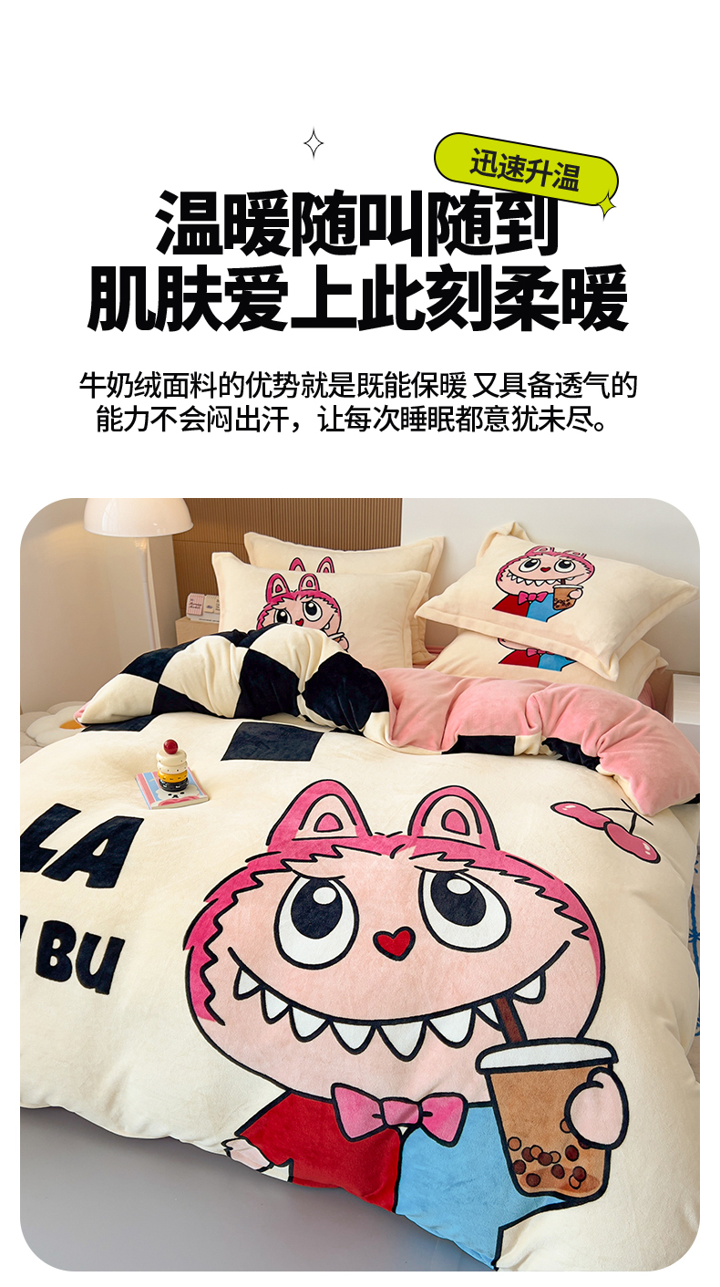 福来临家纺 2025牛奶绒大版卡通四件套 奶茶小可