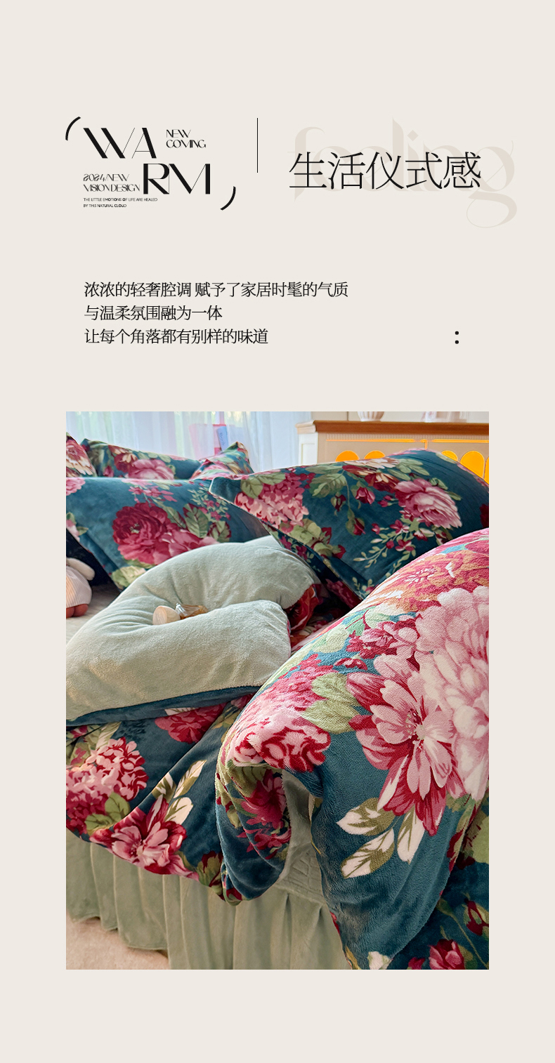 当前位置: 91家纺网 > 商品网购 > 床品套件 > 四件套 > 牛奶绒四件套 > 梵克保罗 2025秋冬新款印花牛奶绒床盖炕垫炕盖四件套-云裳 云裳-牡丹倾城蓝
