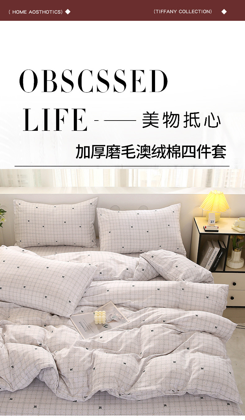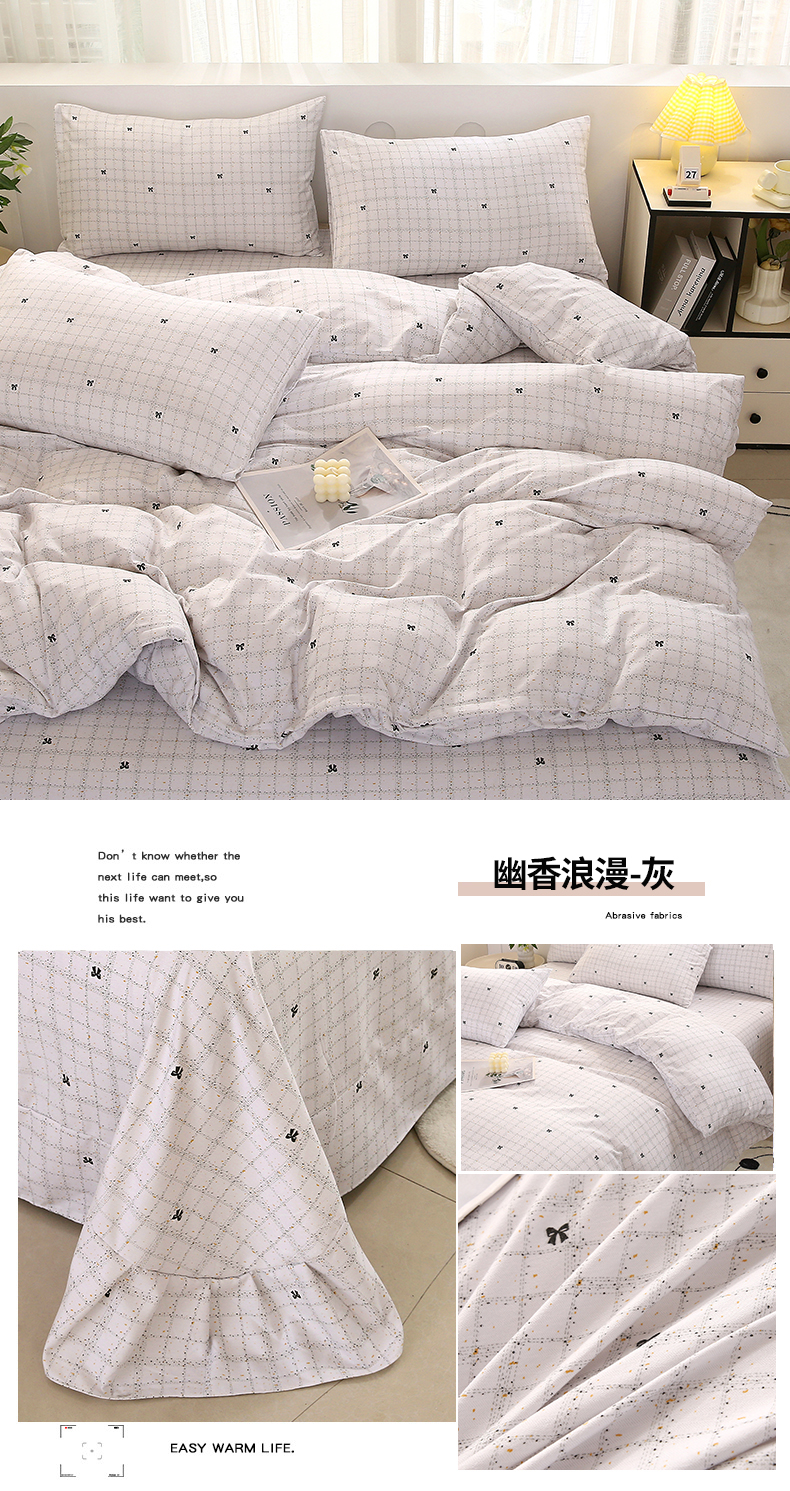 当前位置: 91家纺网 > 商品网购 > 床品套件 > 四件套 > 其它四件套 > 织写 2025新款加厚磨毛澳绒棉四件套 幽香浪漫-灰