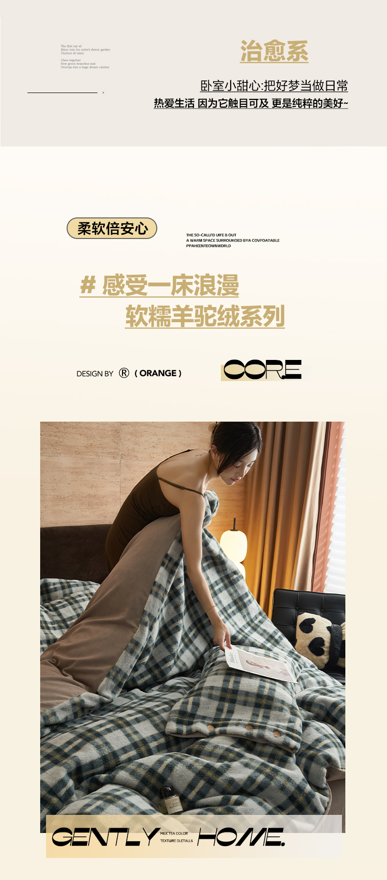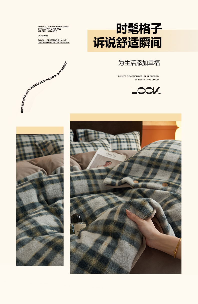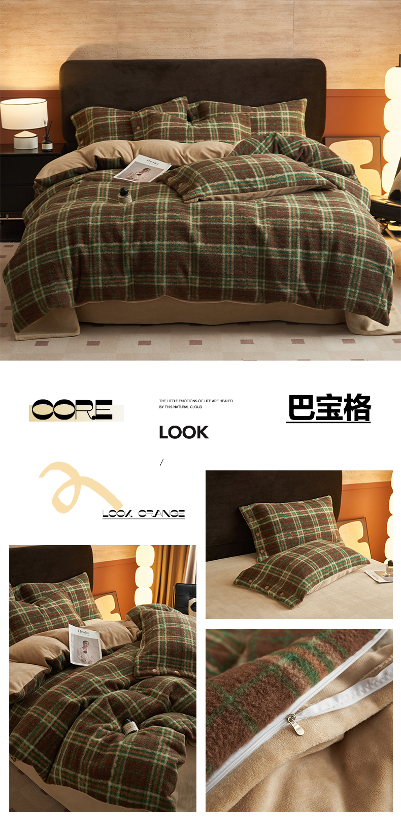 商品名称:早晨家纺 2025新款230g羊驼绒复古格牛奶绒四件套 巴宝格