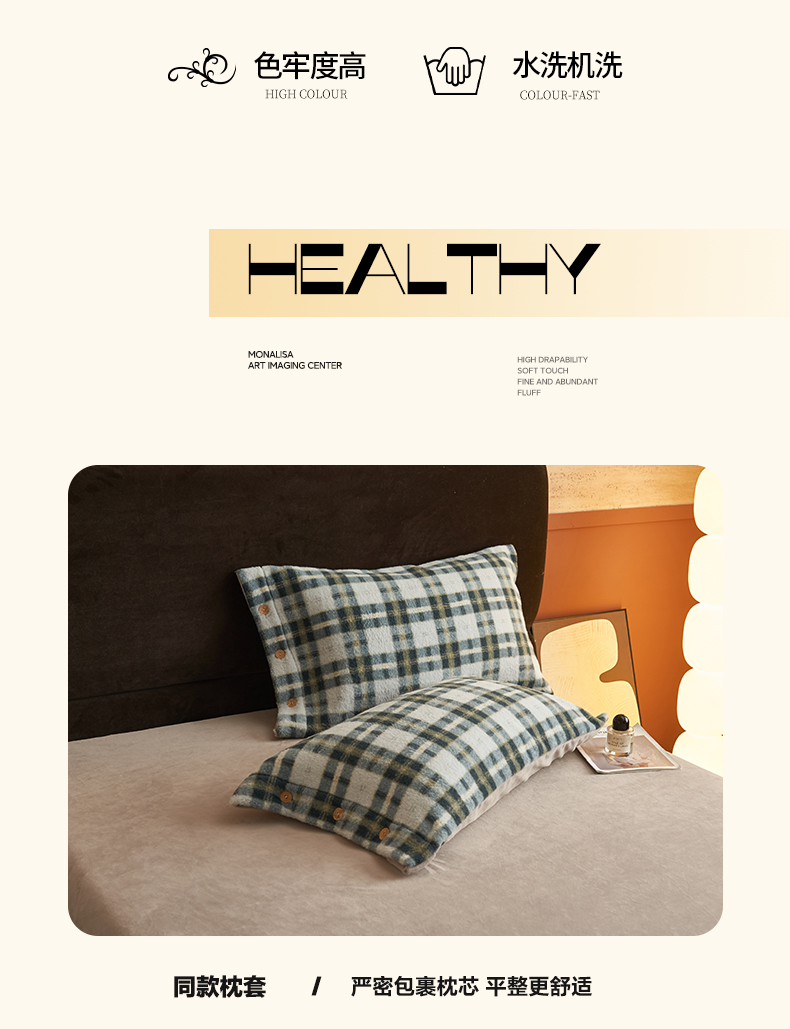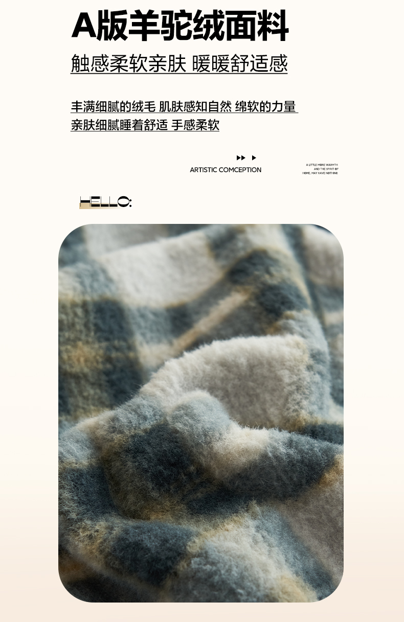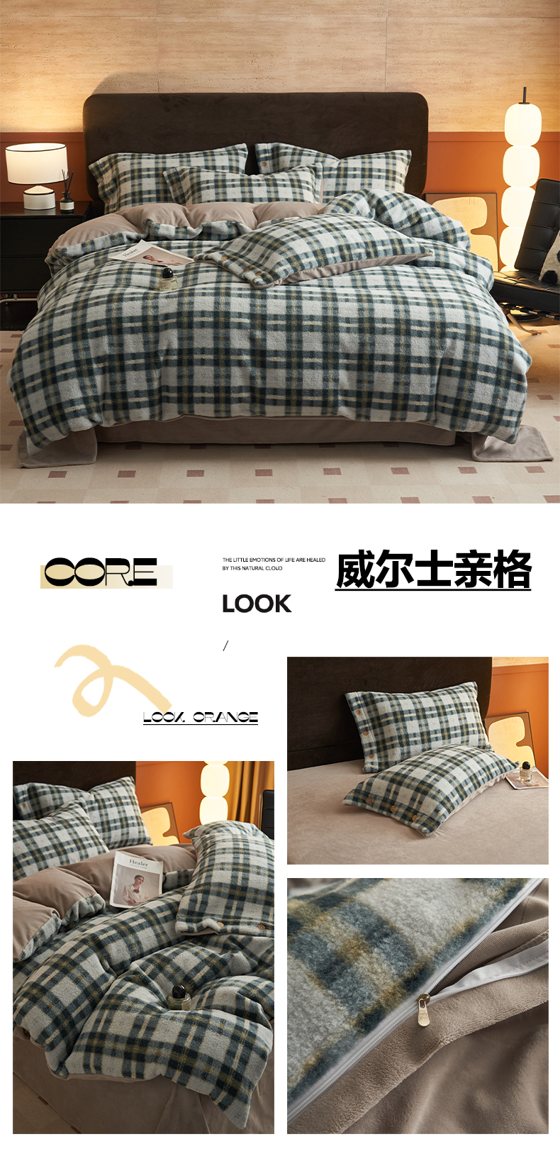 商品名称:早晨家纺 2025新款230g羊驼绒复古格牛奶绒四件套 巴宝格