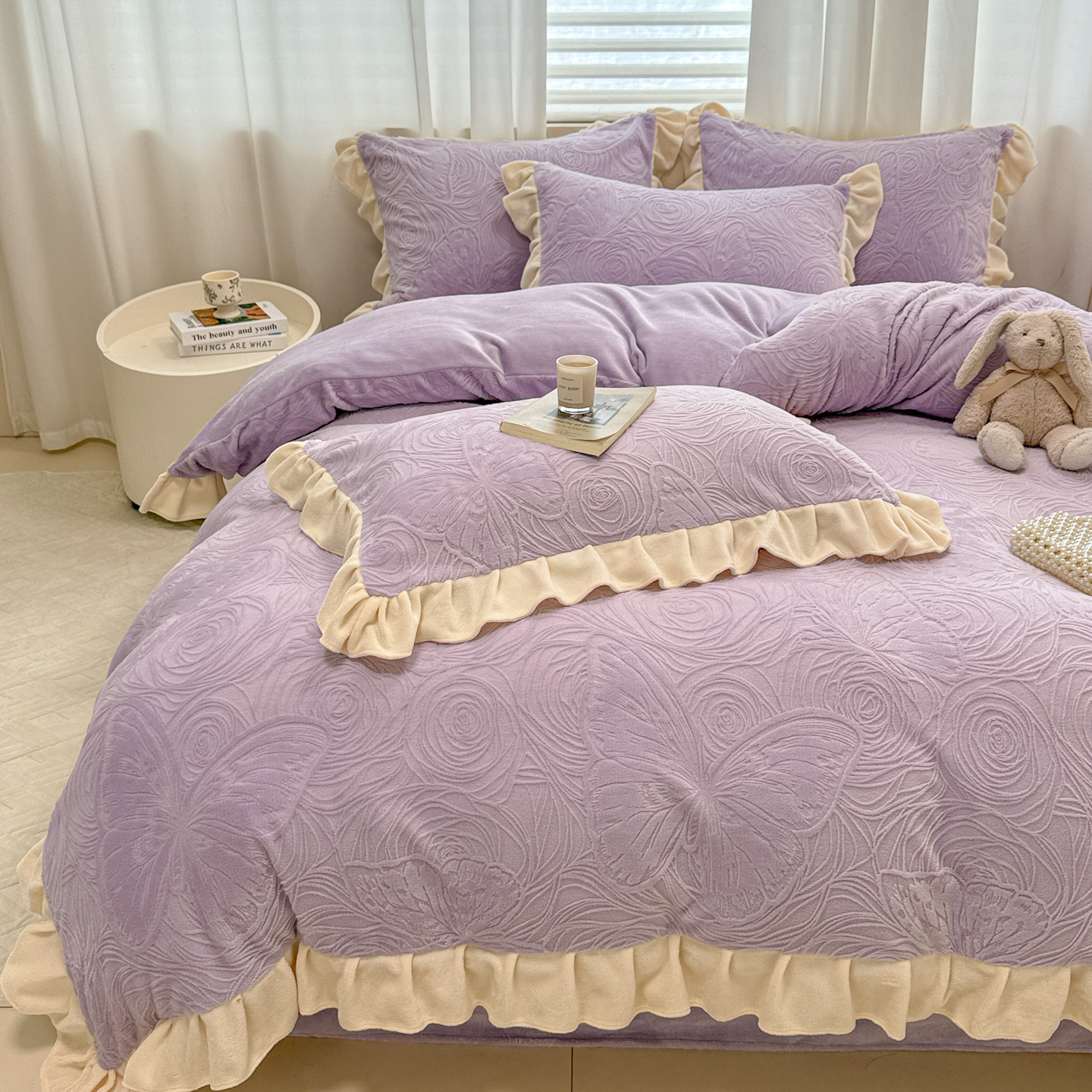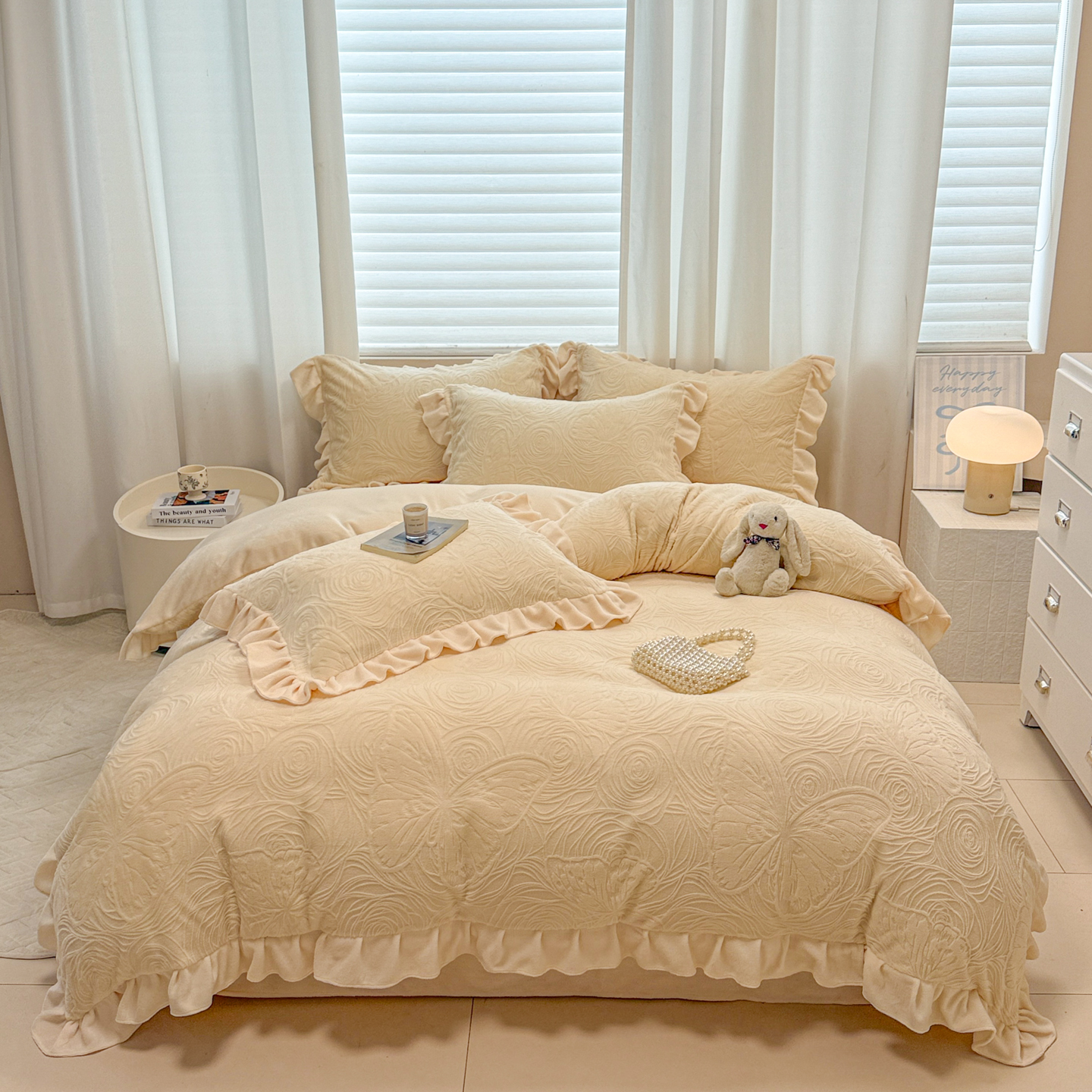 (总)懒猫家纺 2025新款亲肤舒适牛奶绒四件套-可可小姐系列,可可小姐-瓷白,可可小姐-水粉