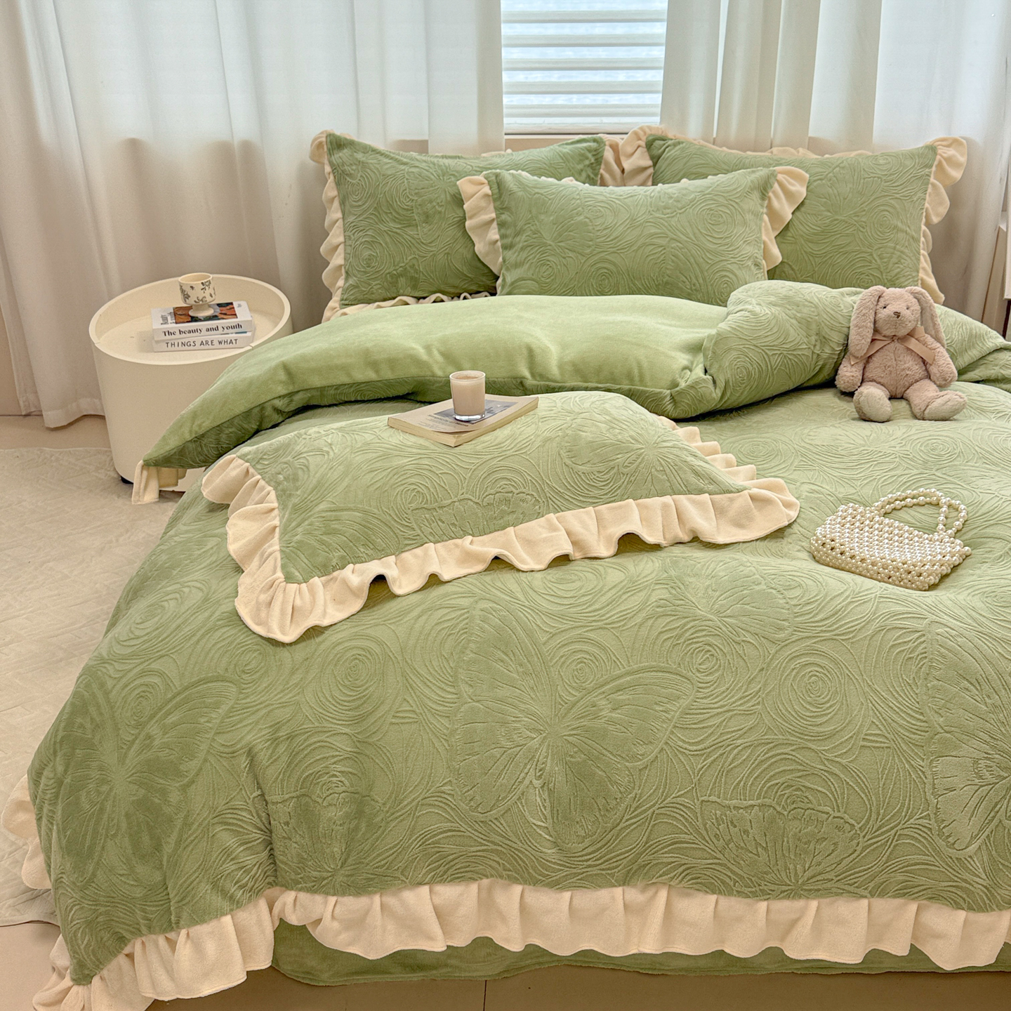 (总)懒猫家纺 2025新款宽包边雕花绒四件套,彼岸花开,波纹艺术,蝴蝶海浪,蝴蝶花海,花样年华,简雅印象,牧野繁花,欧风镜像-粉,欧风镜像-黄,千语千叶-黄,千语千叶-蓝,柔曼花踪,寻觅花影,竹叶清风