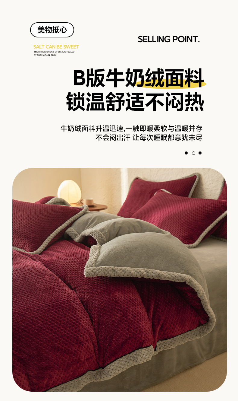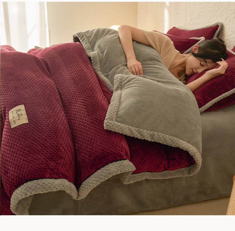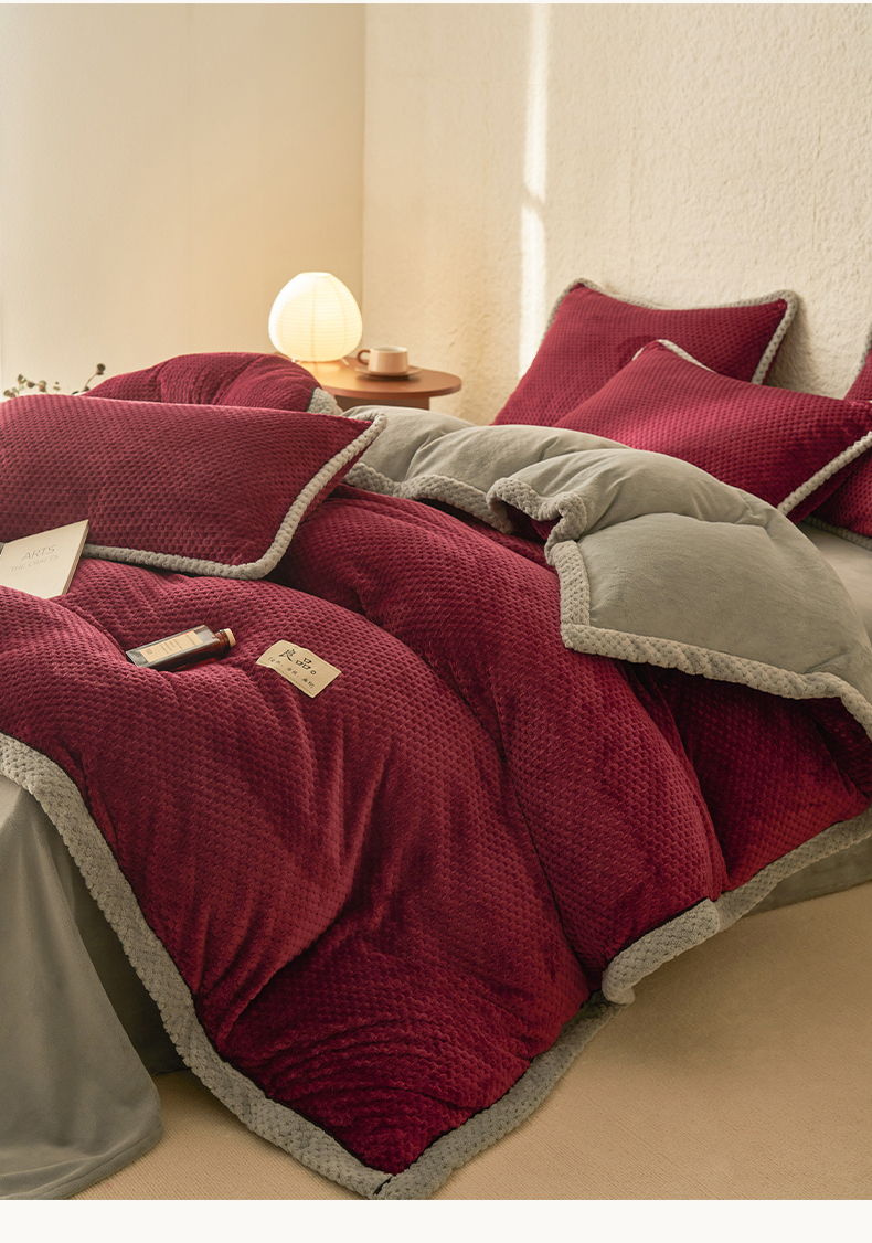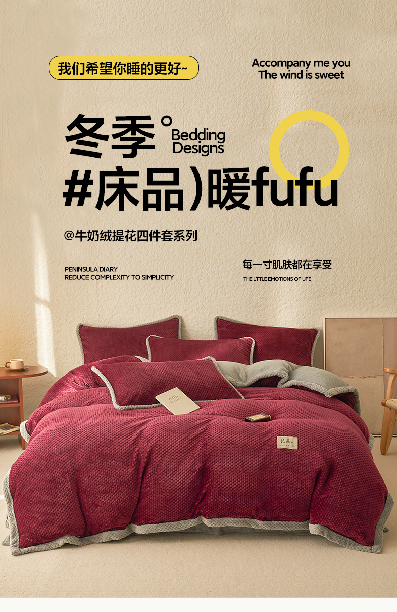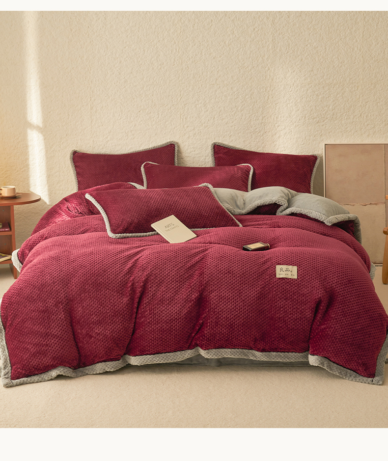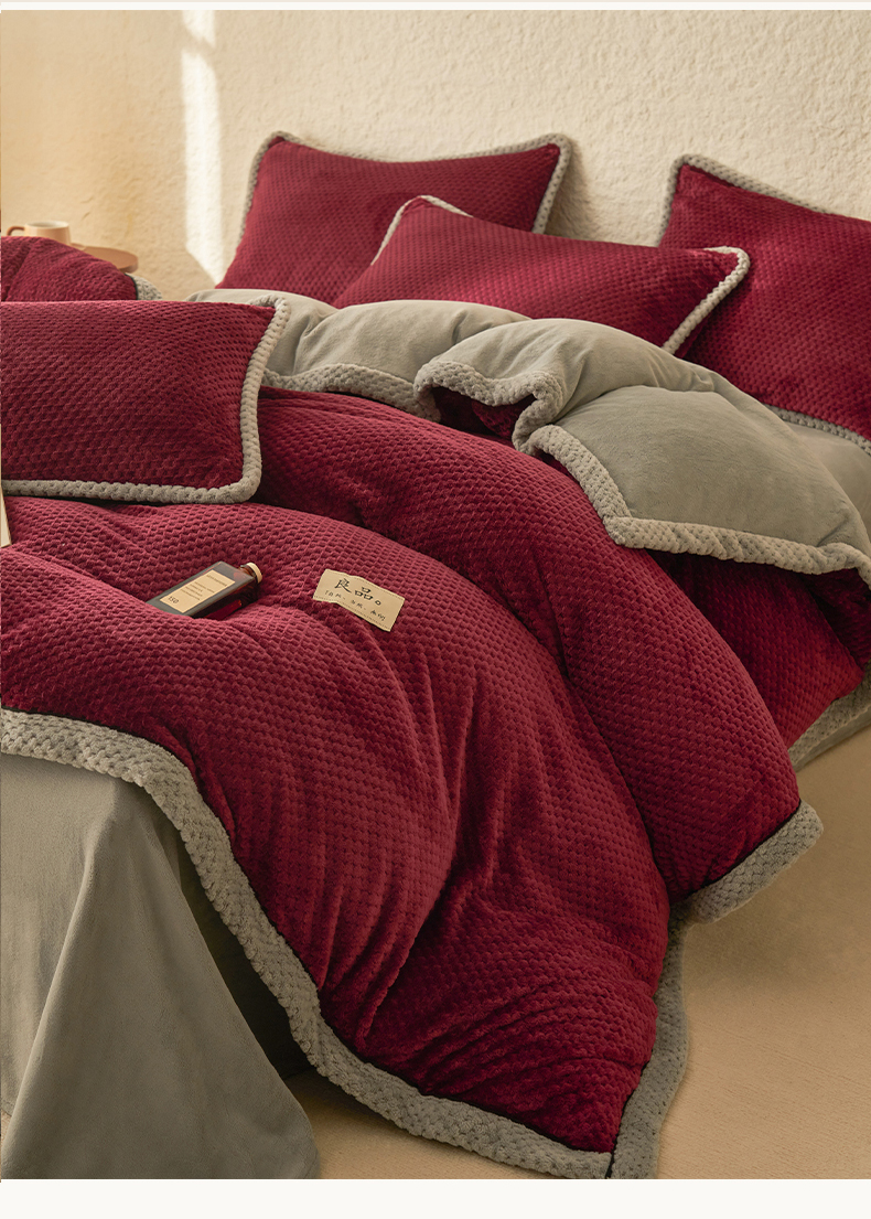 商品名称:早晨家纺 2025新款尚流款牛奶绒提花四件套 尚流-酒红