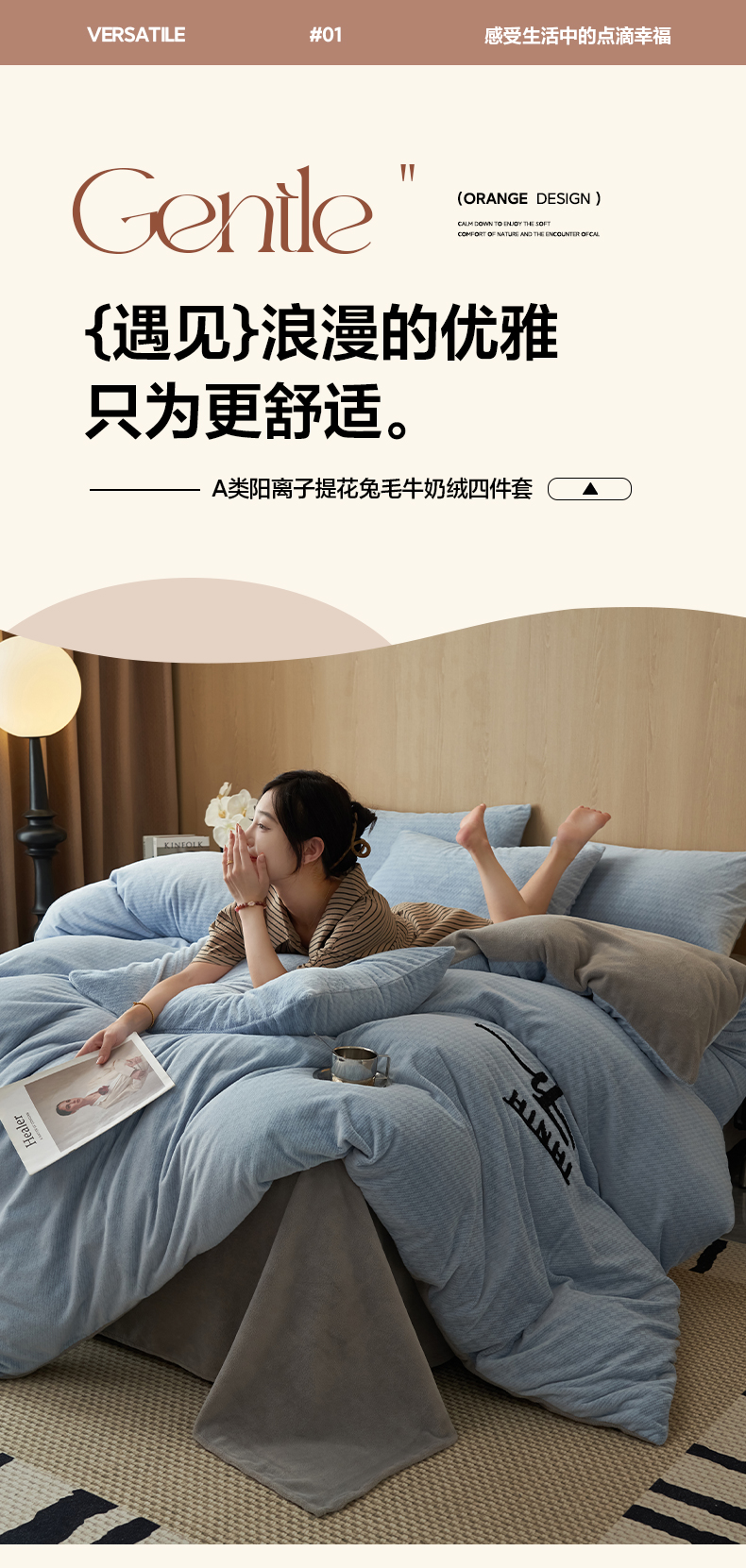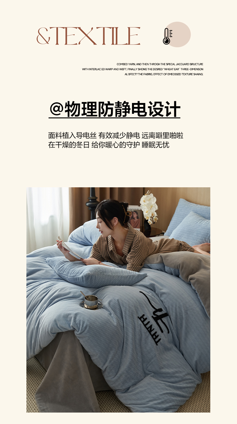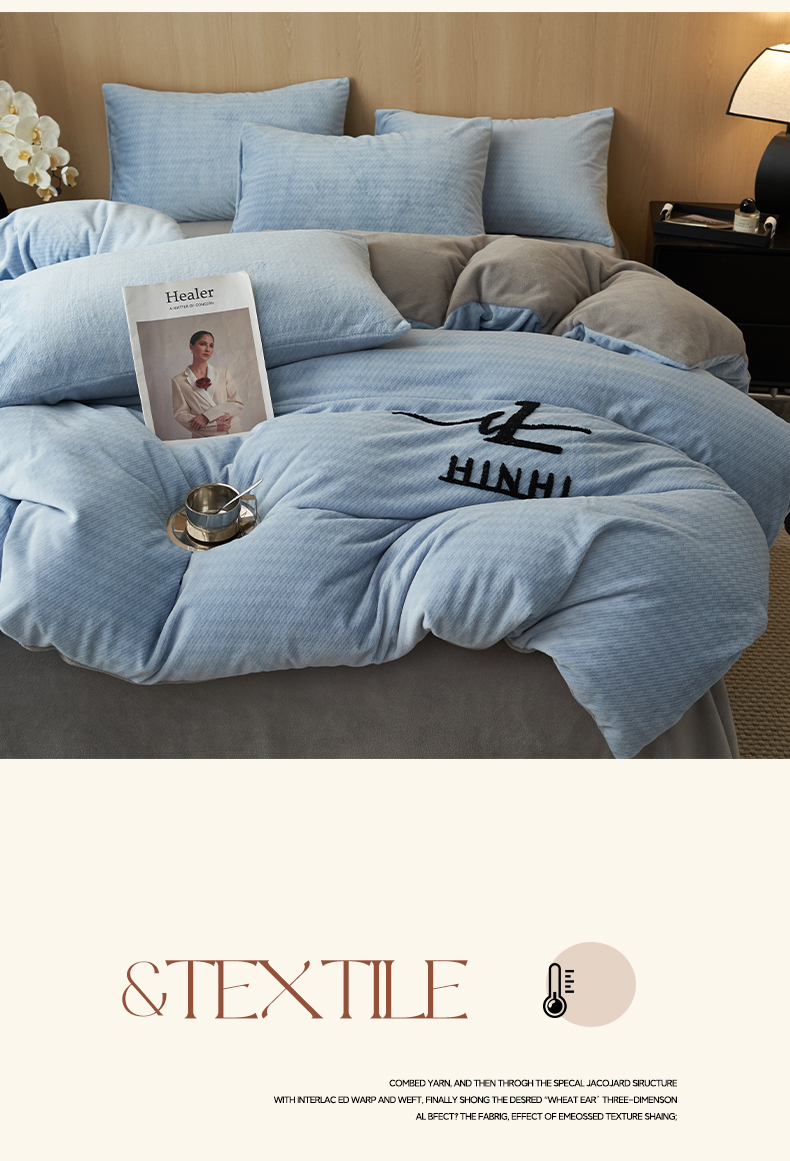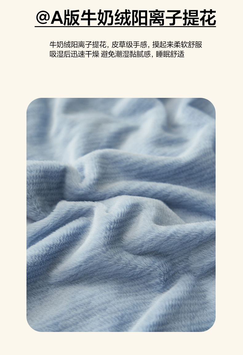 商品名称:早晨家纺 2025新款流星款阳离子提花兔毛牛奶绒四件套 流星-雾蓝