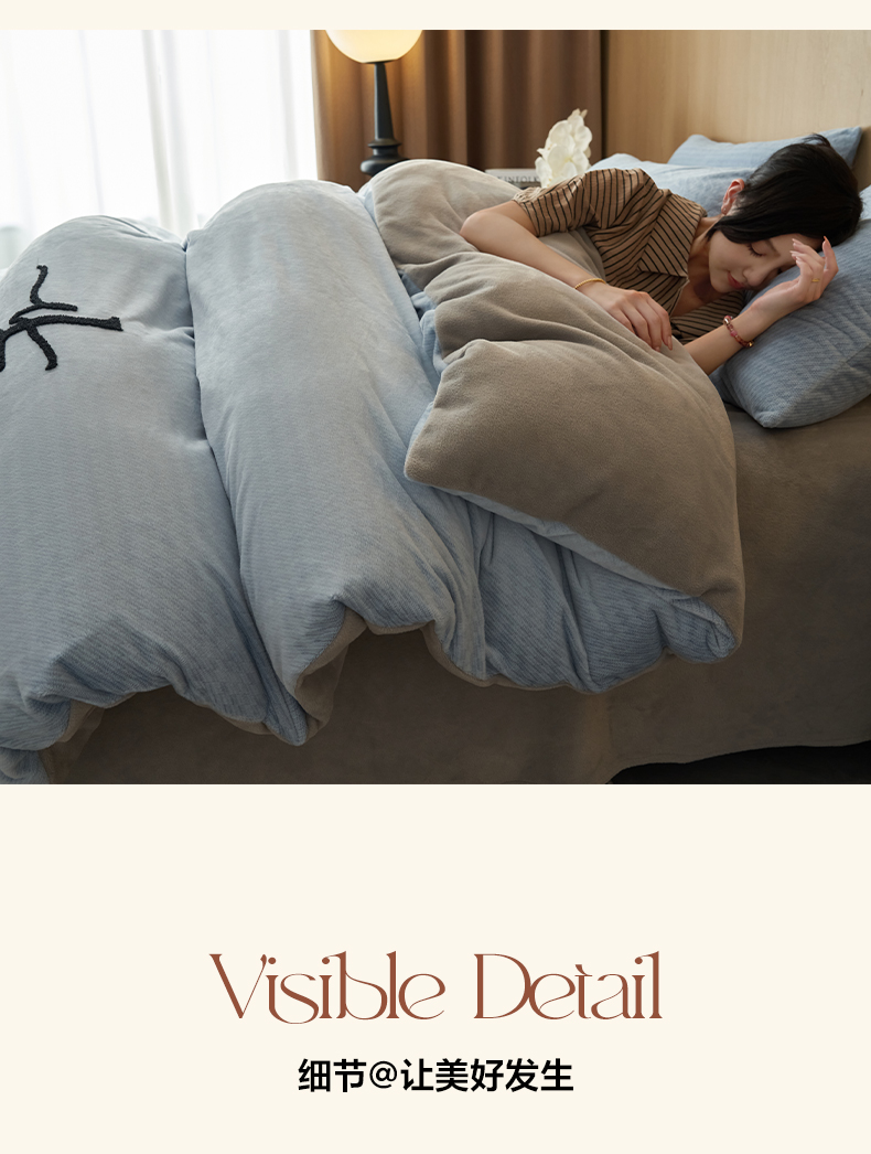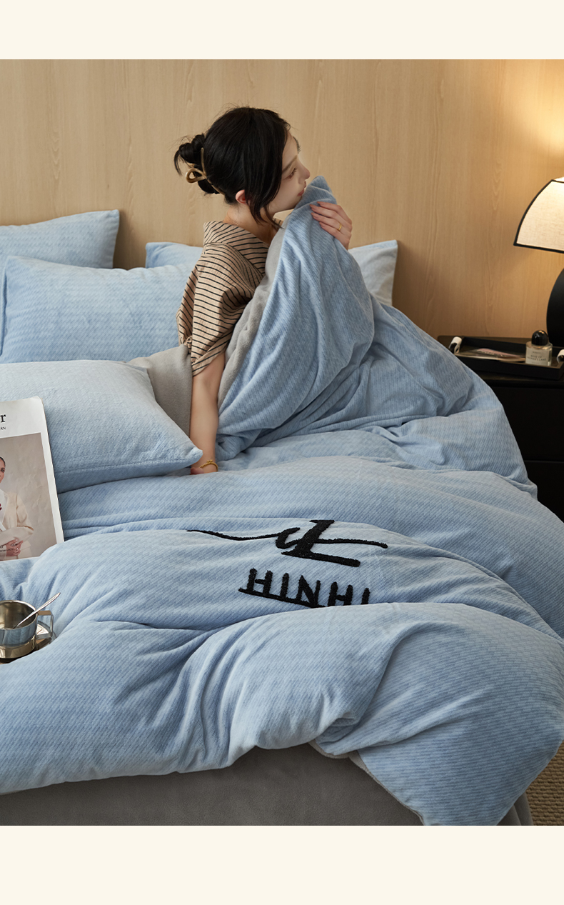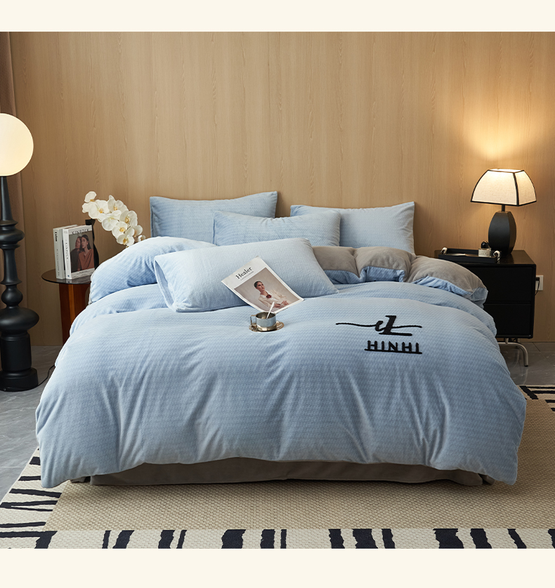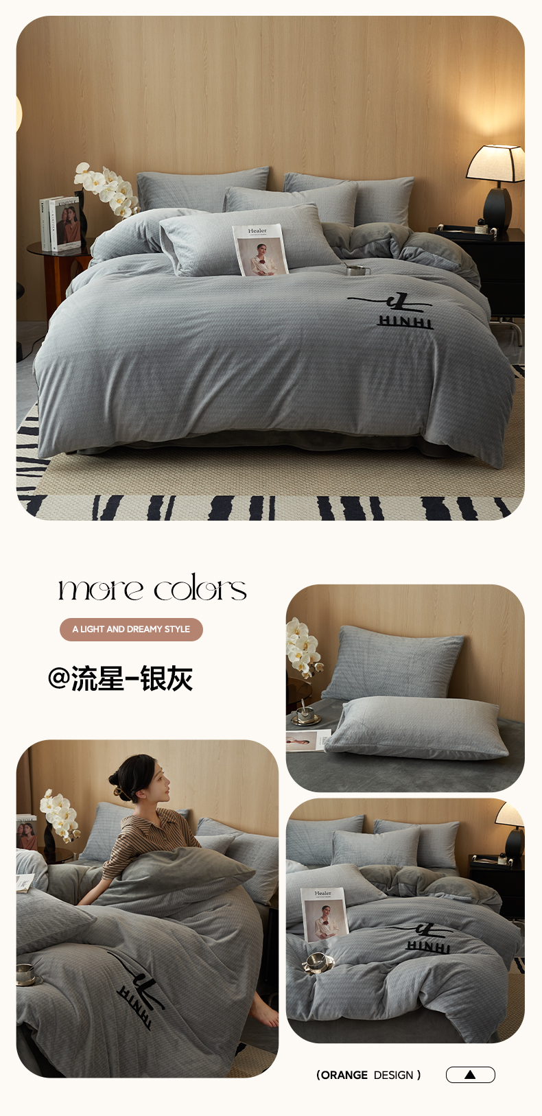 商品名称:早晨家纺 2025新款流星款阳离子提花兔毛牛奶绒四件套 流星-雾蓝