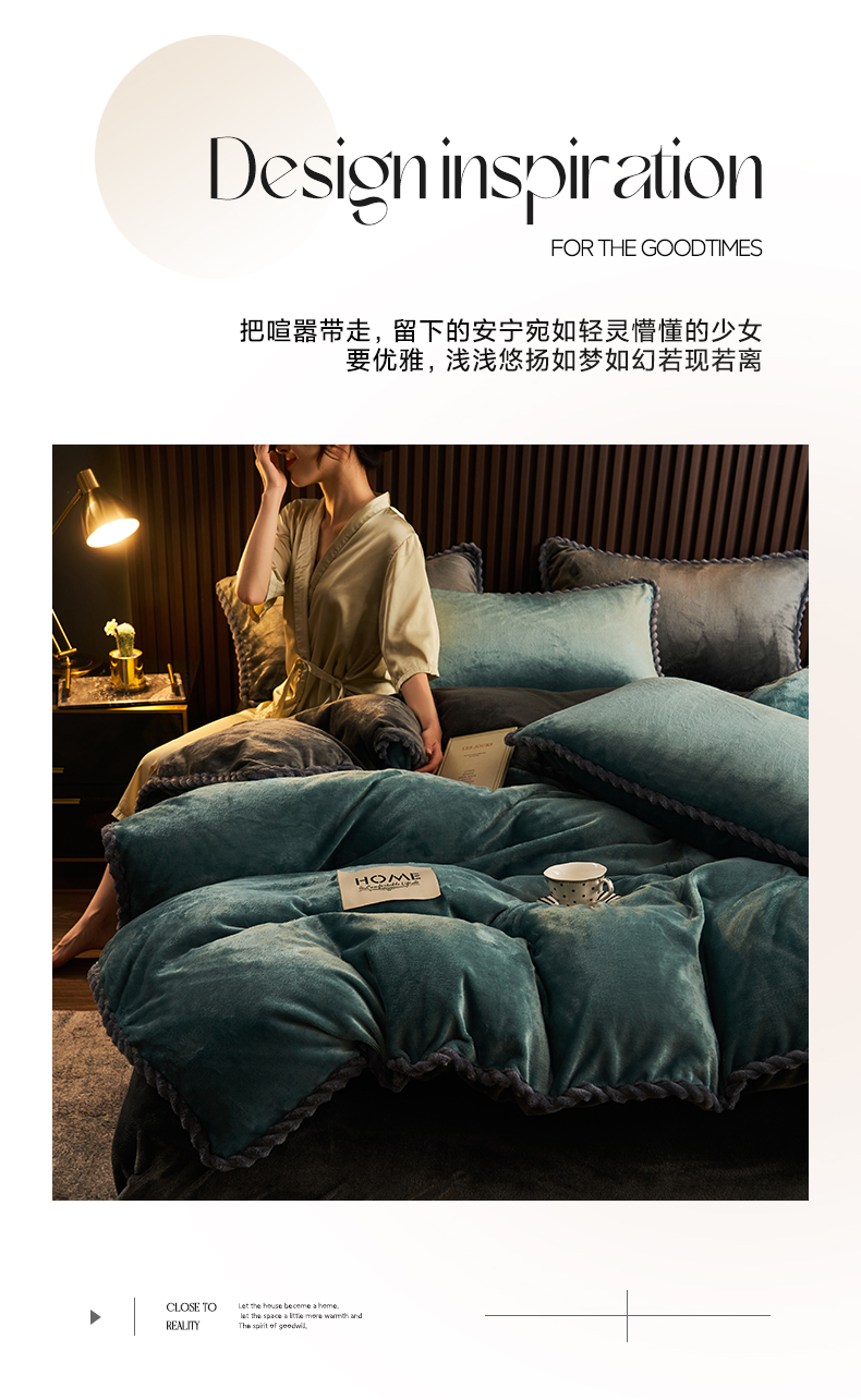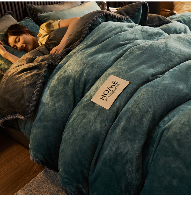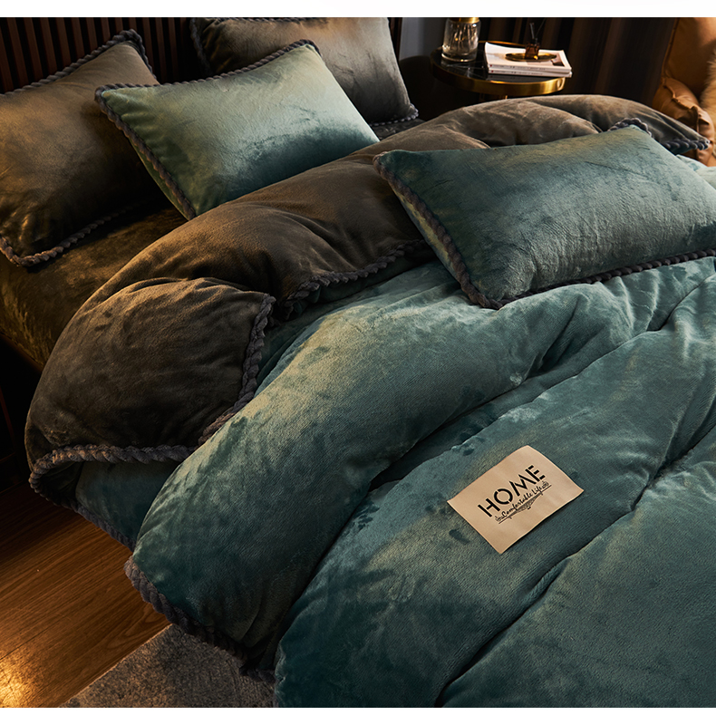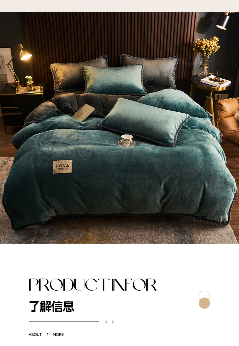 商品名称:早晨家纺 2025新款黑金牛奶绒纯色四件套-风格2 黑金-孔雀蓝