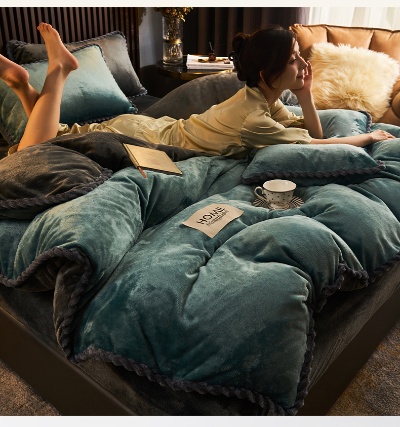 早晨家纺 2025新款黑金牛奶绒纯色四件套-风格2 黑金-孔雀蓝