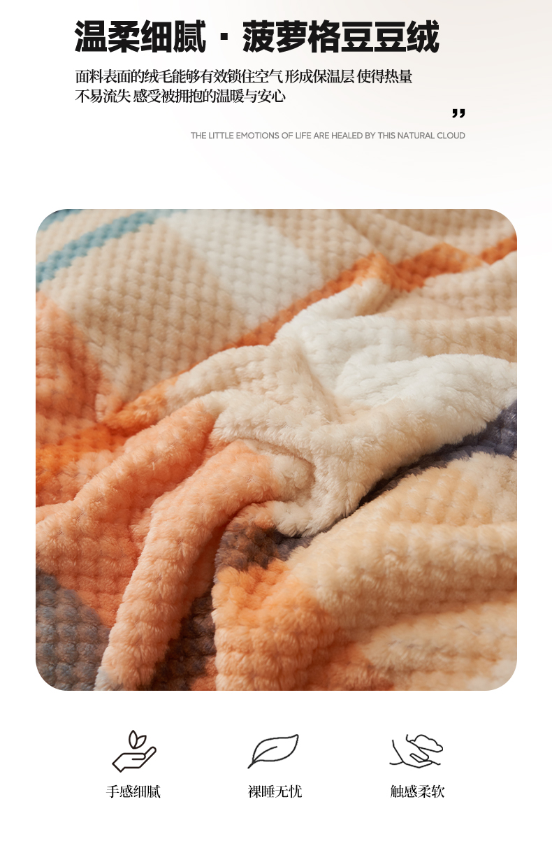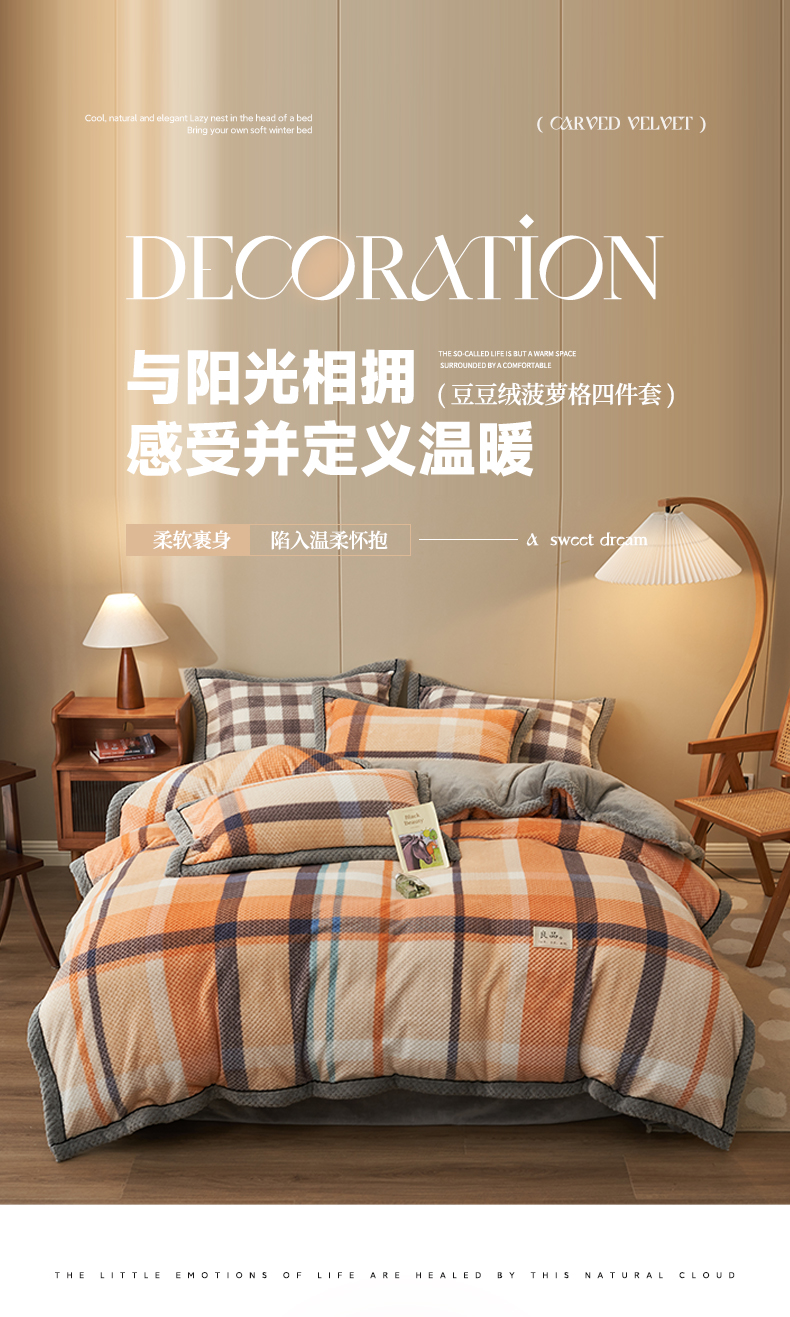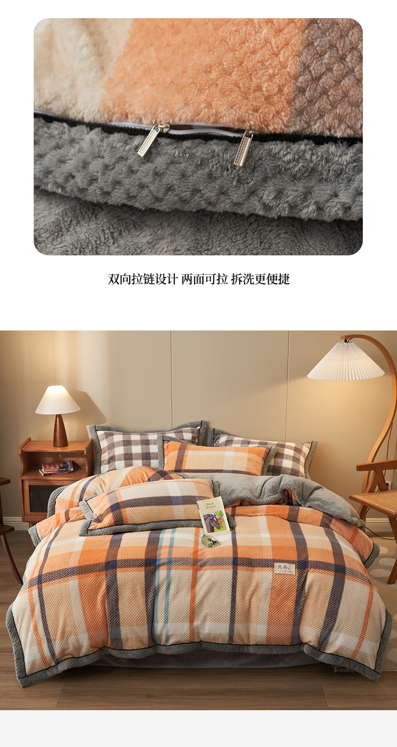 商品名称:早晨家纺 2025新款豆豆款菠萝格提花四件套 豆豆绒-大格橙