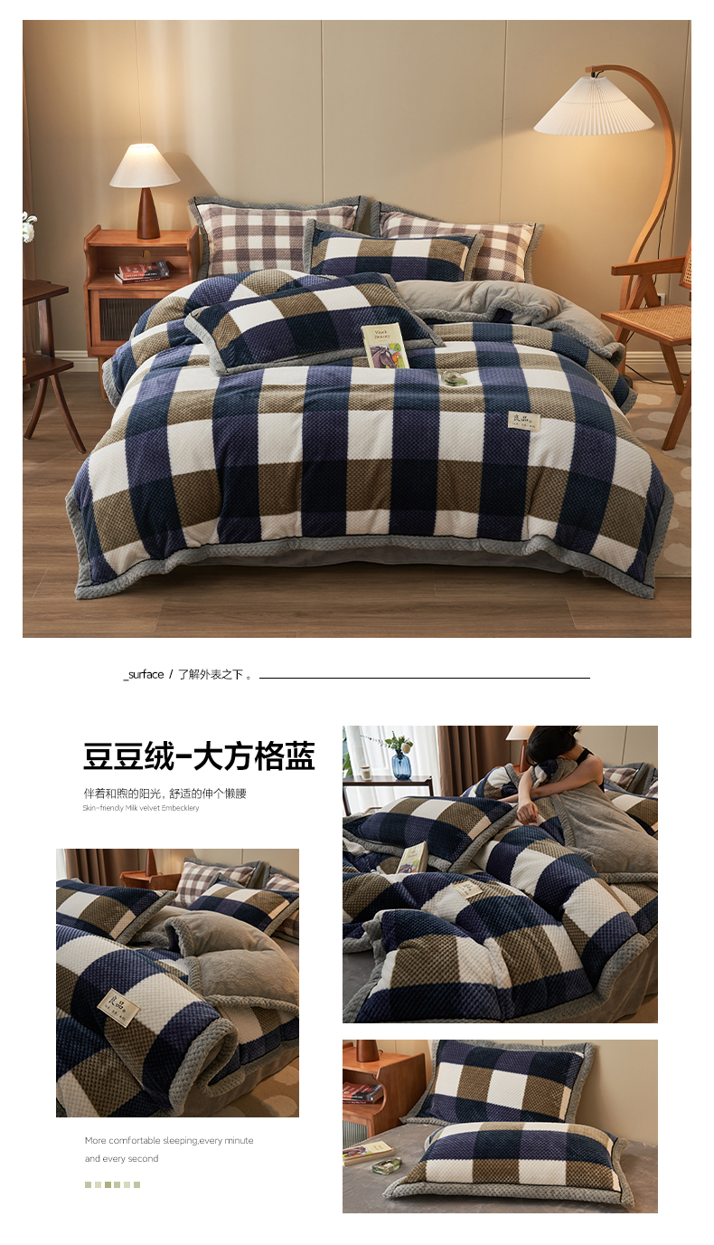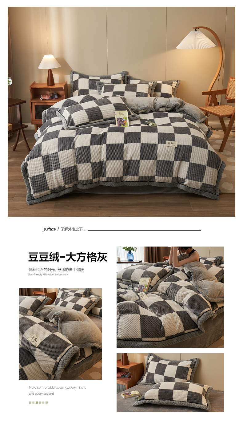 (总)早晨家纺 2025新款豆豆款牛奶绒菠萝格提花四件套,豆豆绒-大方格灰,豆豆绒-大格橙,豆豆绒-小格蓝,豆豆绒-小格咖,豆豆绒-绿条,豆豆绒-多哥咖,豆豆绒-灰条,豆豆绒-大方格蓝