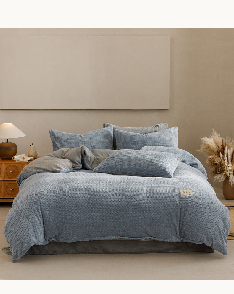 商品名称:早晨家纺 2025新款波浪款牛奶绒提花四件套 波浪-宾利蓝