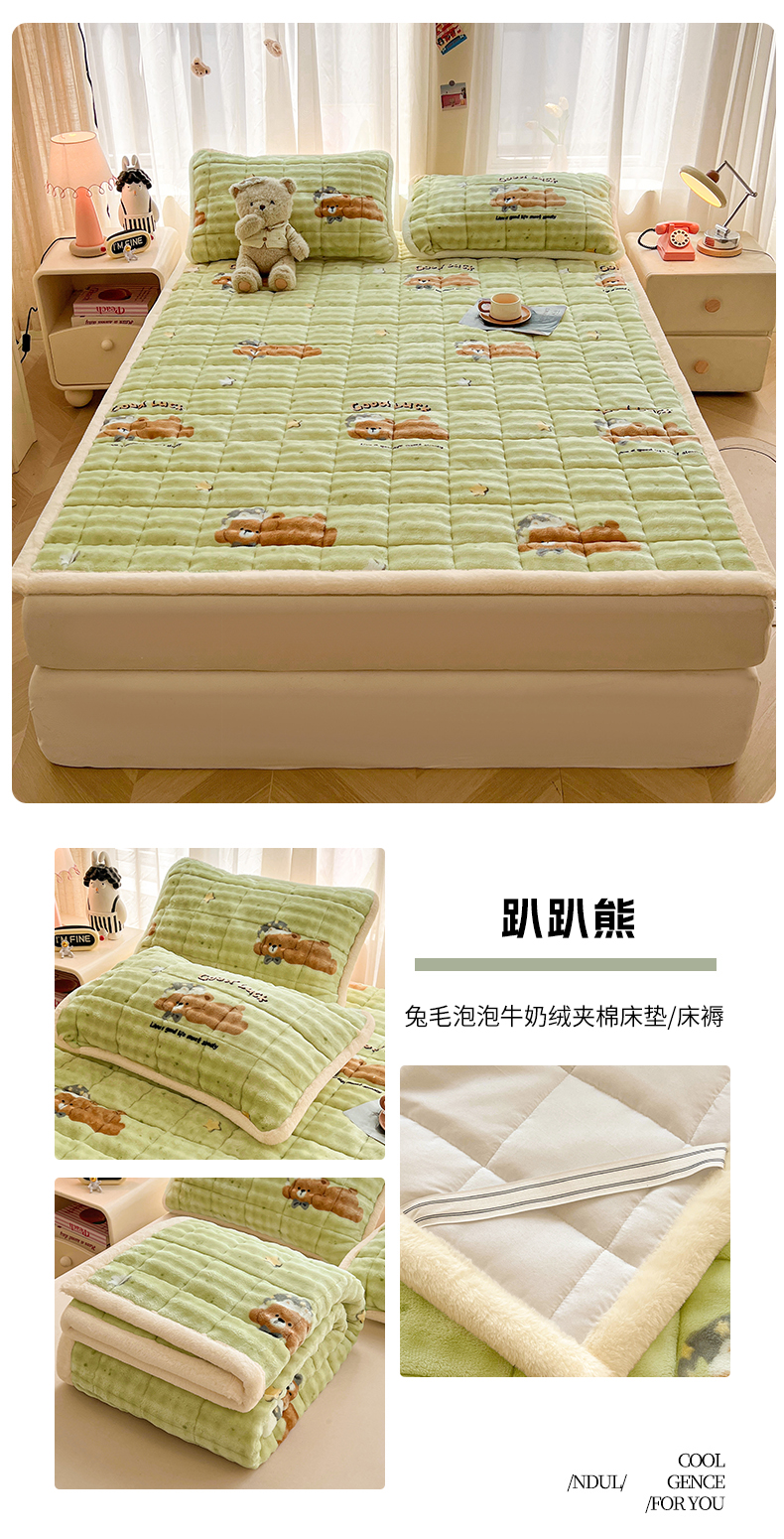 • 91家纺网 家纺一手货源 找家纺 (总)梵朴 2025新款牛奶绒泡泡兔毛绒床垫学生宿舍床褥子床护垫(大床款印花系列)-场景二,爱心蝴蝶结绿,彩虹爱心紫,彩虹哈皮狗,繁星,黄油小熊,咖底蛋糕熊,蕾丝蝴蝶结紫,梦幻太空人,趴趴熊,顽皮小熊猫,星黛露粉,星星小熊灰,音乐狗蓝--,云纹爱心粉