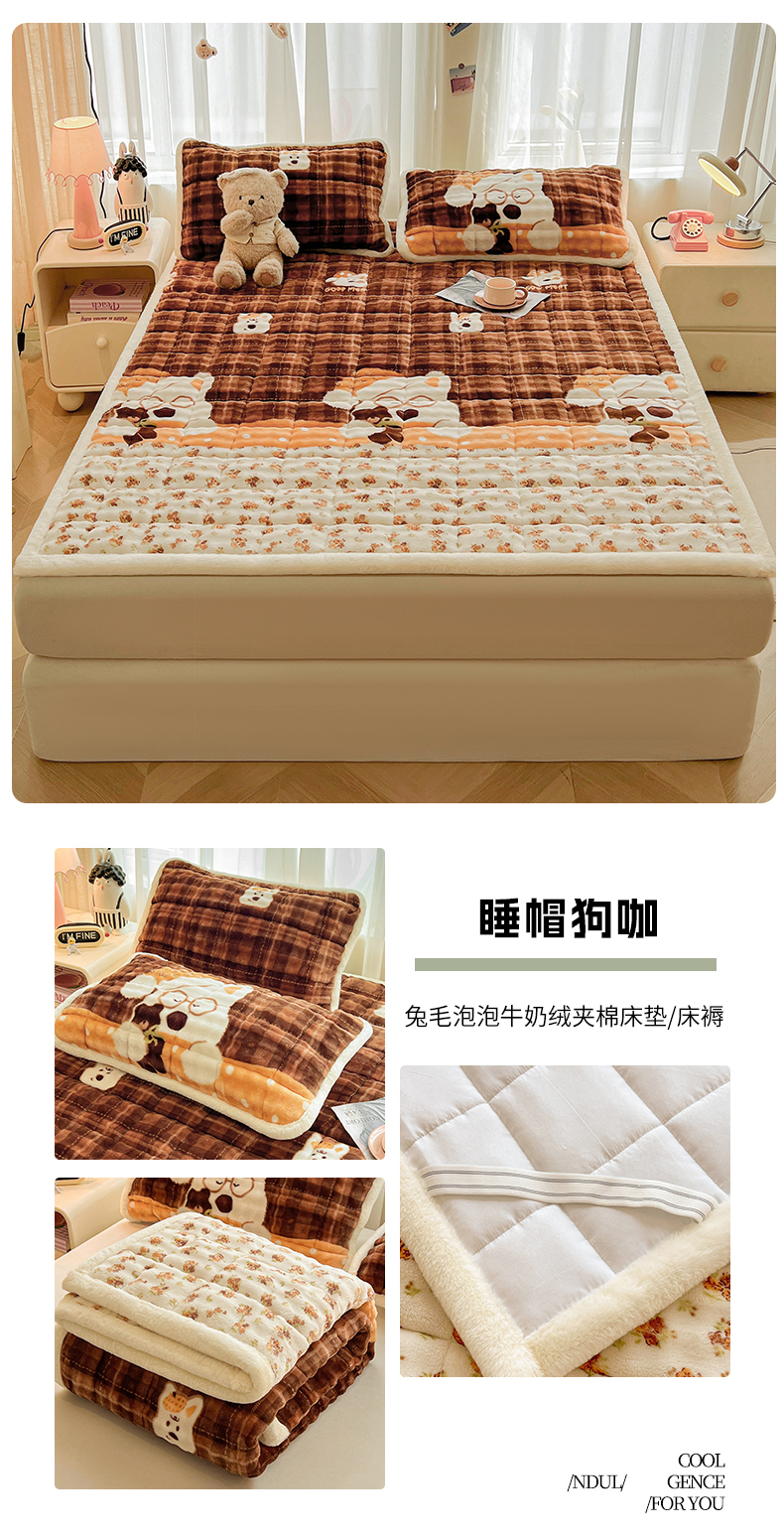 (总)梵朴 2025新款牛奶绒夹棉床垫床褥加厚珊瑚绒床护垫-印花系列(大床图),元气小熊,早安小狗,宇宙太空人,绿格熊猫,灰格熊猫,简约三角,开心奶狗,小熊派对,调皮熊猫,厨师长狗狗,彩虹小象,甜蜜小兔,三只布布,萌宠聚会,星星萌狗,费尔岛狗狗,彩点西高地,蛋糕兔,缤纷彩虹,爱心蝴蝶结蓝,波点南瓜,花漾年华,花园凯蒂,简约蝴蝶结,汪汪小队,星黛免兔