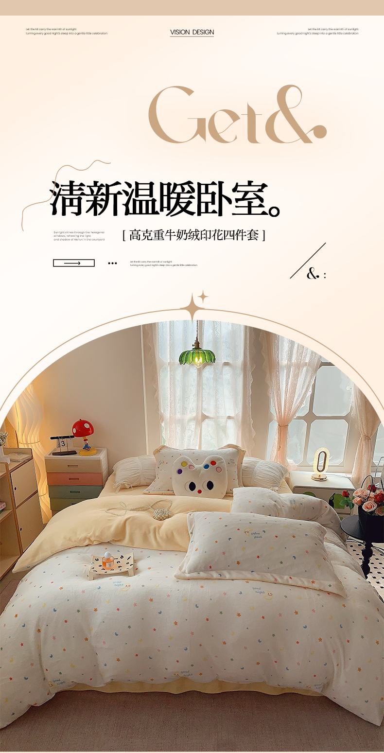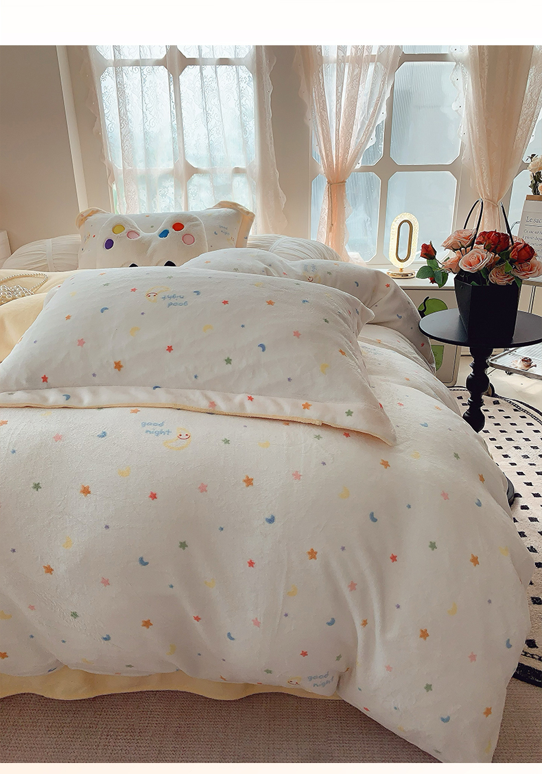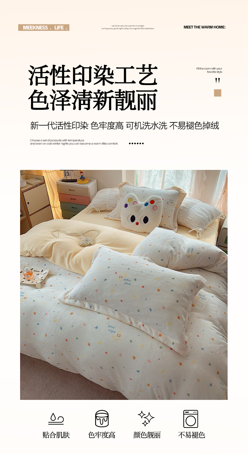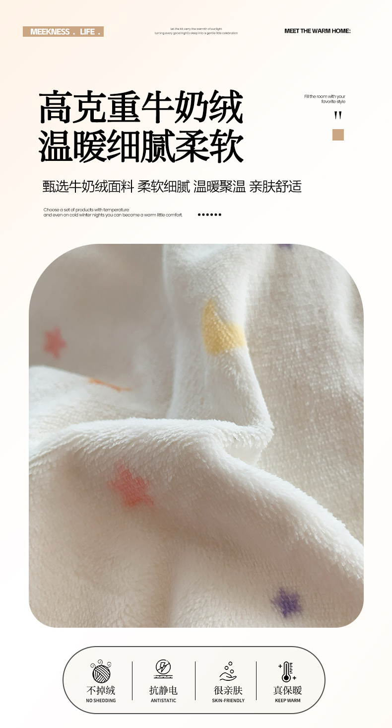 商品名称:莱豫家纺 2025新款加厚牛奶绒三件套四件套保暖不静电 繁星