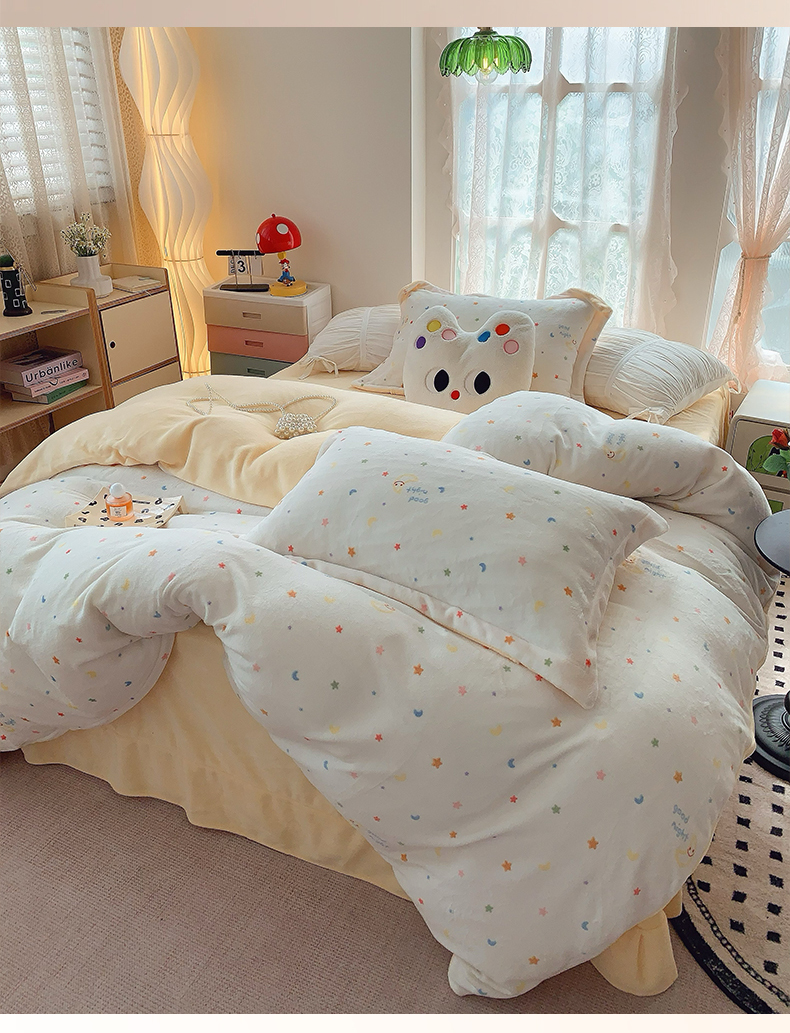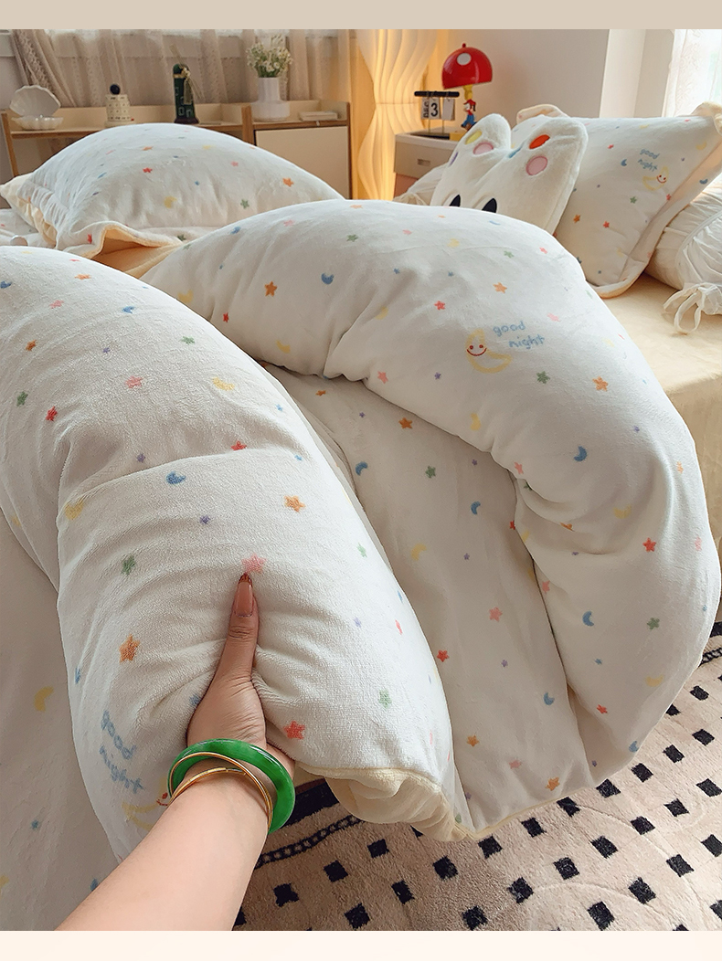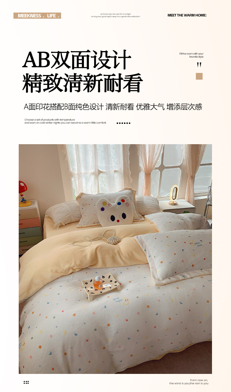 莱豫家纺 2025新款加厚牛奶绒三件套四件套保暖不静电 繁星