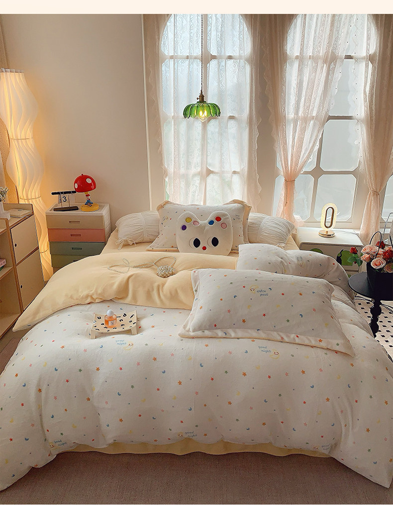 (总)莱豫家纺 2025新款小清新全棉纯棉四件套,爱心豹纹,白薇,春黛,芳华,锦绣咖,锦绣米,可爱狗狗咖,太空超人,甜橘,童年,仙本娜,小飞马,小小花园,星星人黄,星星人蓝,雅蔓