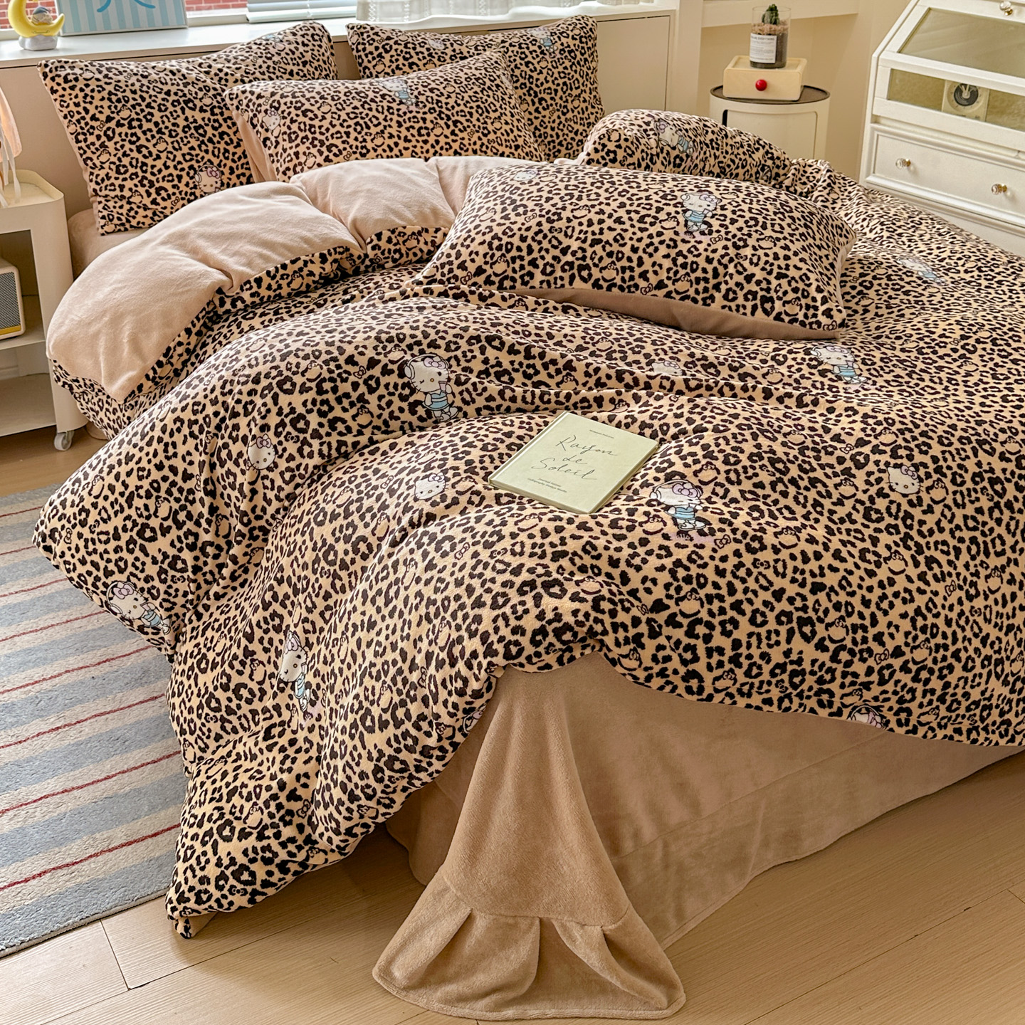 梦莱斯 2025新款加厚保暖双面牛奶绒四件套 豹纹兔