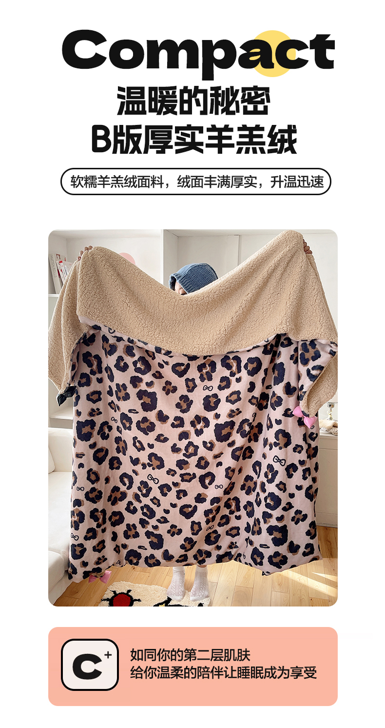 (总)轻奢坊 2025新款博主风豹纹牛奶绒羊羔绒毛毯