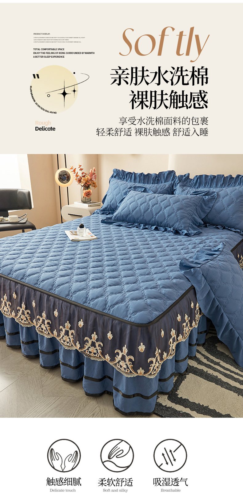 商品名称:(总)好儿喜家纺 2025新款A类水洗棉床裙-巴伦系列