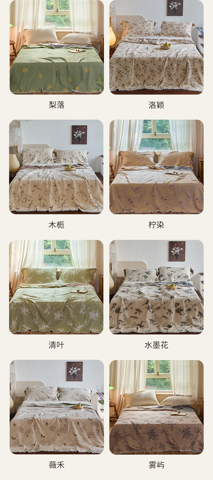(总)沐瑟家纺 2025新款亲肤柔软全棉纱布中国风盖毯毯子,百花集,翠影鸟-蓝色,花想容,花鸟韵,蝶语-绿,蝶语-淡粉,花蝶-米,比翼鸟,墨葵,绮梦花