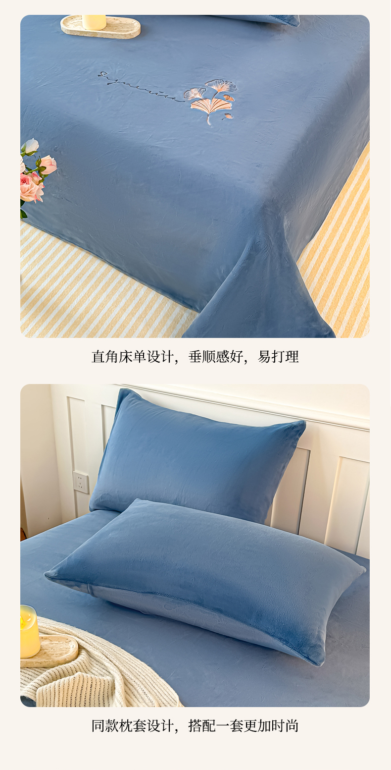 商品名称:卓缦家纺 2025新款秋冬牛奶绒刺绣床单加厚三件套单品 宾利蓝