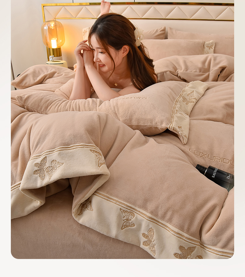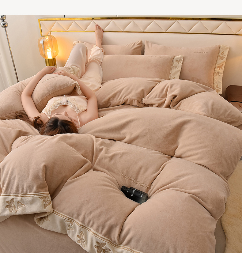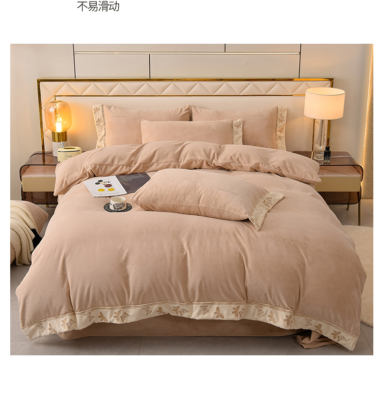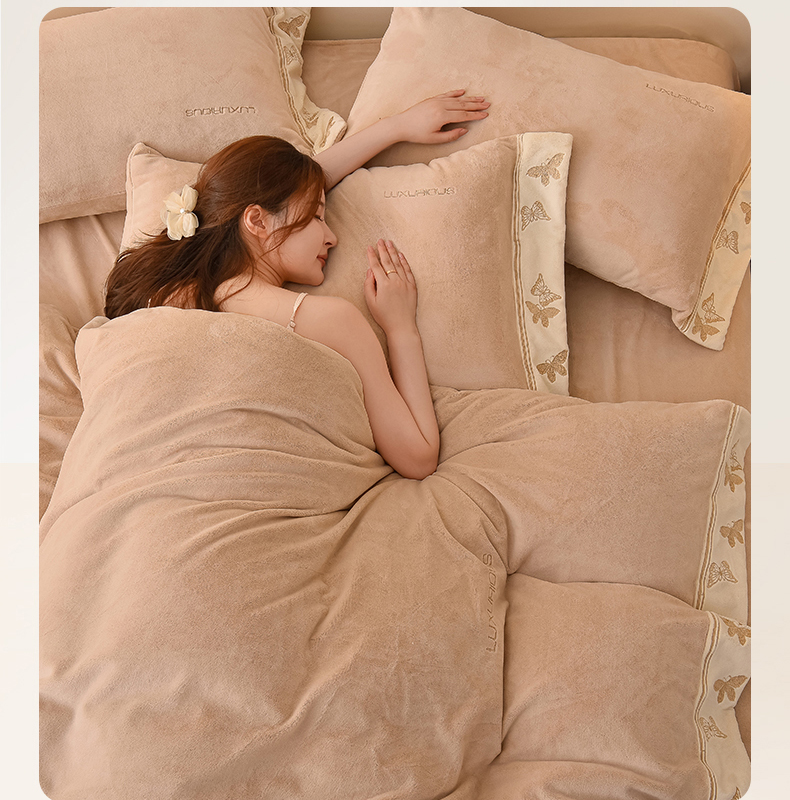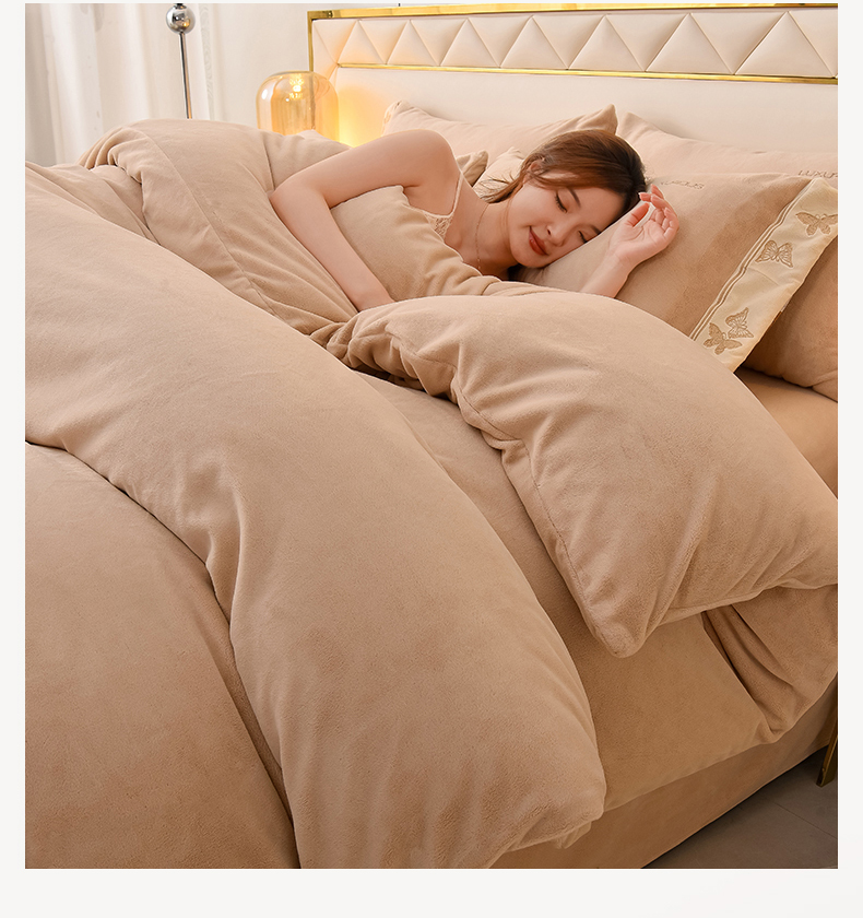 米奈家居 2025新款A类高克重婴儿绒四件套-吉娜系列 浅杏色