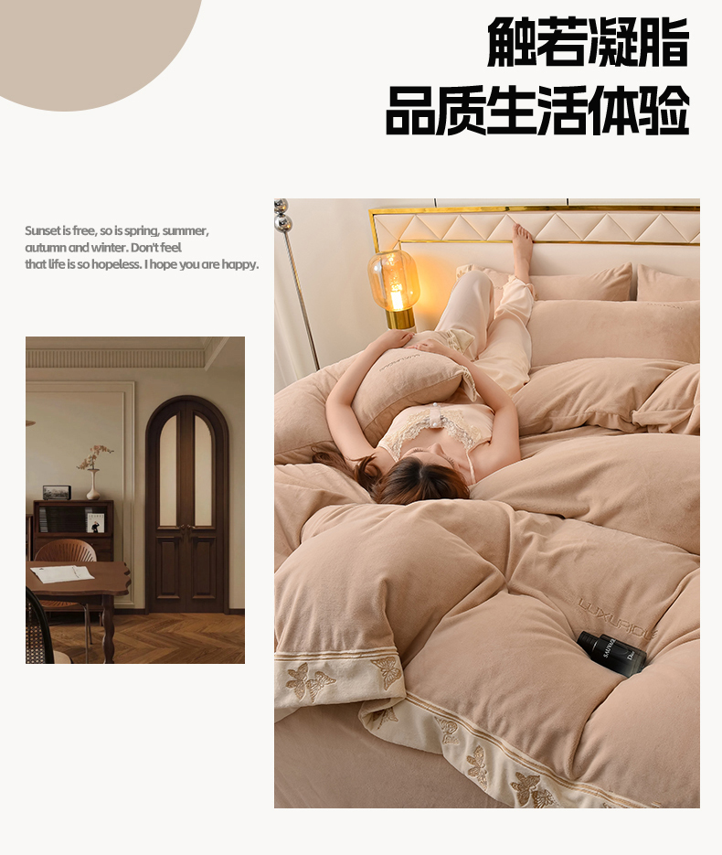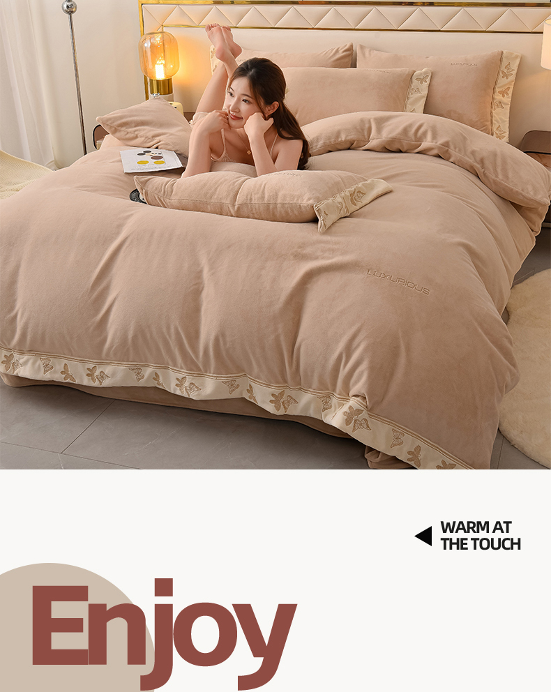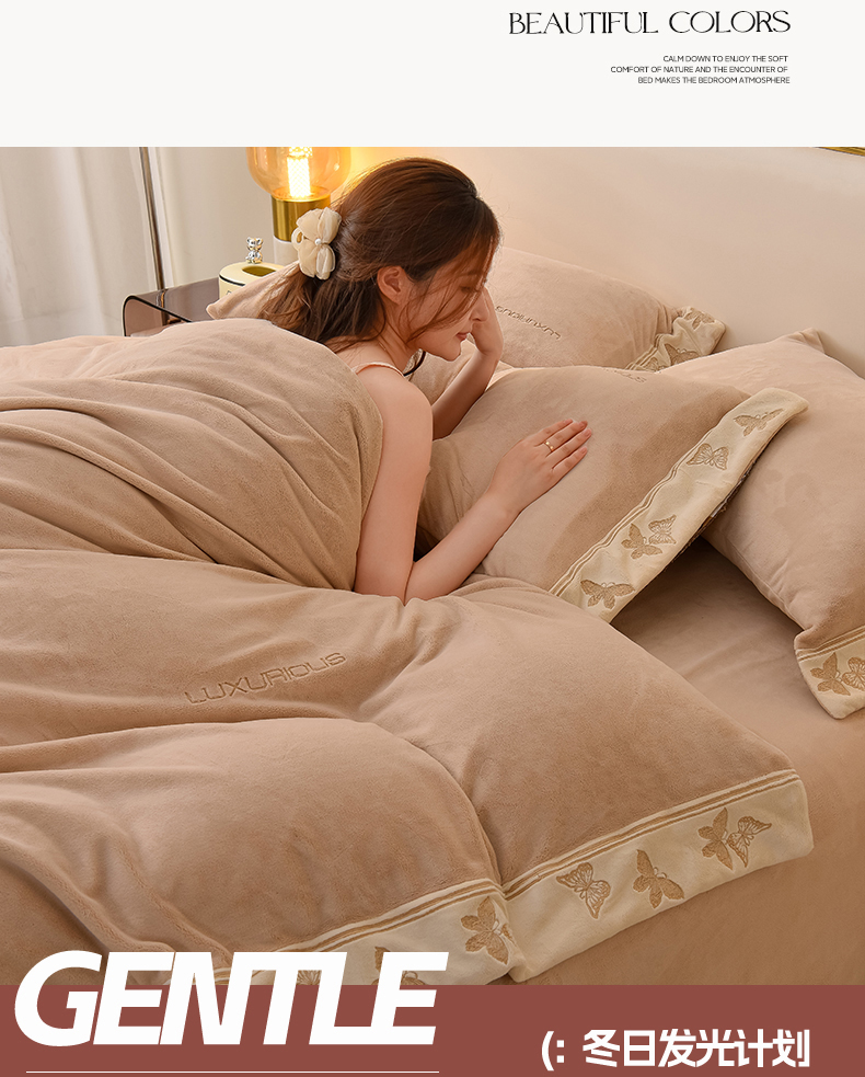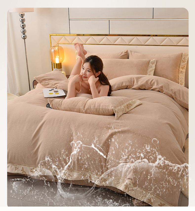 米奈家居 2025新款A类高克重婴儿绒四件套-吉娜系列 浅杏色