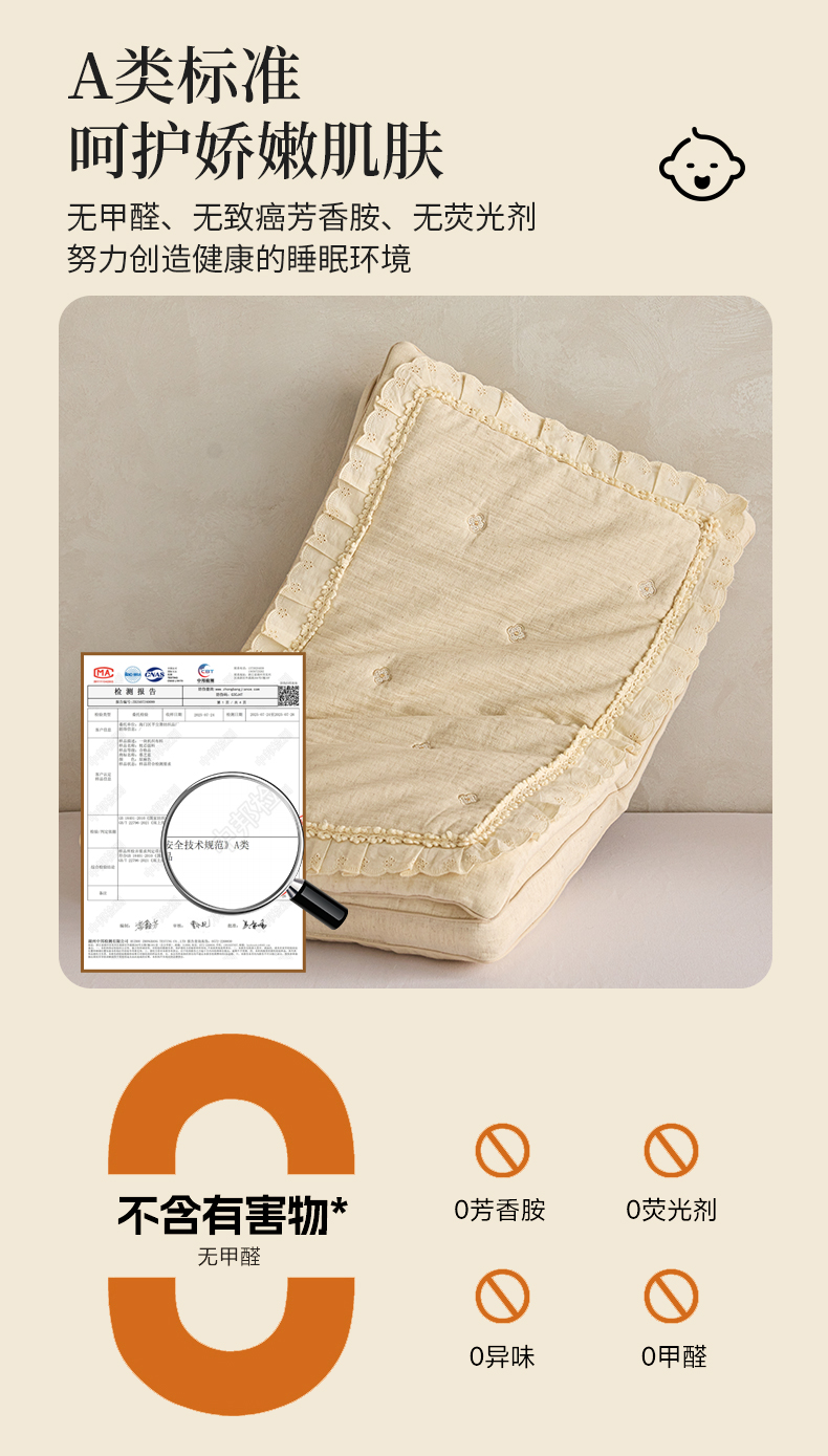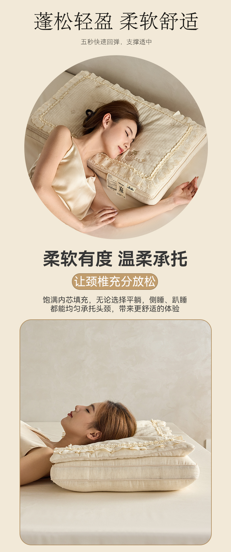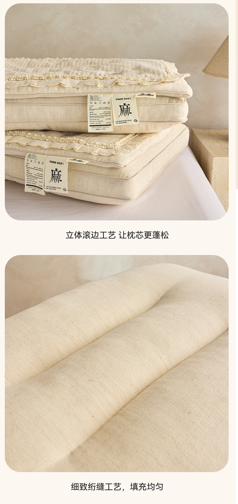(总)昕科 2025新款蕾丝花边棉麻定型低枕枕头枕芯,蕾丝花边棉麻定型低枕