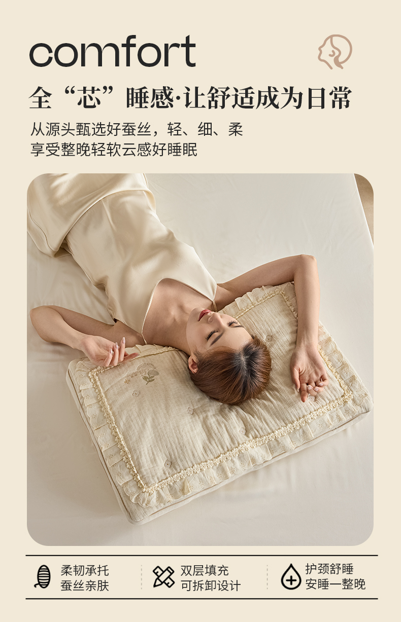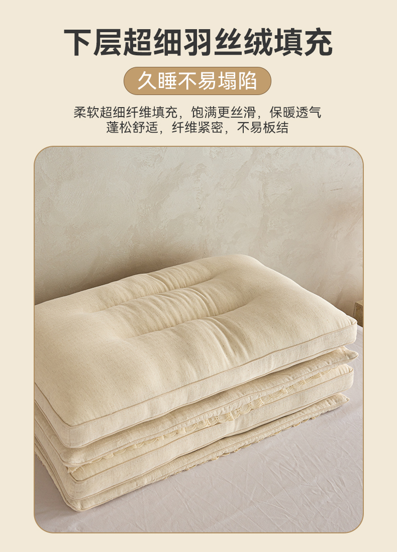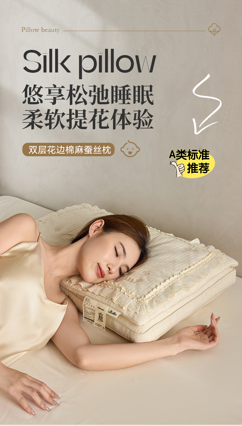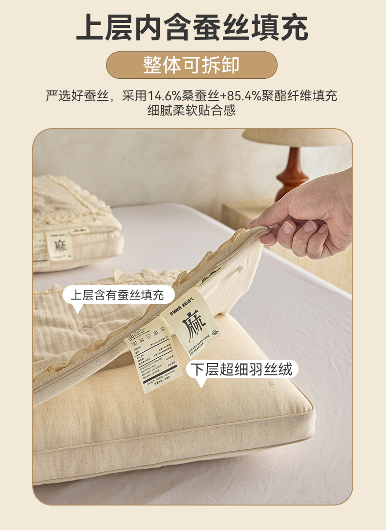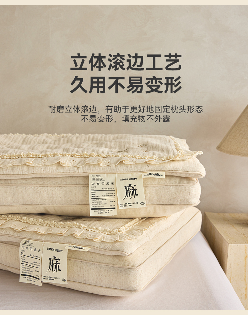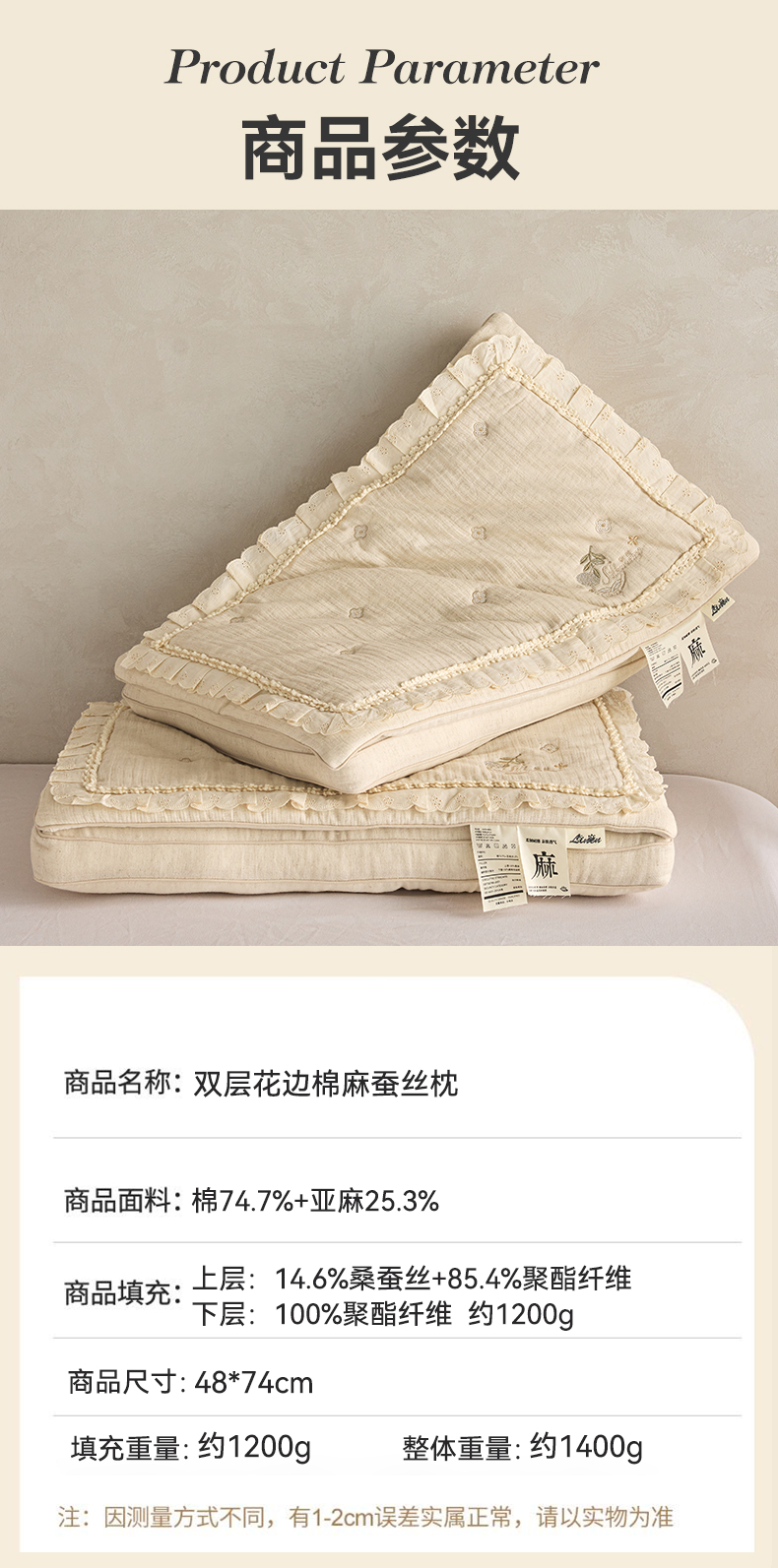 商品名称:昕科 2025新款双层可拆花边棉麻蚕丝枕-二合一可拆蚕丝棉麻枕头棉麻成人枕芯 双层可拆花边棉麻蚕丝枕/一对装