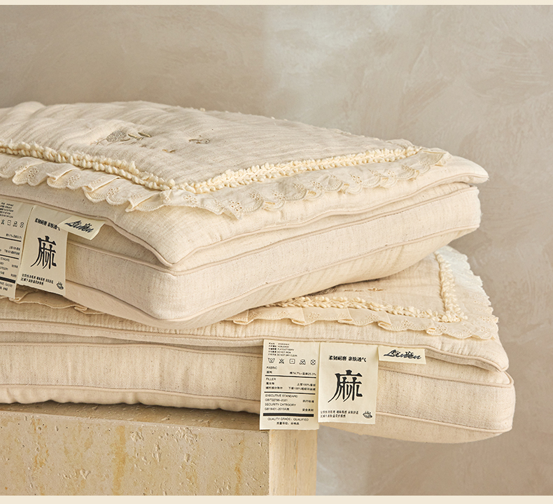 (总)昕科 2025新款蕾丝花边棉麻定型低枕-实拍版-亚麻低枕头蕾丝花边成人枕芯,蕾丝花边棉麻定型低枕