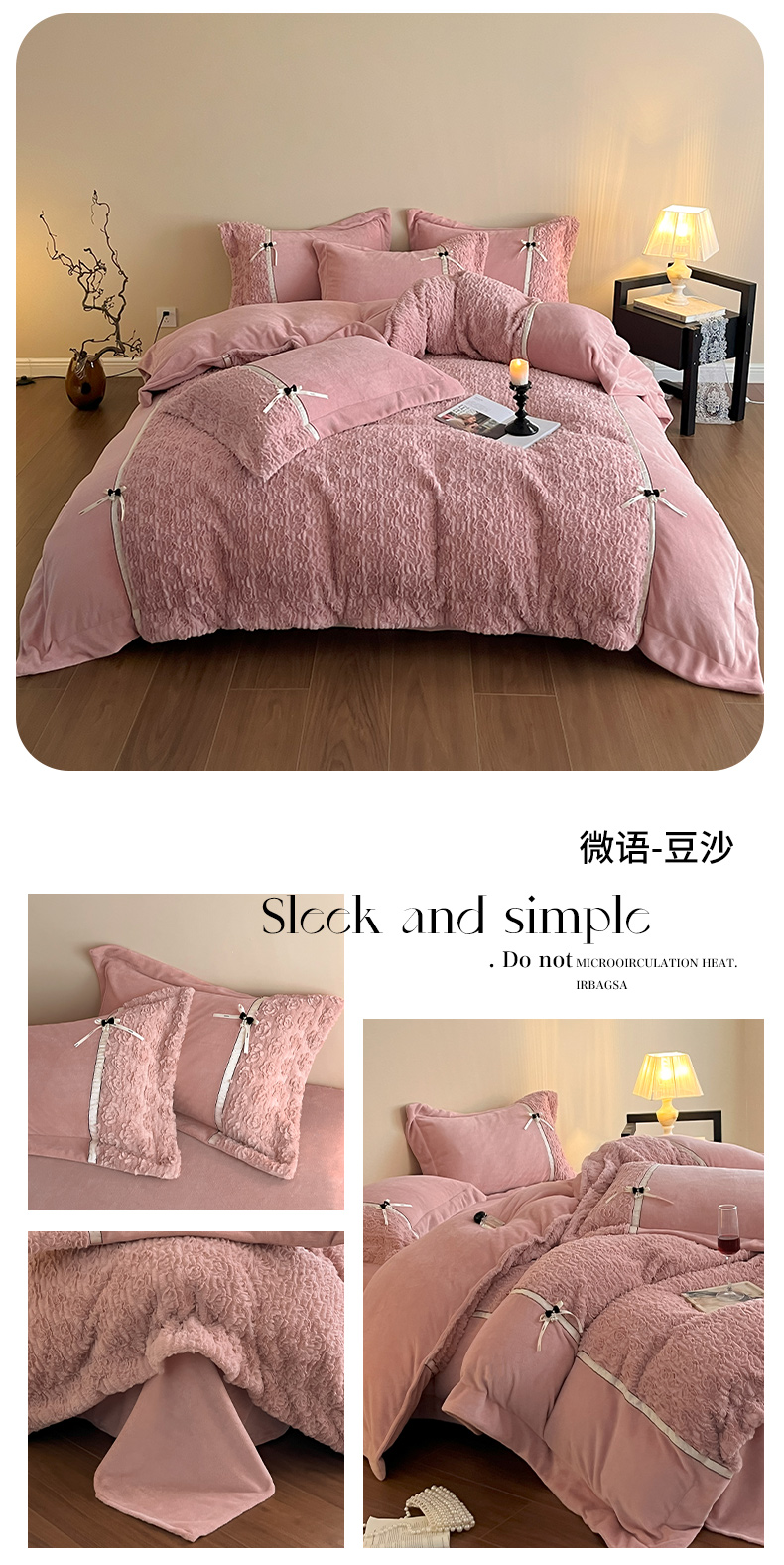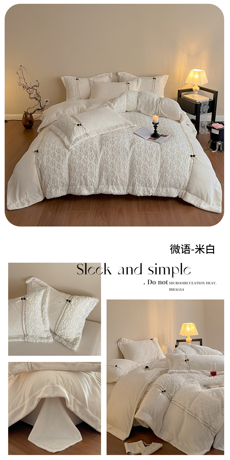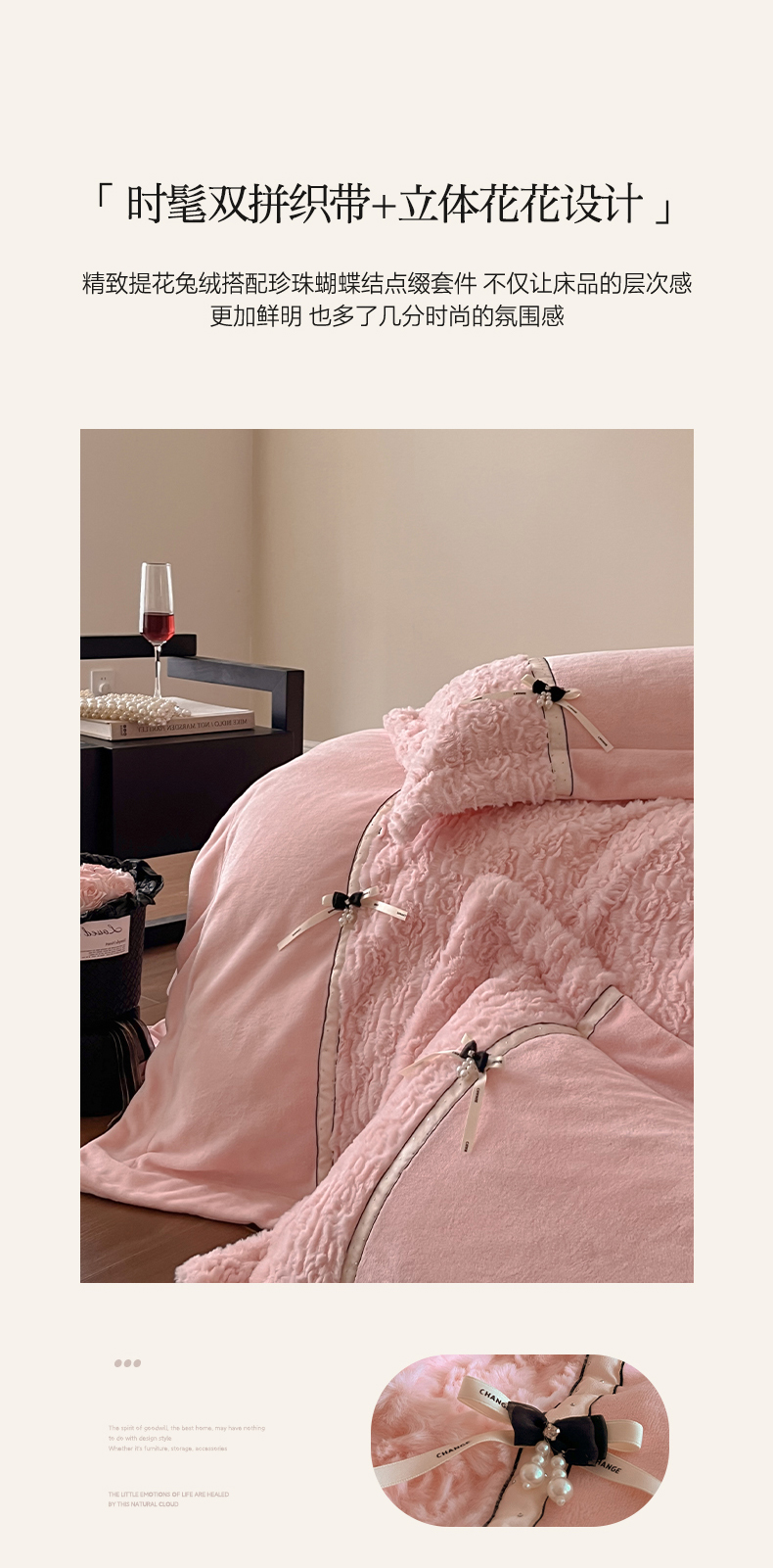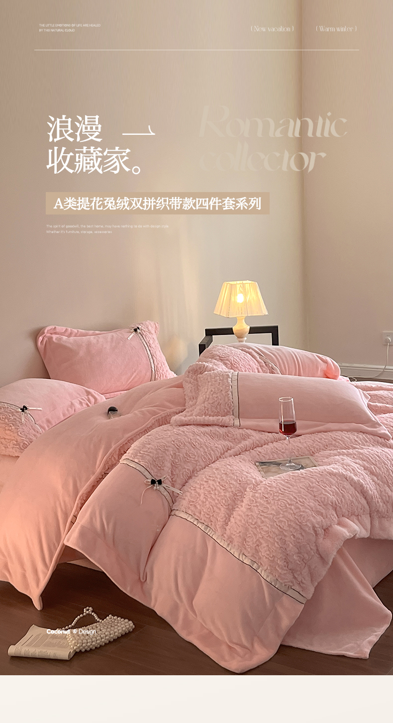 蓝邻家纺 2025新款提花兔绒双拼织带款四件套-微语系列 微语-玉色