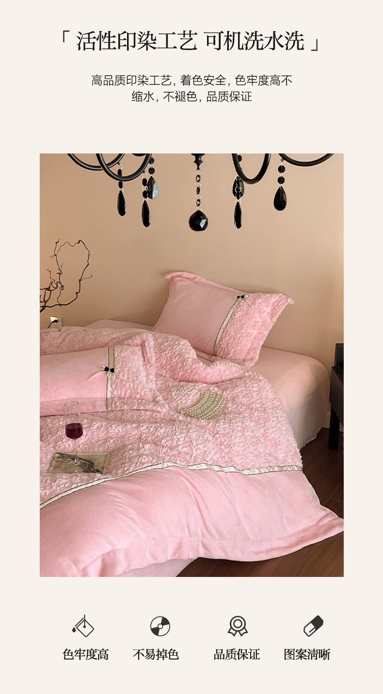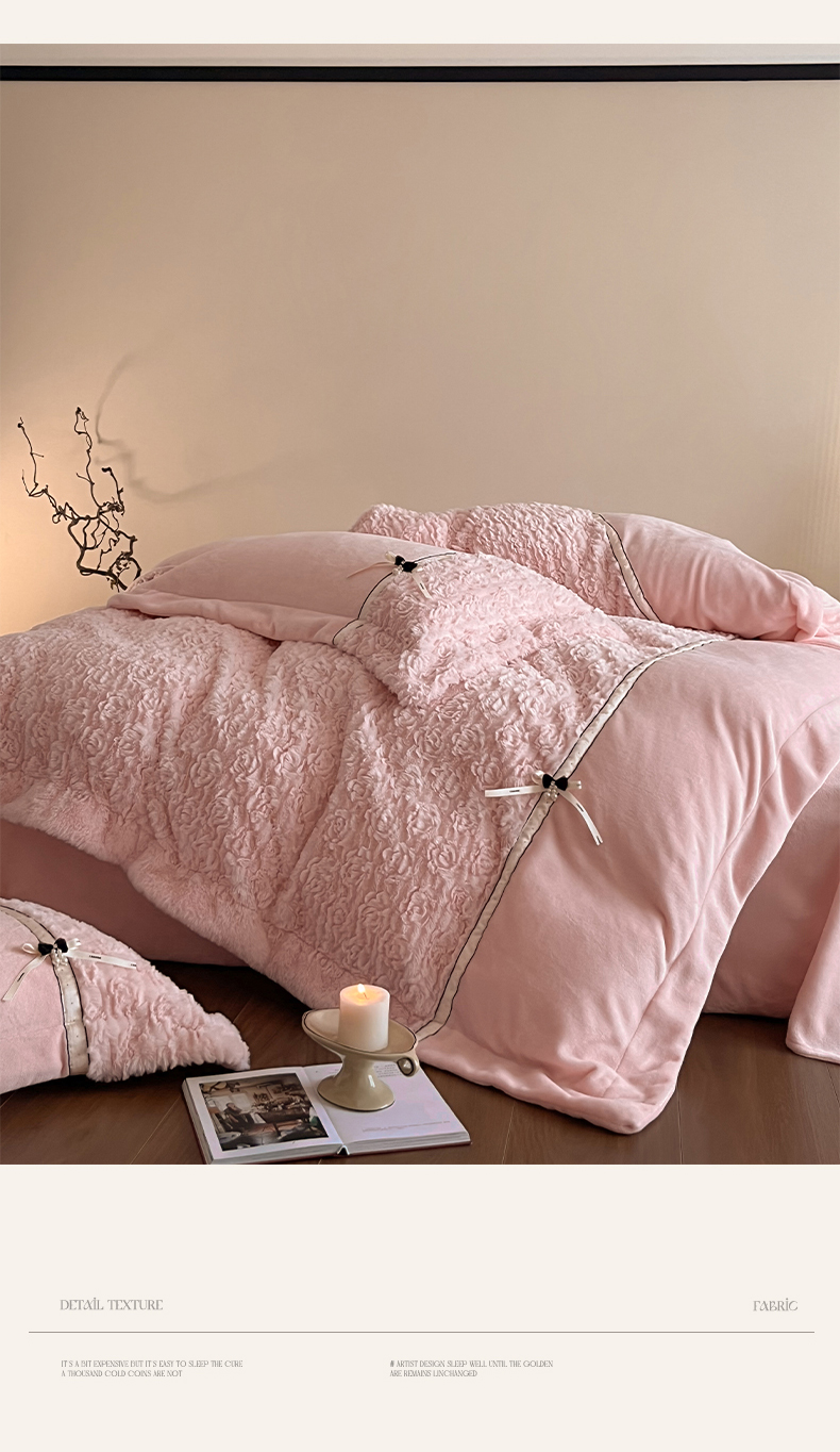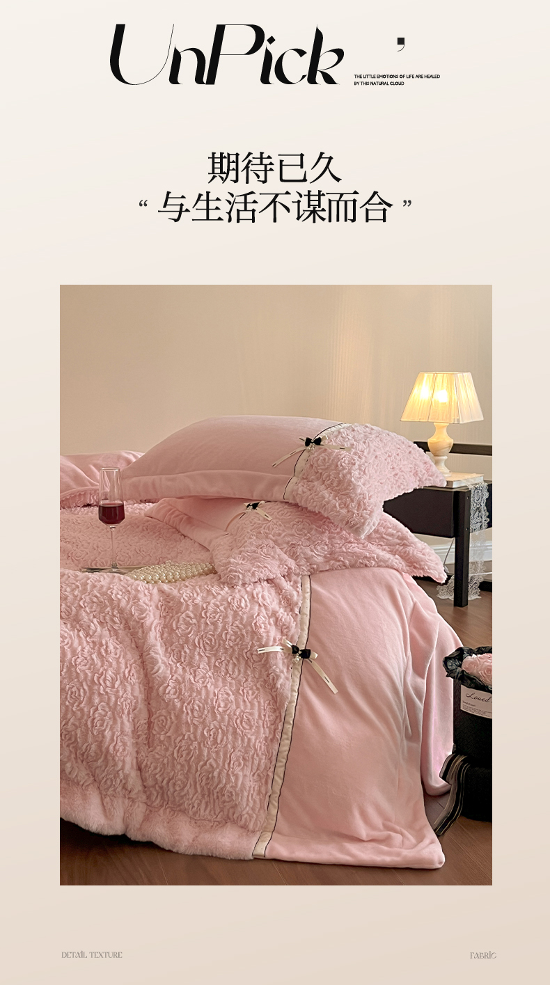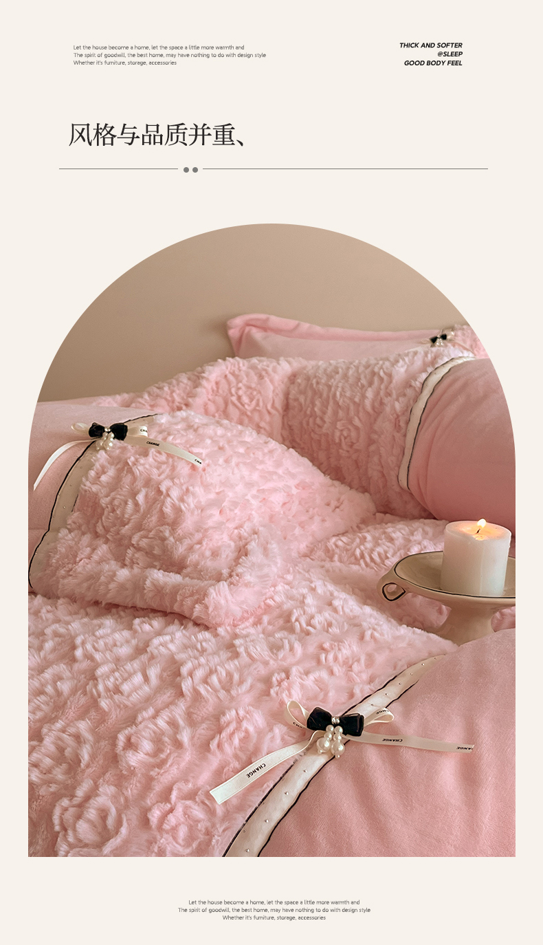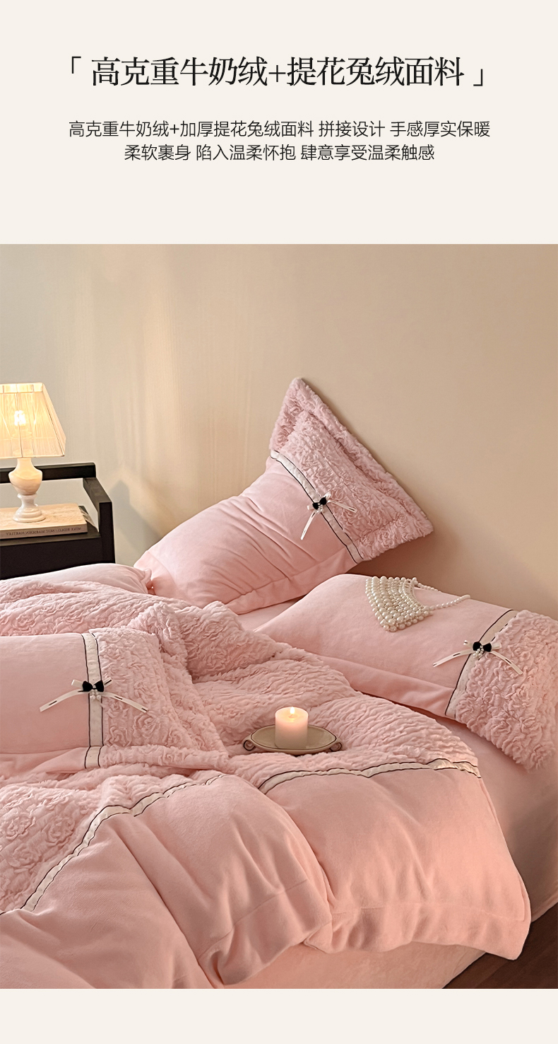 蓝邻家纺 2025新款提花兔绒双拼织带款四件套-微语系列 微语-玉色
