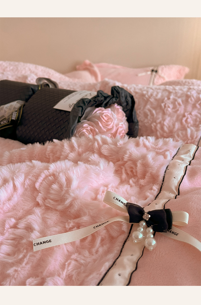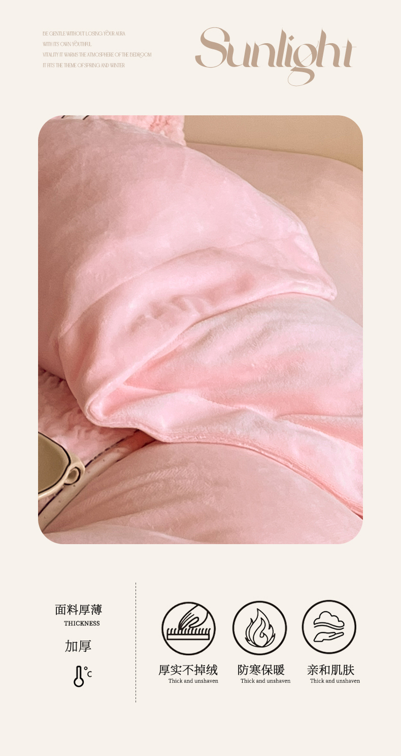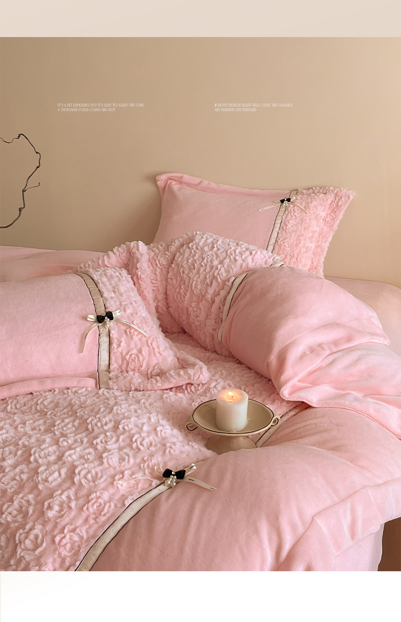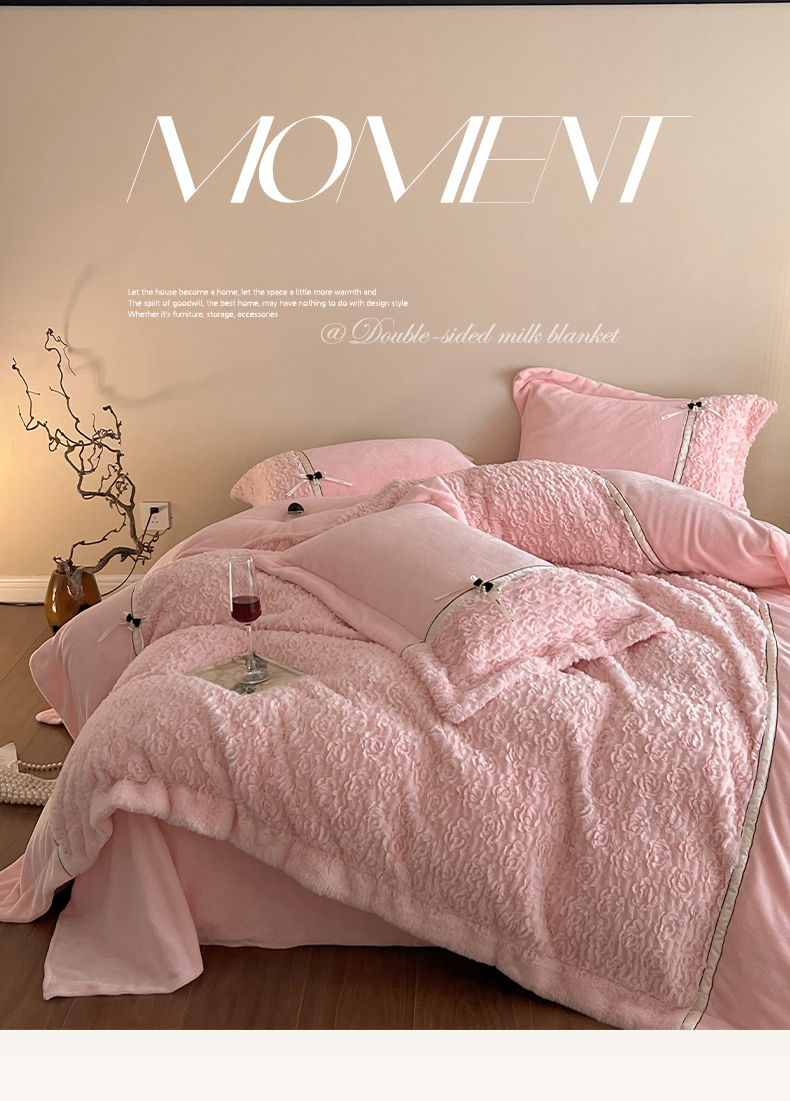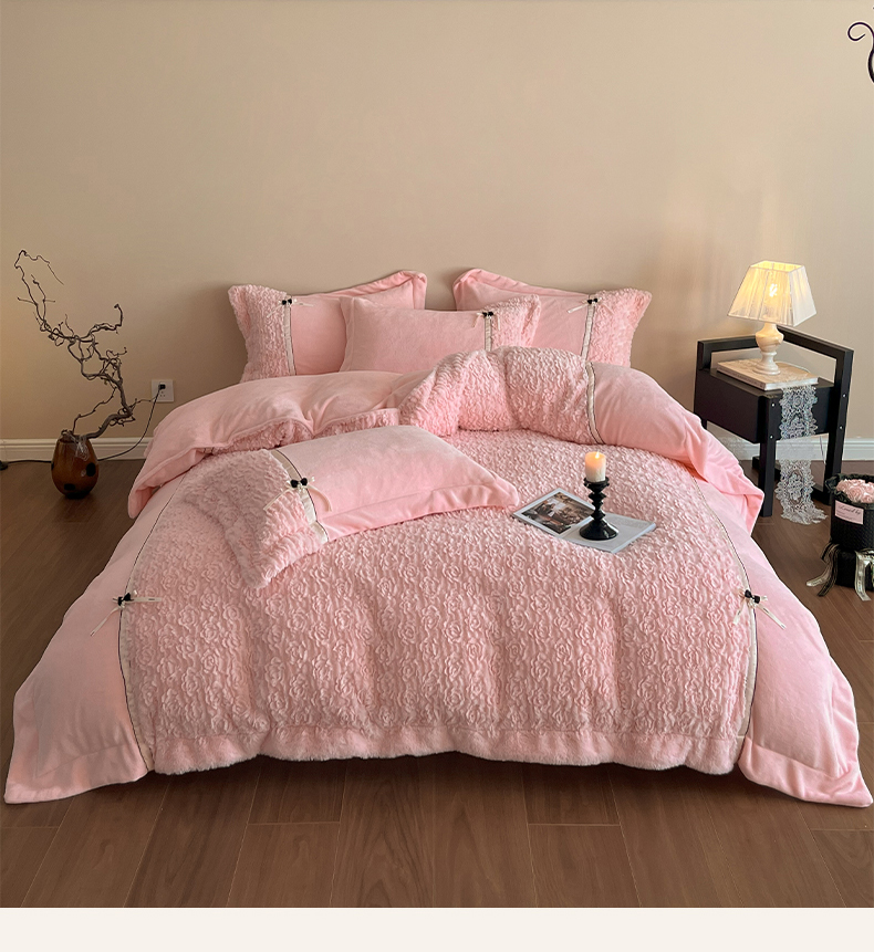 蓝邻家纺 2025新款提花兔绒双拼织带款四件套-微语系列 微语-玉色
