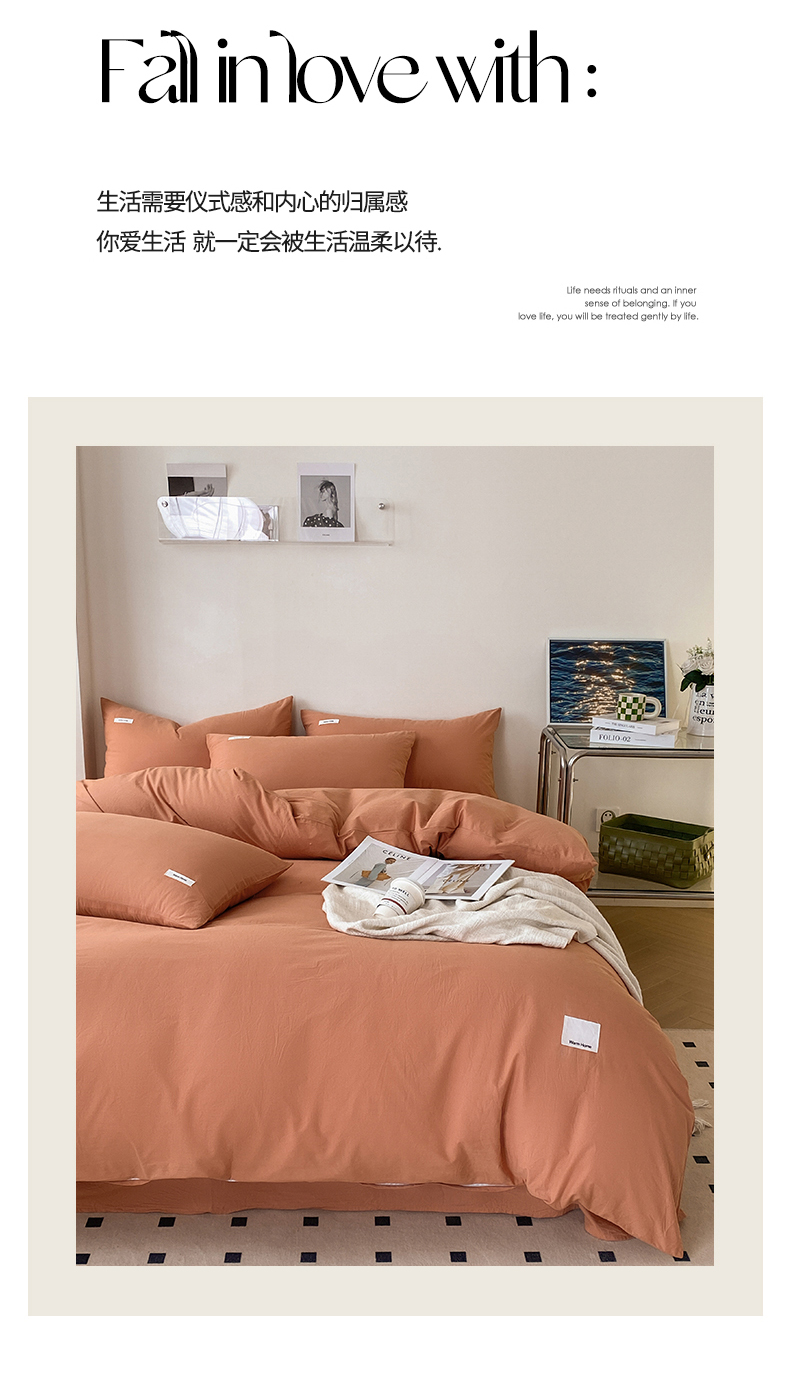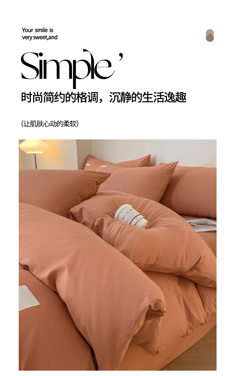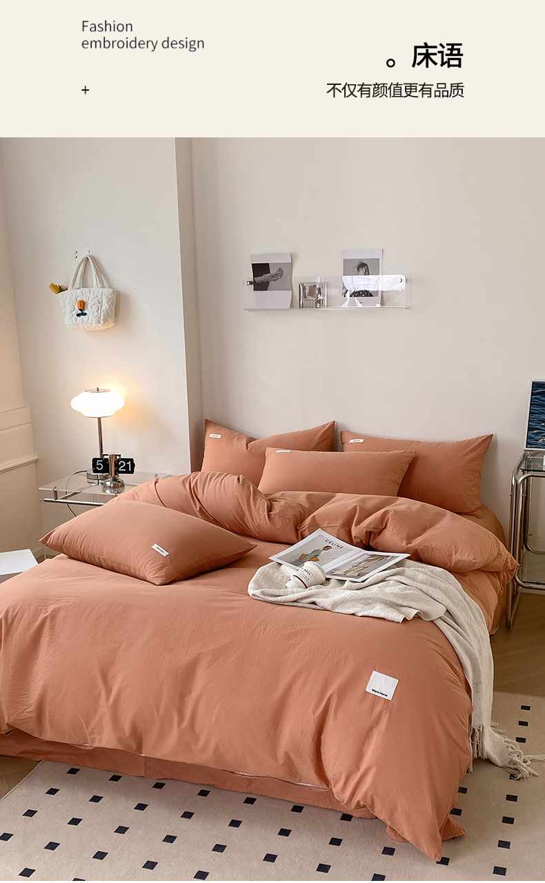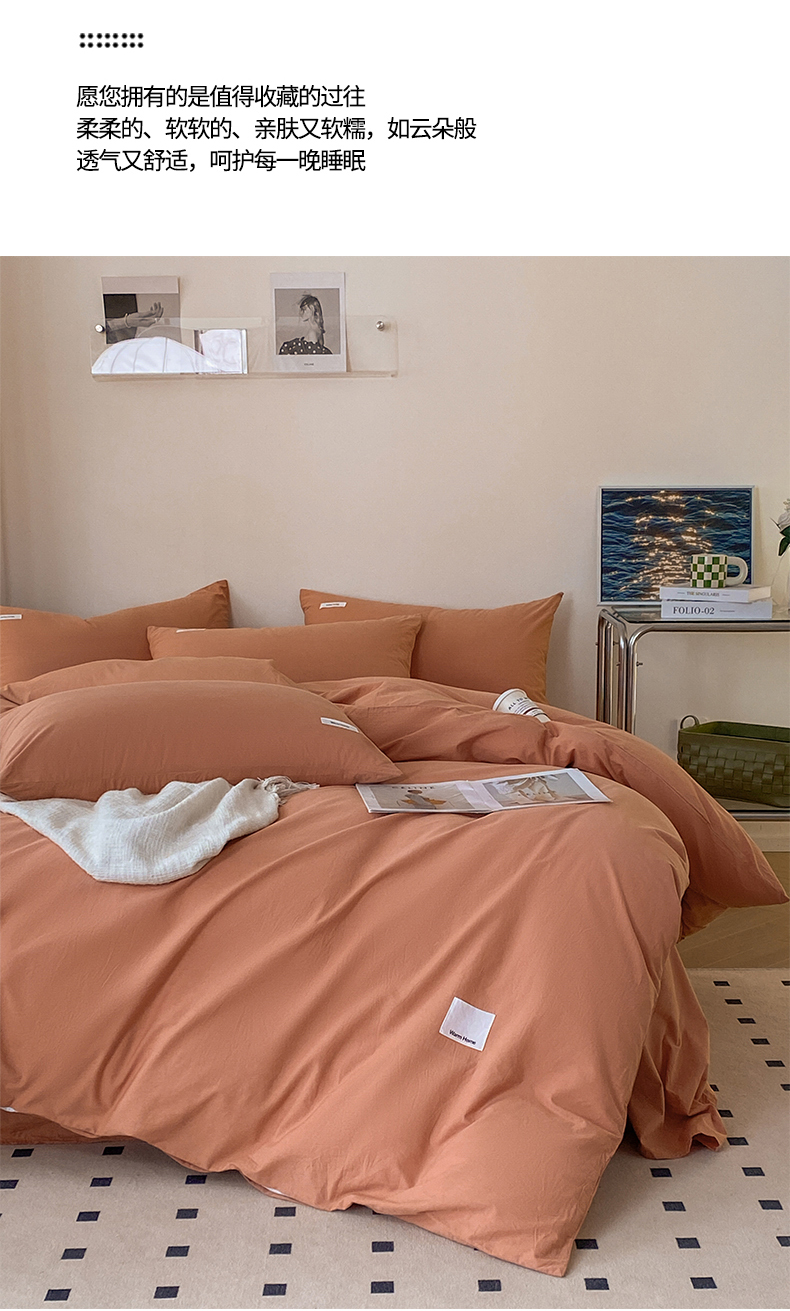 当前位置: 91家纺网 > 商品网购 > 床品套件 > 四件套 > 全棉普通四件套 > 蓝邻家纺 2025新款A类全棉纯棉水洗棉纯色贴标系列四件套-风格二 焦糖色