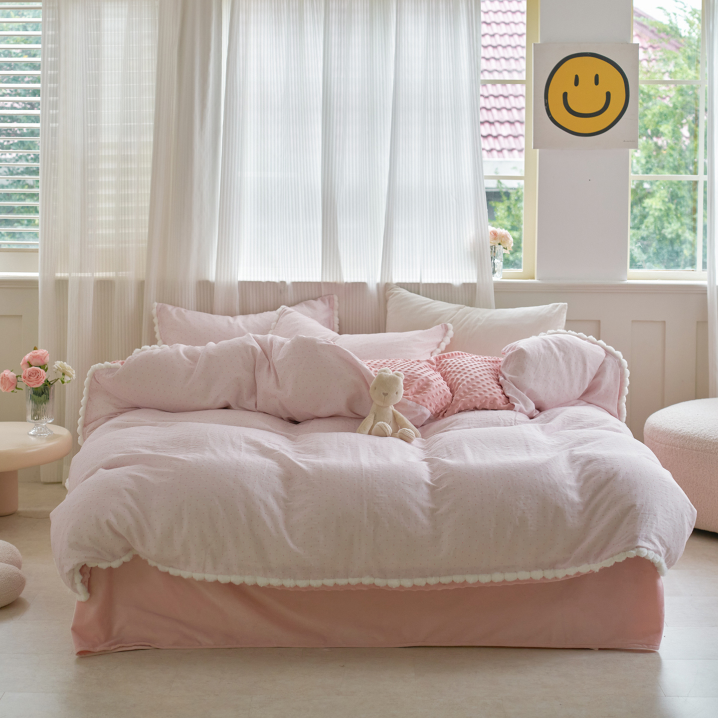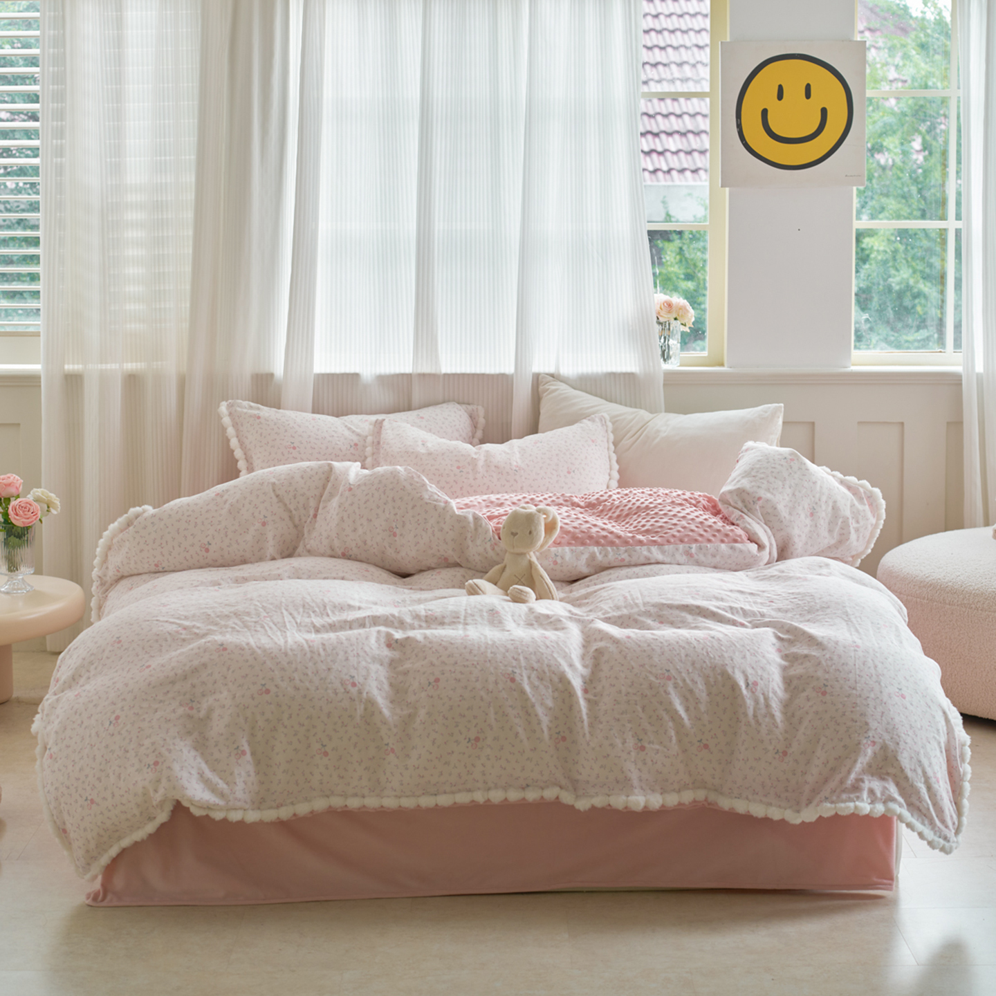 洋铭区(原狠狠爱) 2025秋冬双层纱毛球球+豆豆绒四件套系列 水仙绿花