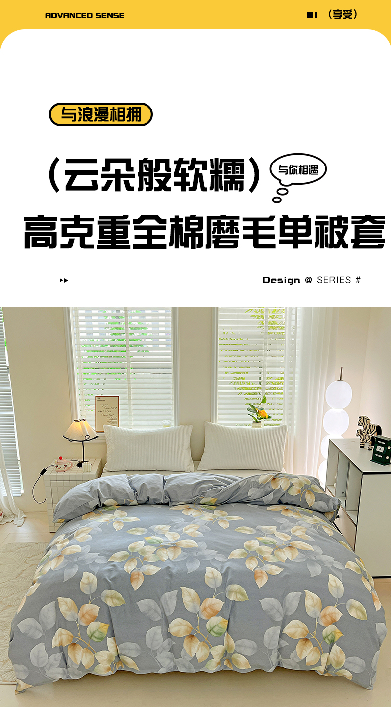 • 91家纺网 家纺一手货源 找家纺 依庭 2025新款高克重全棉纯棉磨毛印花单被套 花色伊人