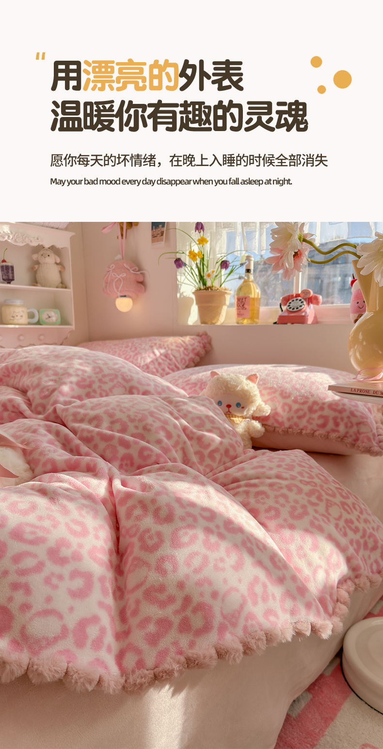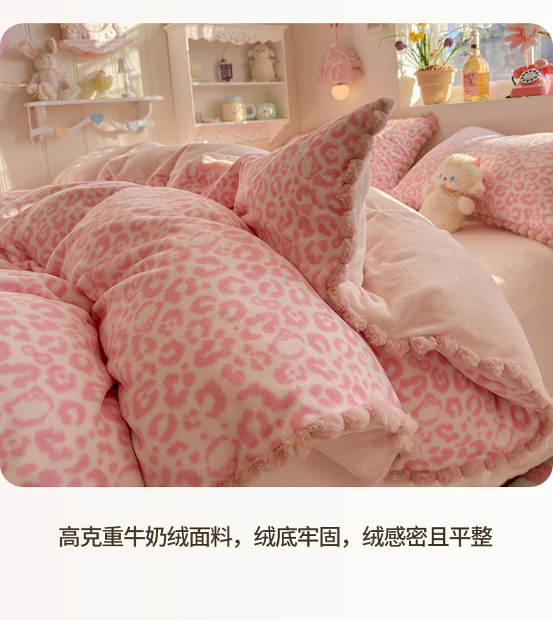 当前位置: 91家纺网 > 商品网购 > 床品套件 > 四件套 > 牛奶绒四件套 > 初念 2025新款牛奶绒印花四件套-豹纹 牛奶绒-粉豹纹
