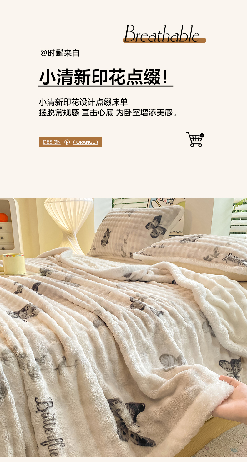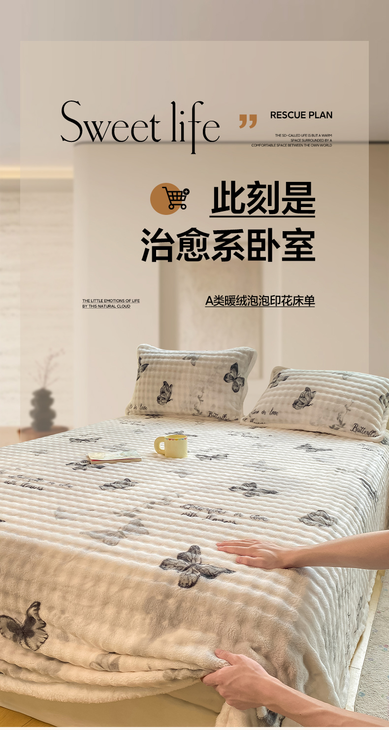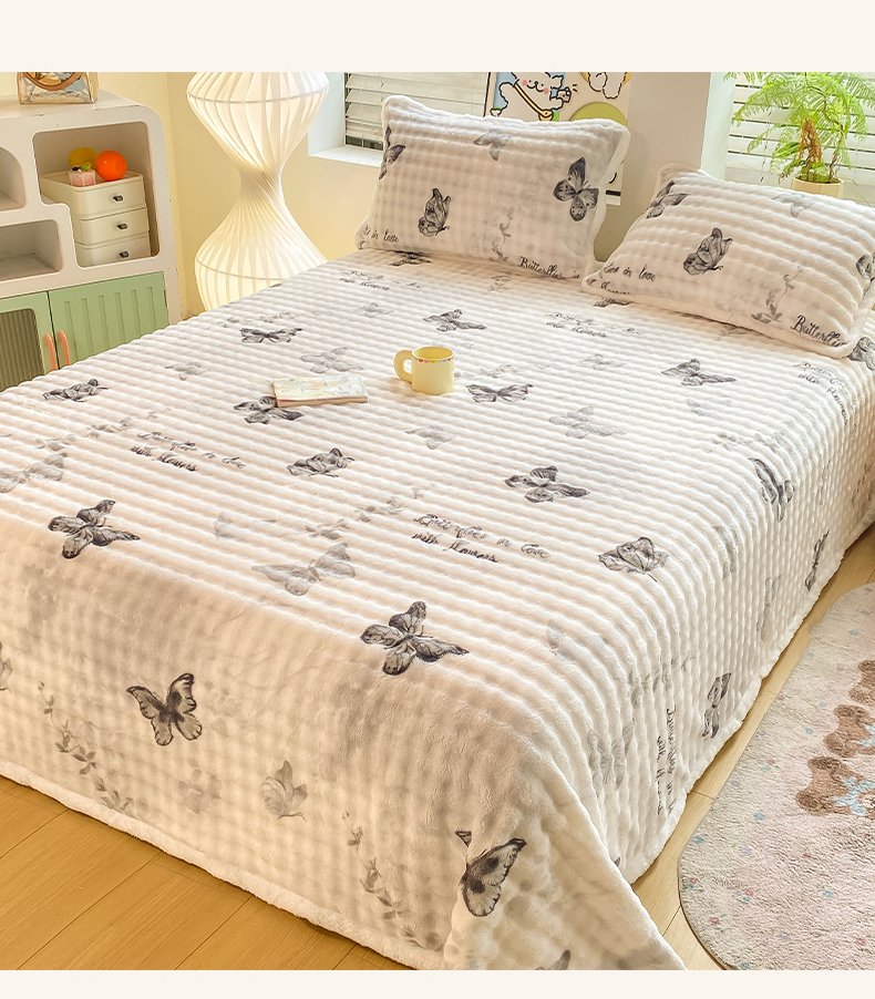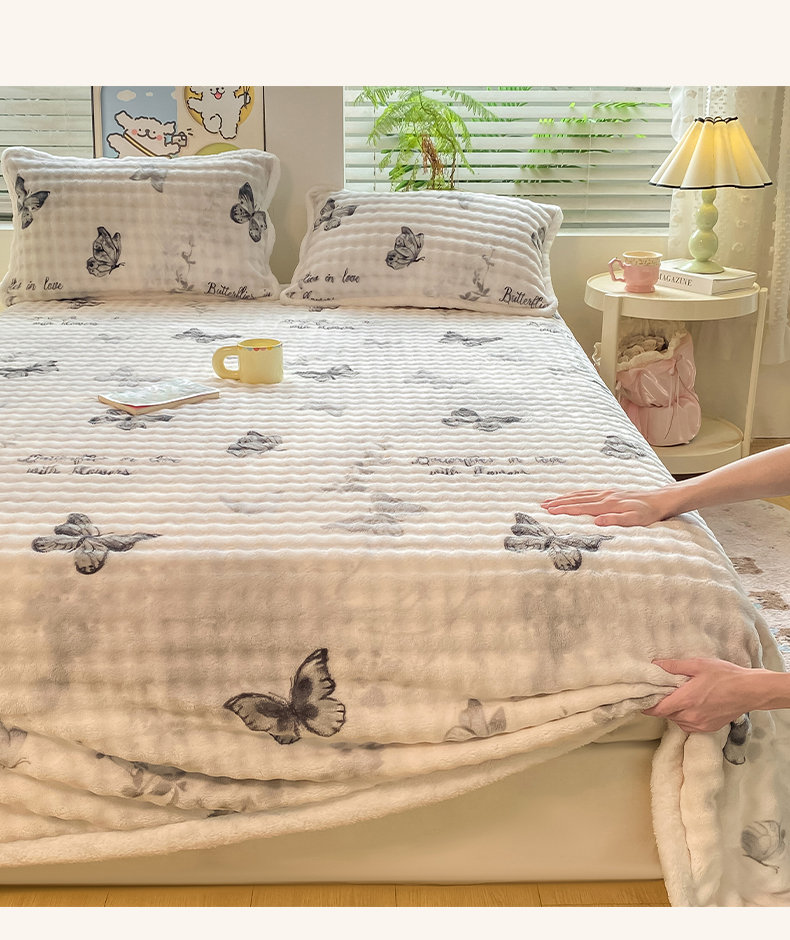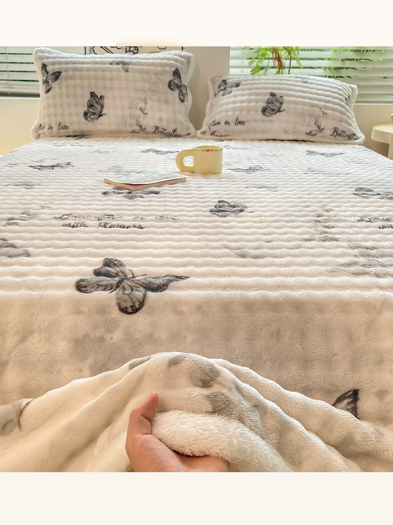 • 91家纺网 家纺一手货源 找家纺 眠势力 2025新款暖绒泡泡床单冬季保暖被单牛奶绒床单罩 蝴蝶梦境【暖绒泡泡床单】