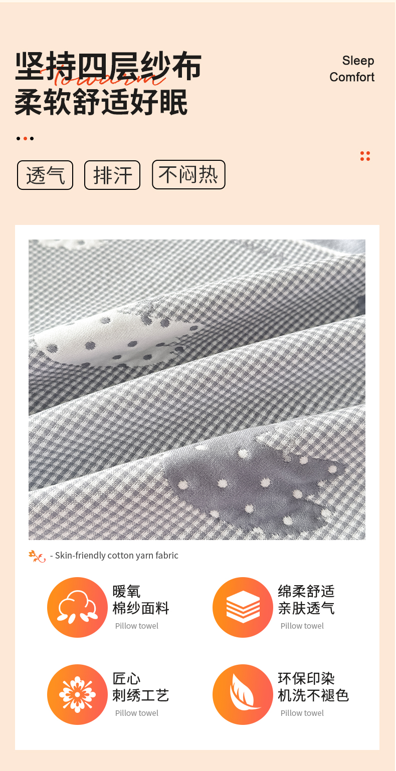 (总)沐瑟家纺 2025新款纯棉纱布枕巾八层枕巾-發,暴富,对对对,方格猫,哈哈哈,花香凯蒂,静心,满發,大吉大利,命里招财,模特女,小花兔