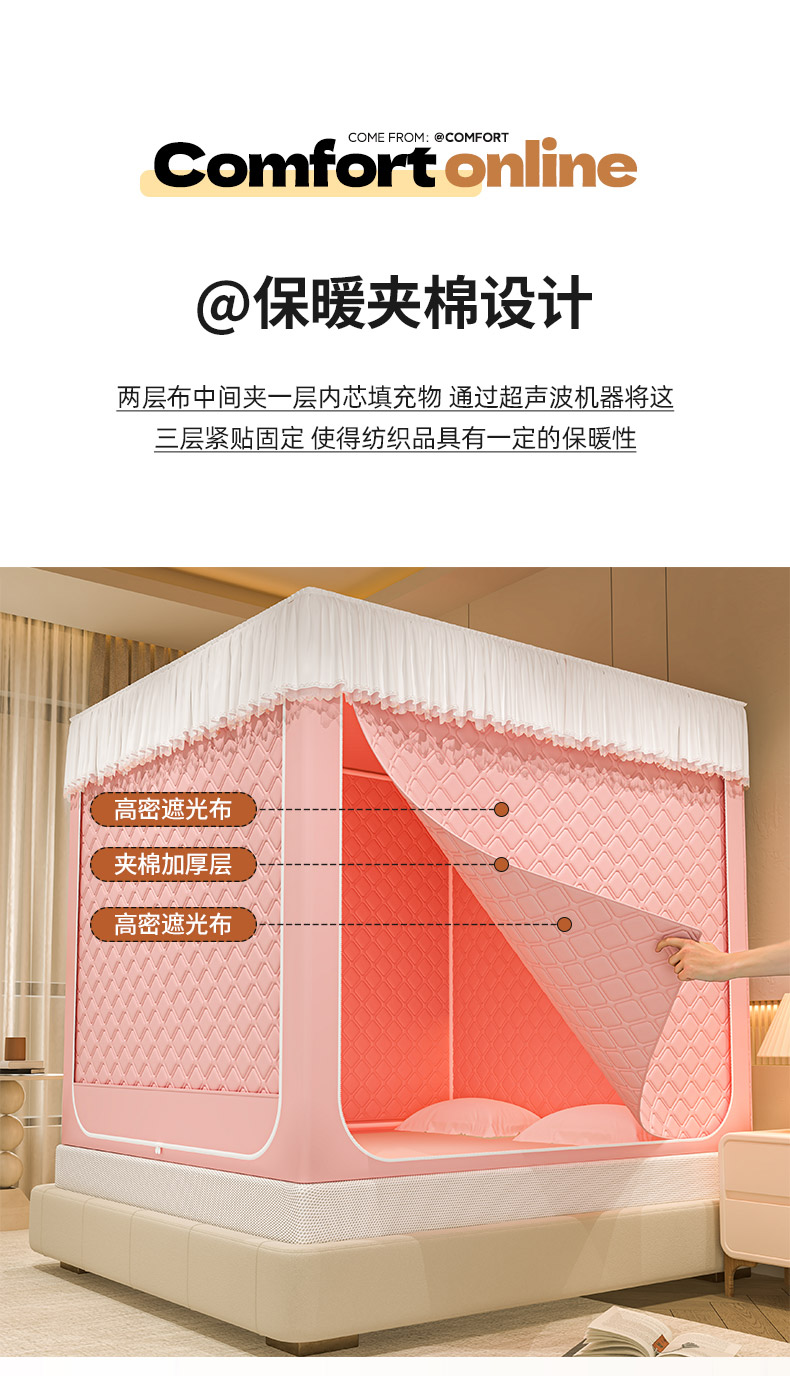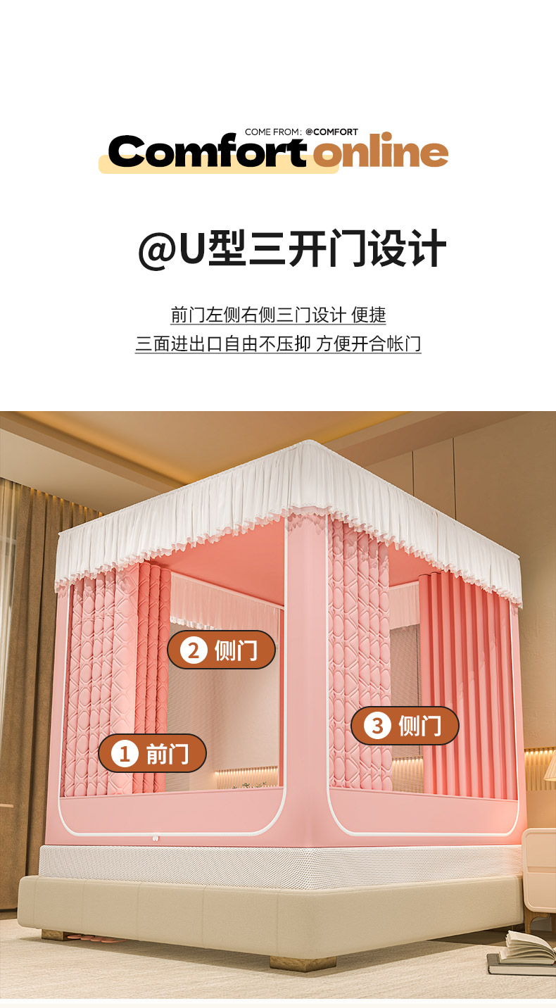 当前位置: 91家纺网 > 商品网购 > 床上用品 > 蚊帐 > 坐床式蚊帐 > 海虹蚊帐 2025新款加高内穿U型三门2402保暖款夹棉防尘顶坐床蚊帐 浅粉
