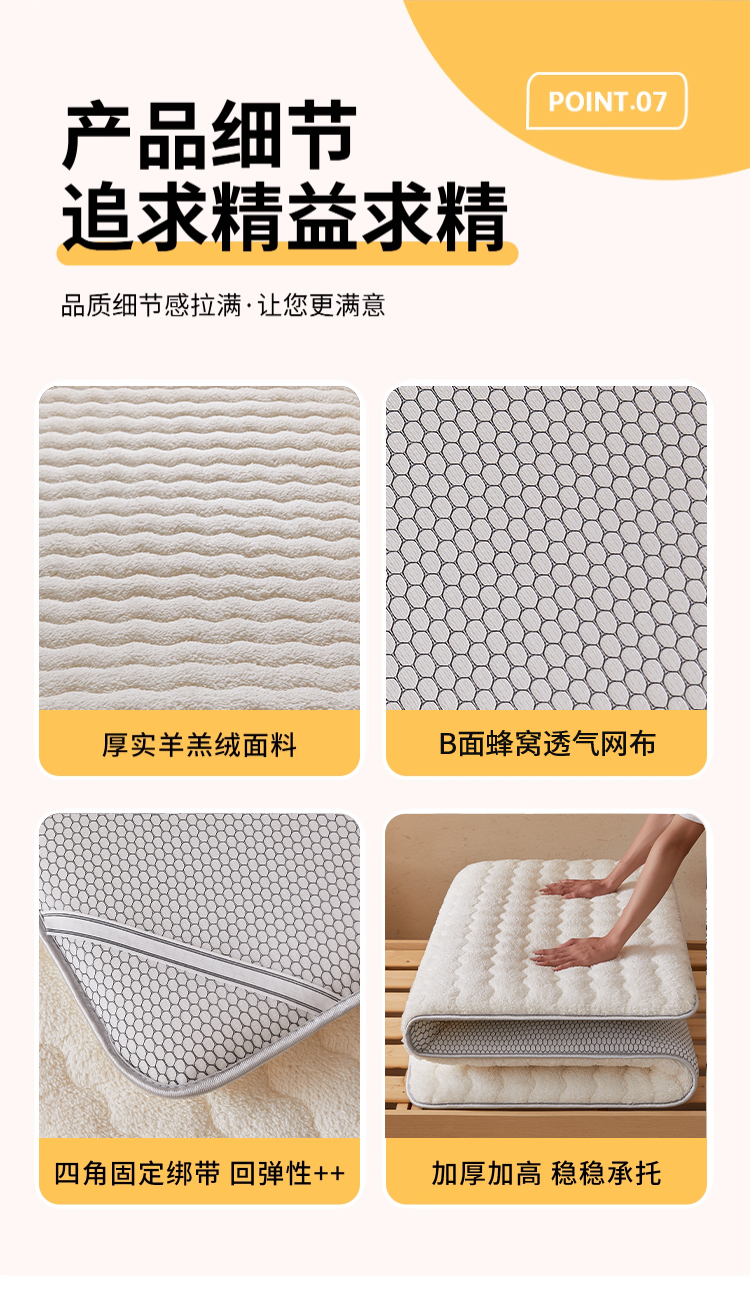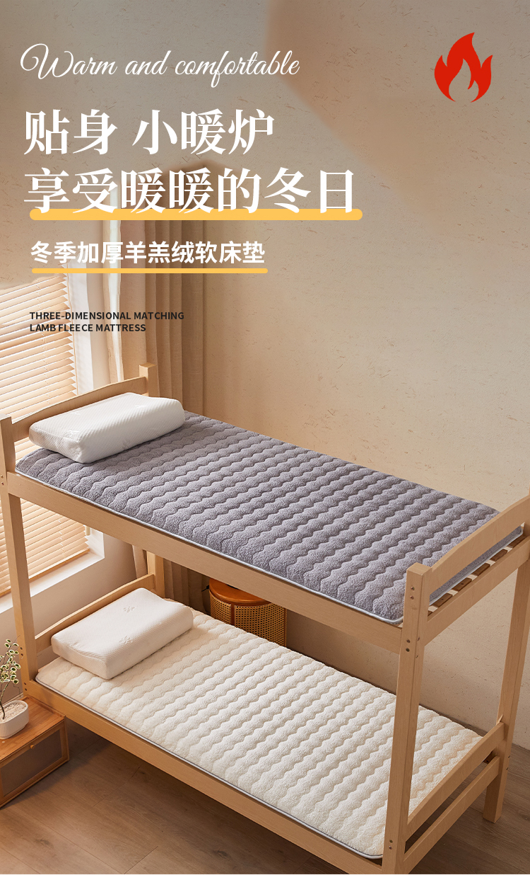 • 91家纺网 家纺一手货源 找家纺 (总)缦吉 2025新款加厚羊羔绒床垫床褥-学生款,白色,灰色,咖色,蓝色,驼色