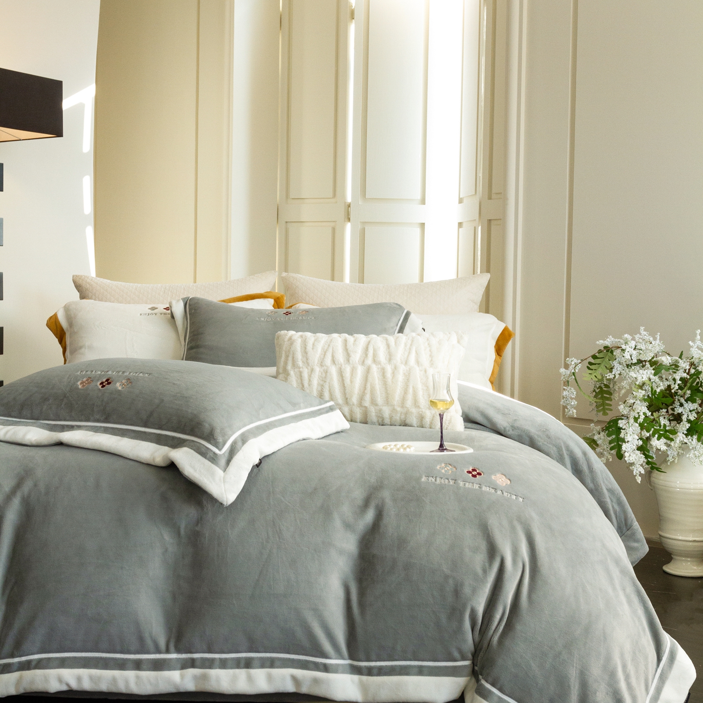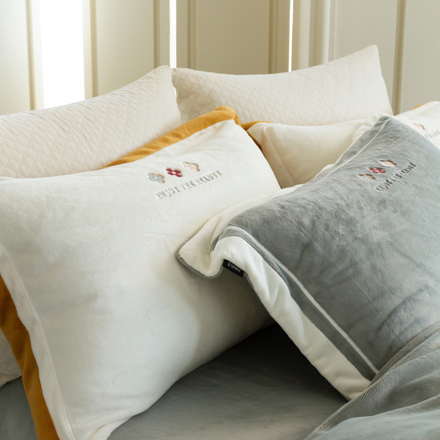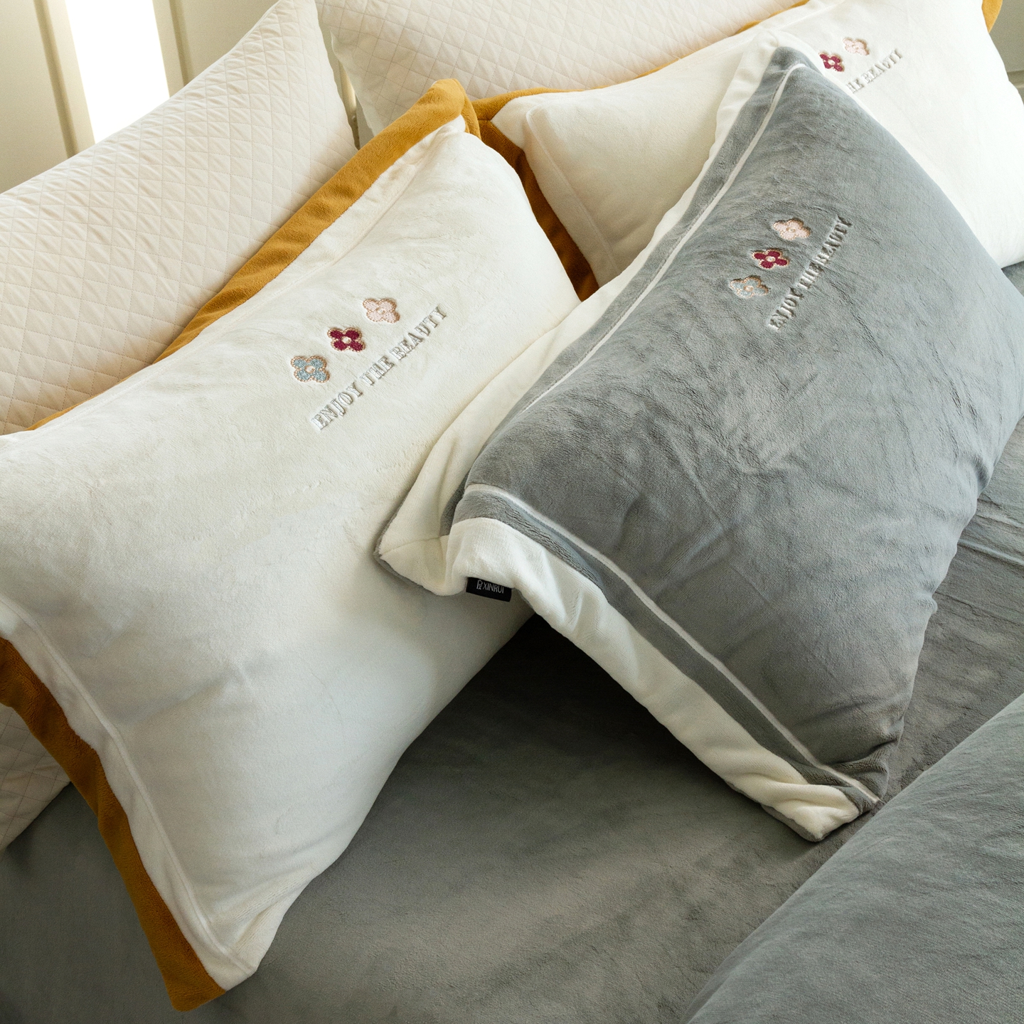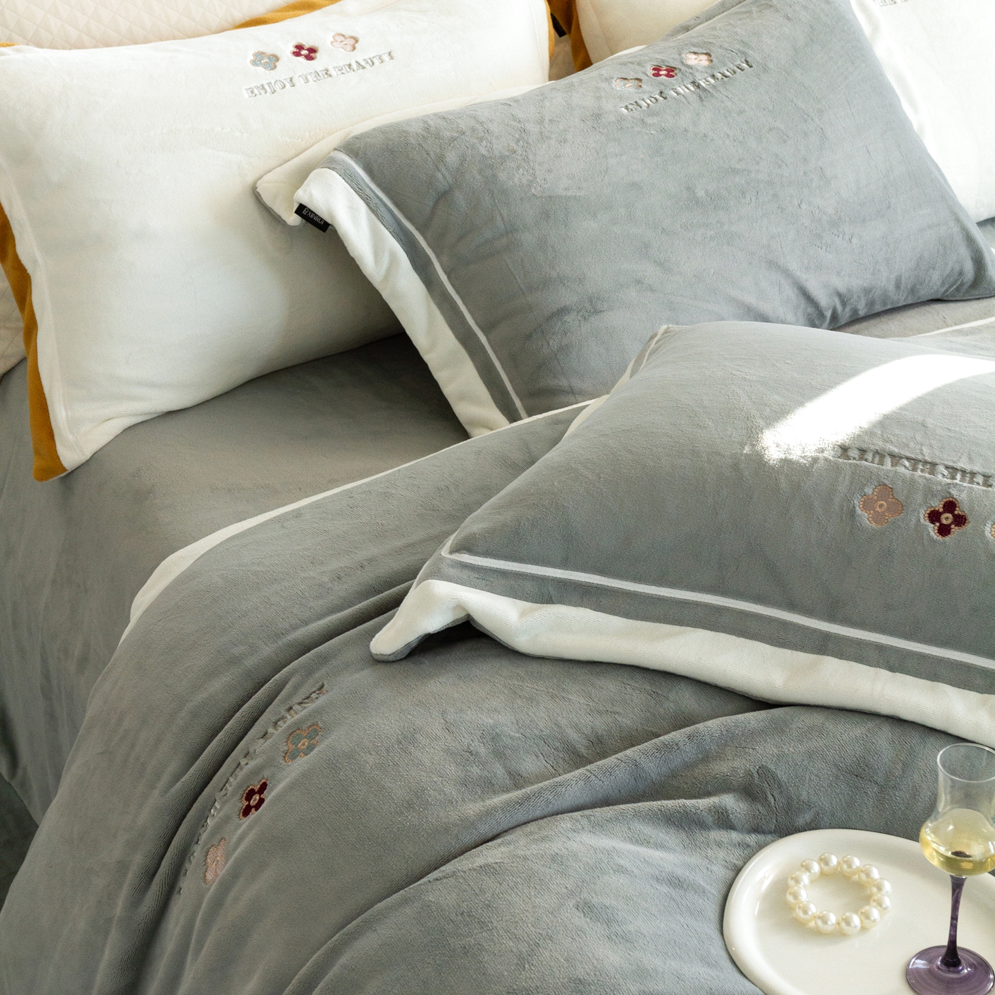 (总)馨蕊家居 2025新款意大利进口高精密刺绣拼角工艺秋冬法式高奢雪貂绒系列-绒雪芙 会员-10【券后控价358/378】,绒雪芙-奶咖,绒雪芙-蔷薇粉,绒雪芙-婉若紫,绒雪芙-月光白