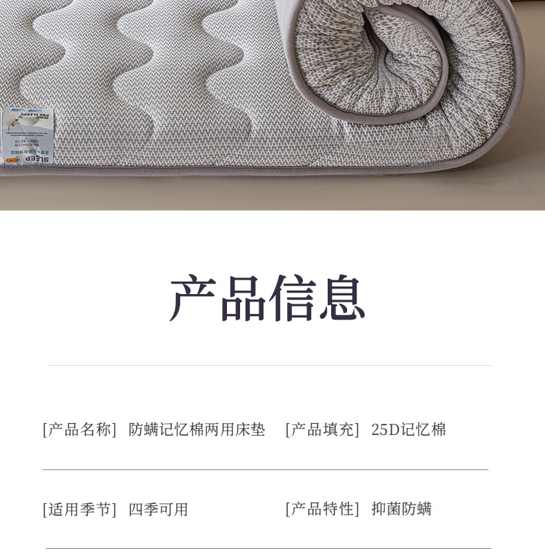 当前位置: 91家纺网 > 商品网购 > 床垫/床褥 > 普通床垫 > 丽诺床垫 2025新款防螨记忆棉两用床垫5公分 灰色