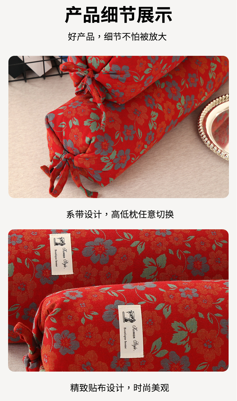 商品名称:明星枕业 2025新款a类荞麦颈椎枕全棉双层纱圆柱糖果枕纯枕头全壳硬枕成人颈椎支撑 香奈粉