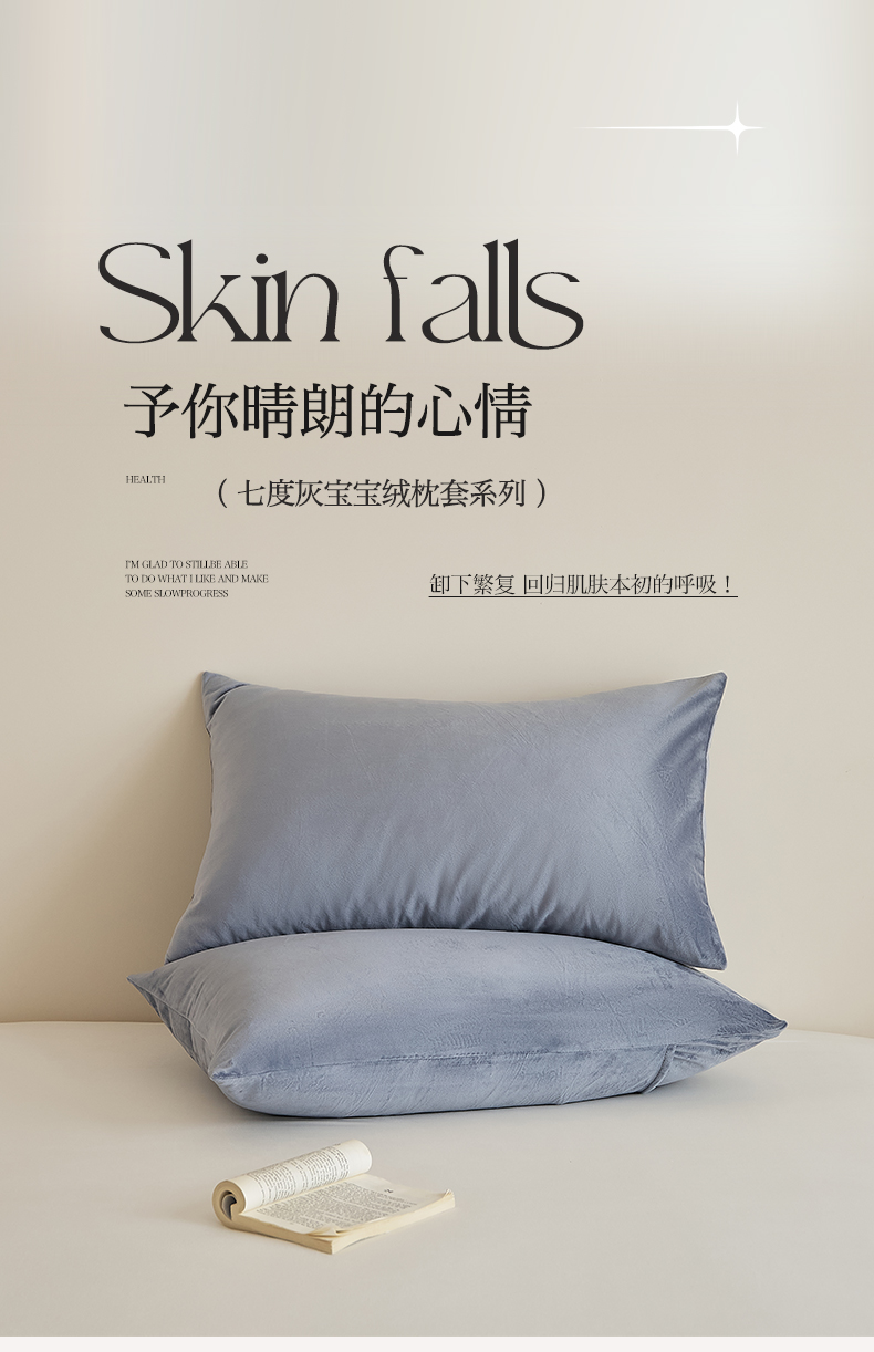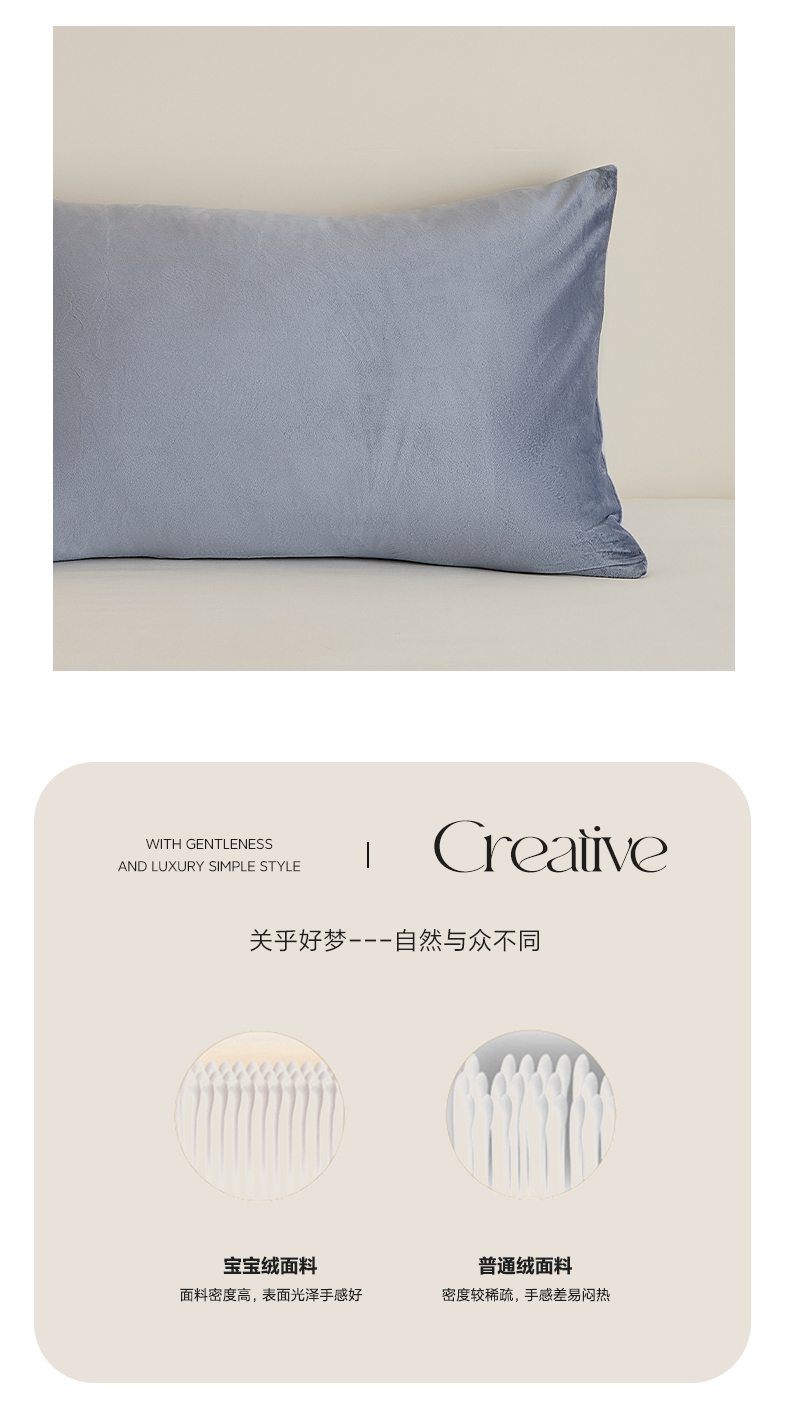 商品名称:EH家居 2025新款七度灰宝宝绒枕套系列 蓝灰色
