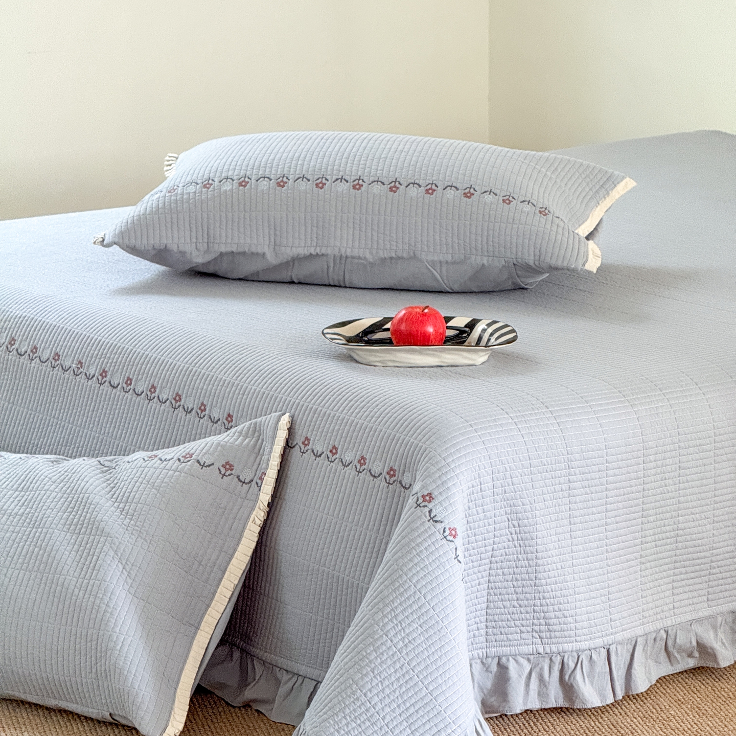 (总)汇庭 2025秋冬新款麻三月床盖三件套系列,黑点点,花絮粉,锦绣,梨花雨,青舍,三月,苏梨士,夜曲,组合