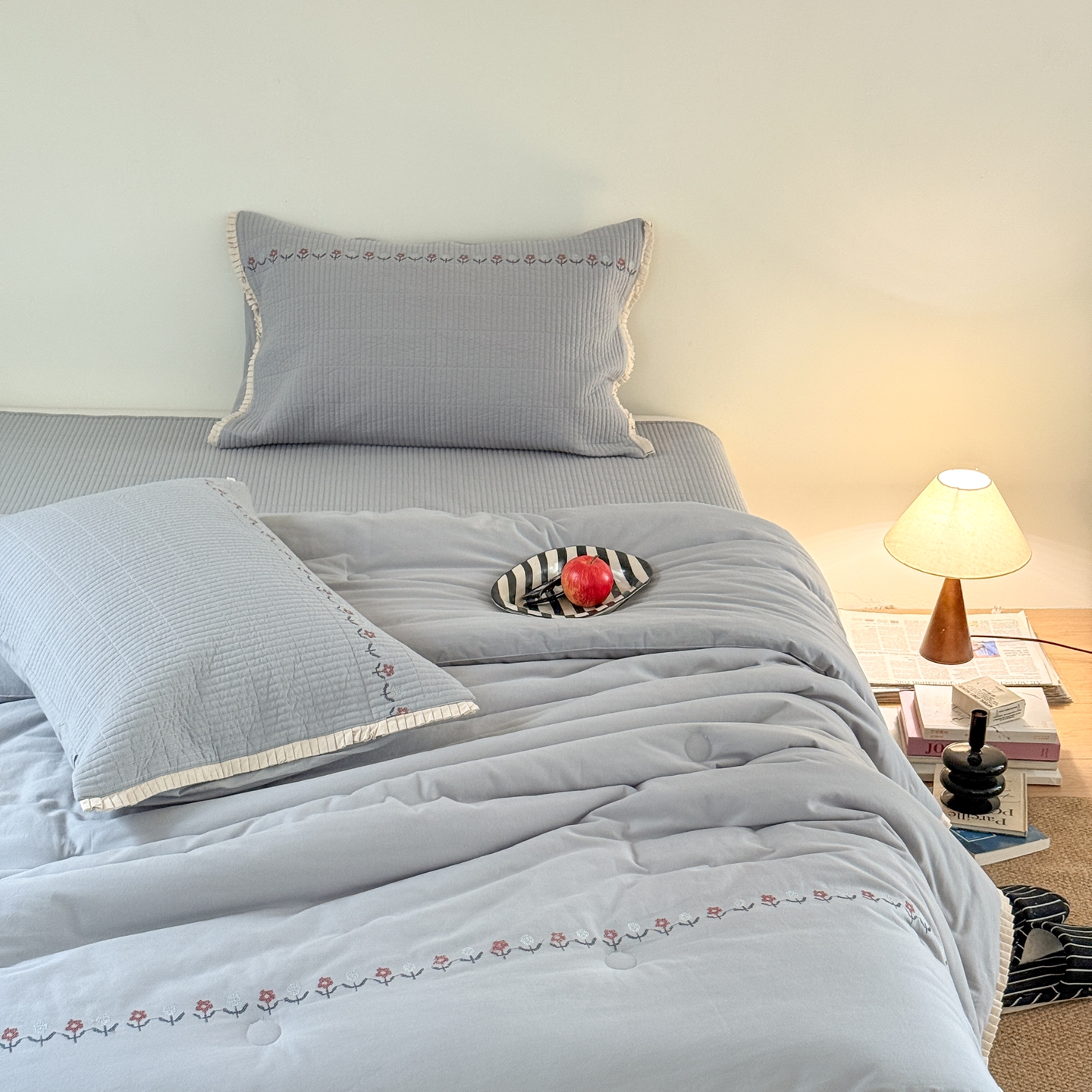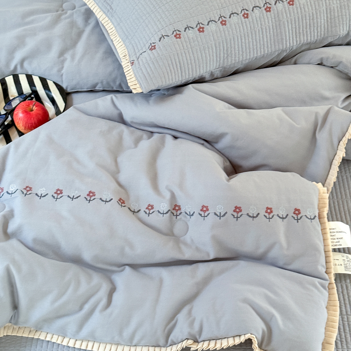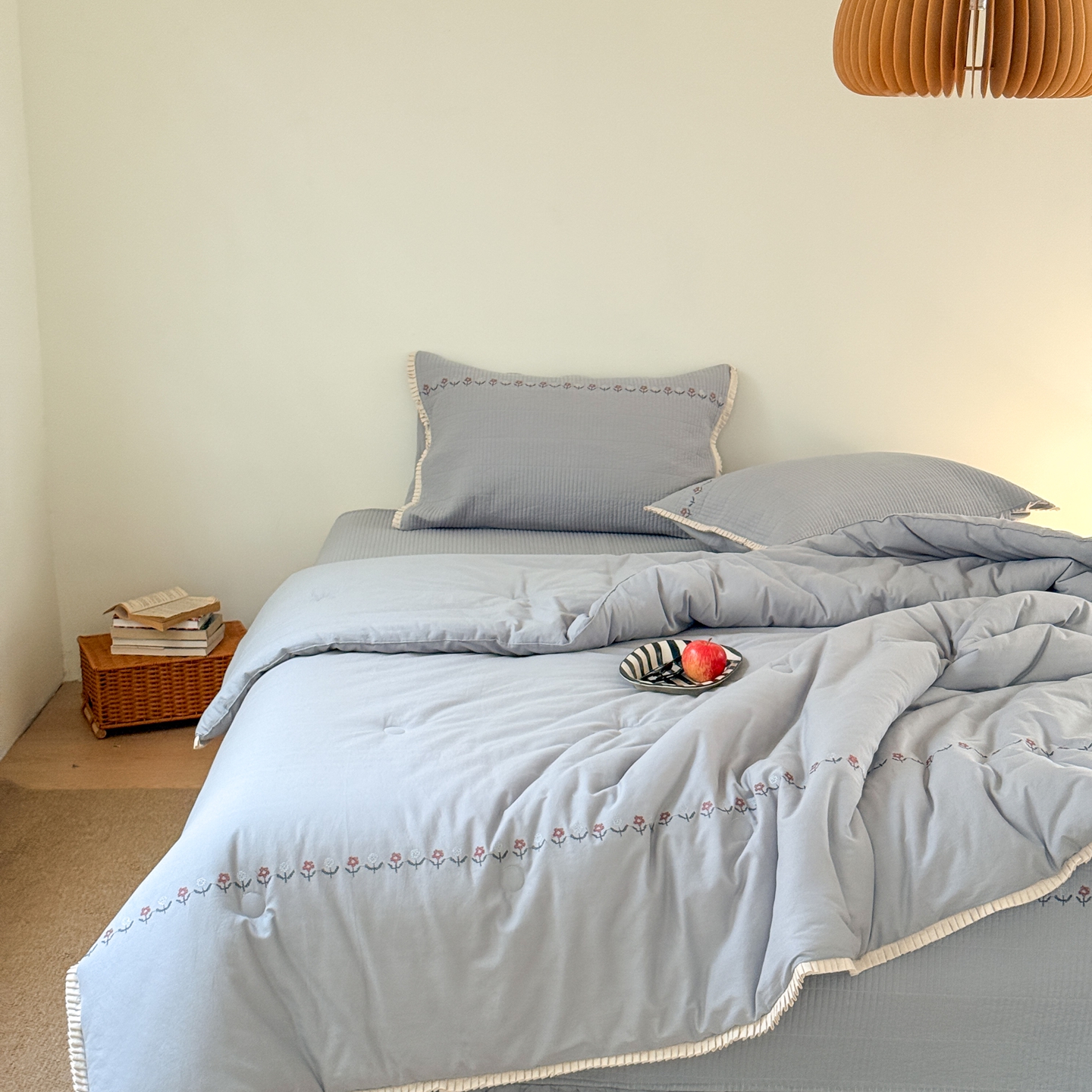 商品名称:汇庭 2025秋冬新款花田小趣床盖三件套+花研春秋被 春秋-花研蓝